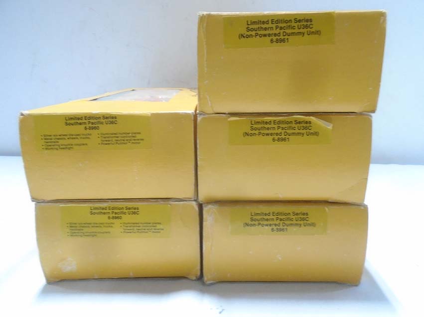 These are two #8960 SP U36C Diesel Engines and three #8961 SP U36C Diesel Engines that Lionel made in the early 1980s. Our Opinion is that they are generally in Excellent Plus Condition. Original Boxes. All Original in our Opinion. Please add $50.00 for US-48 Shipping and Insurance (more west of the Mississippi). EX+ Lionel 2 #8960 SP U36C Diesel Engines and 3 #8961 SP U36C Diesel Engines, OBs GB