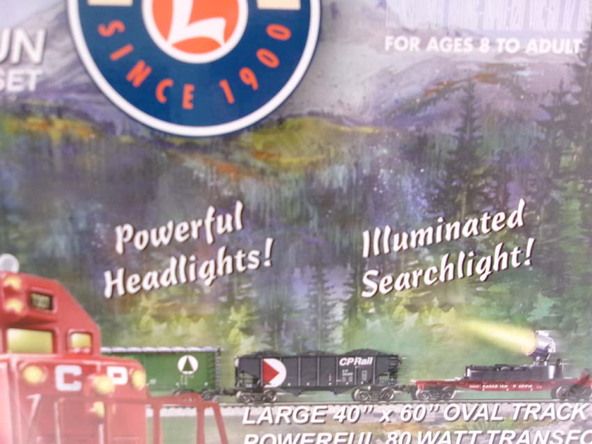 Mint Lionel #30047 CP Northwest Special Freight, includes #7307 GP38 Diesel (trainsounds), CP box car, CP hopper, CP operating searchlight car, CP caboose and track & transformer, OB G3 |