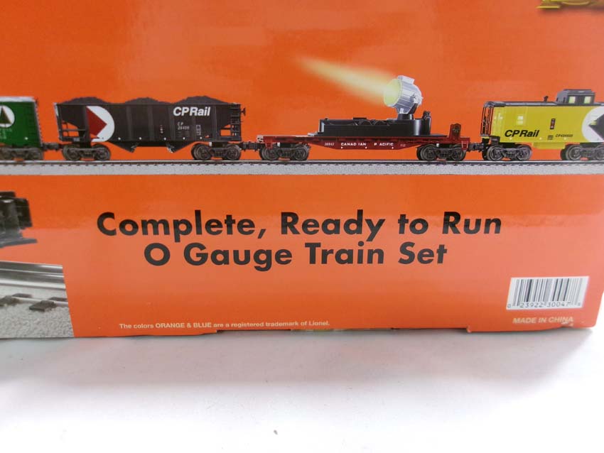This is the #30047 CP Northwest Special Freight Set that Lionel made a few years ago. Includes #7307 GP38 Diesel (trainsounds), the CP Box Car, the CP hopper, the CP Operating SearchlightCcar, the CP Caboose, and Track & Transformer. Our Opinion is that the Set generally in Mint Condition. Original Box. All Original in our Opinion. Please add $45.00 for US-48 Shipping and Insurance (more west of the Mississippi).