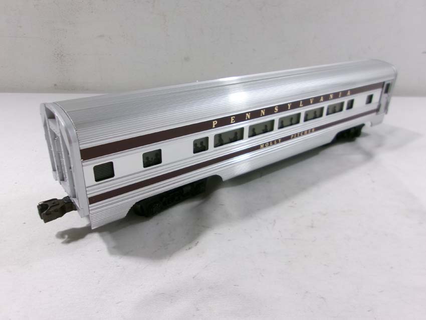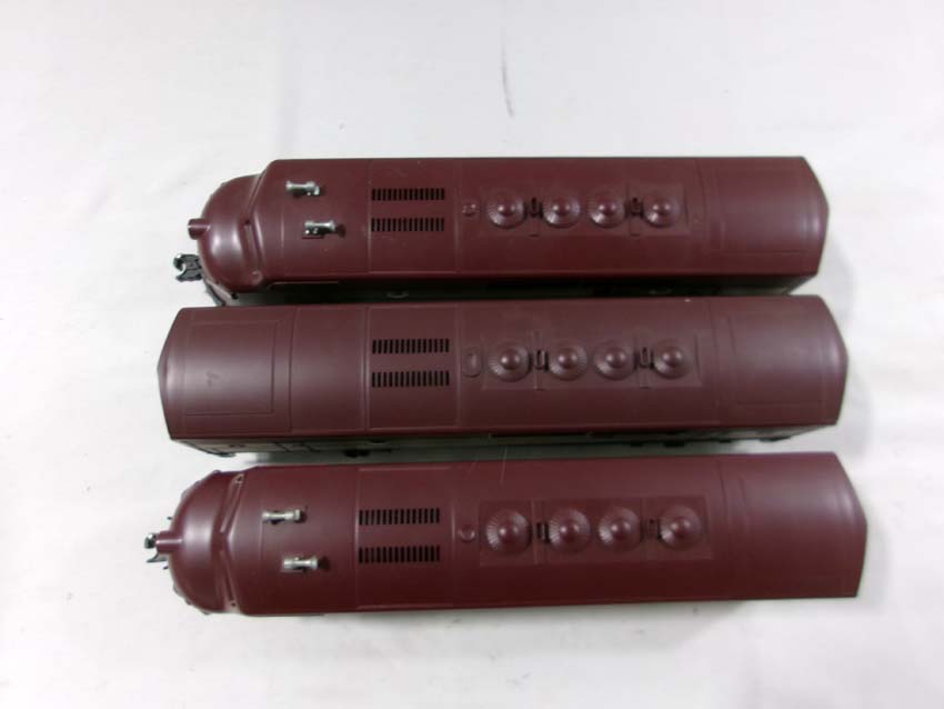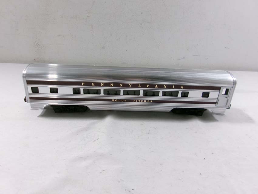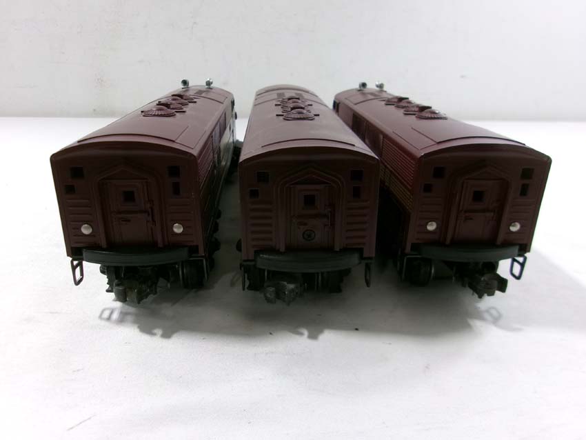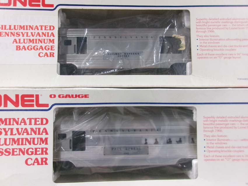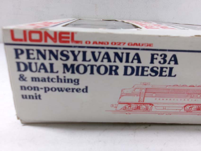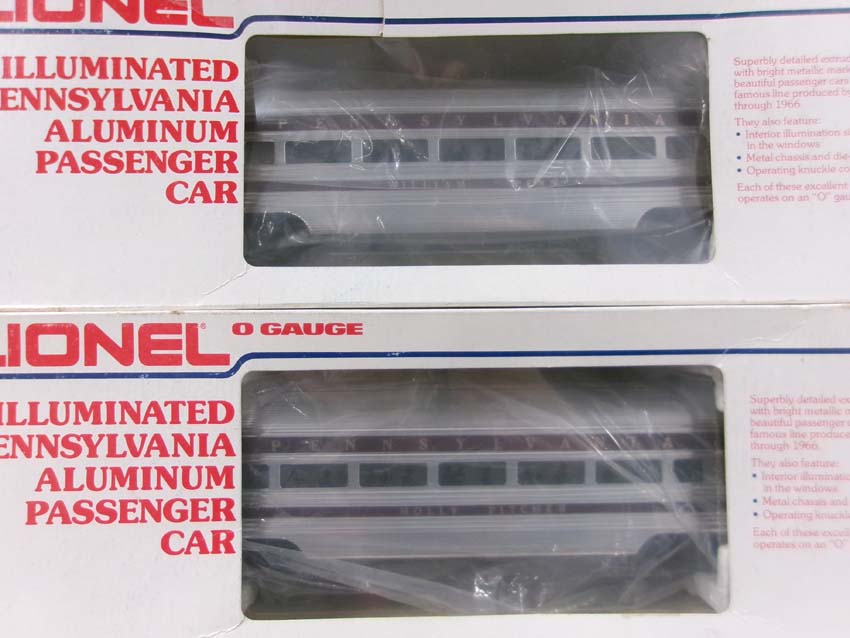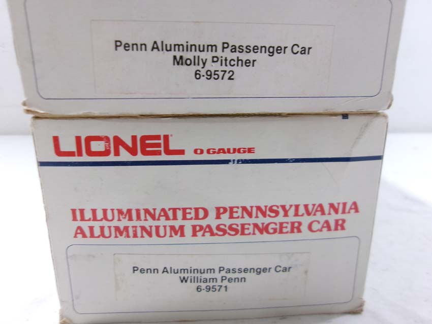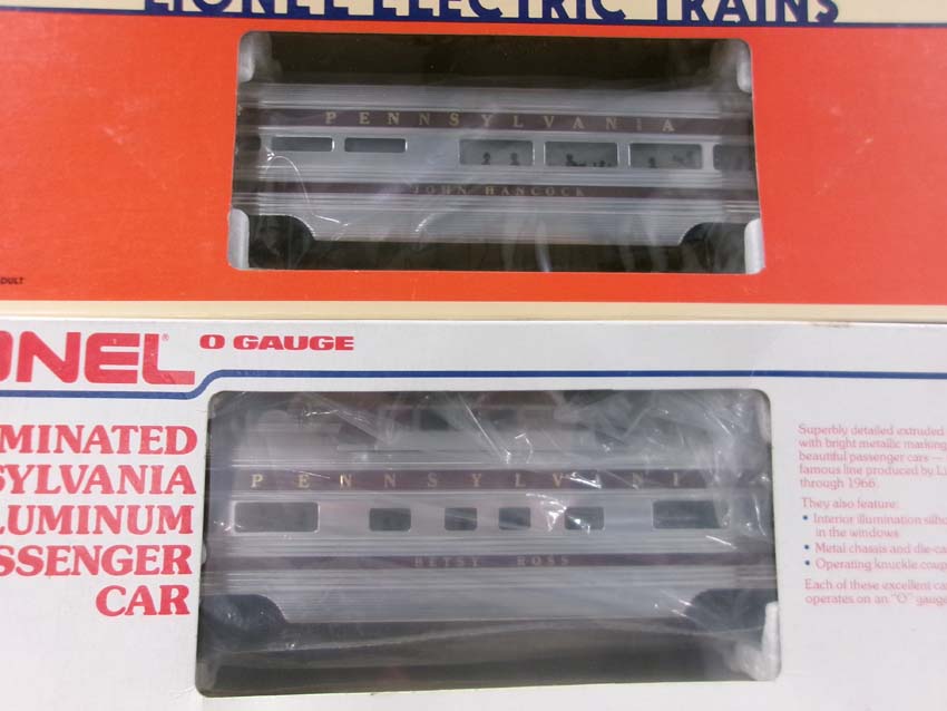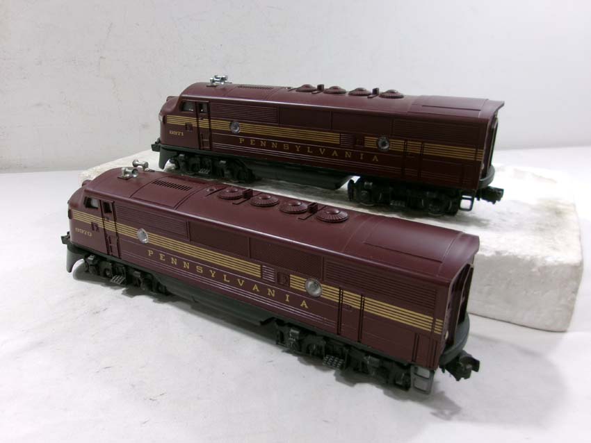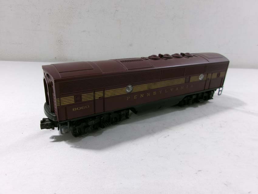 These are the #8970/8971 PRR F-3 AA Diesel Engines, #8060 PRR F-3 B Diesel Engine and six Assorted Passenger Cars that Lionel made in the 1980s. Includes the #9569/9570/9571/9572/9573/7208 PRR Aluminum Passenger Cars. Our Opinion is that they are generally in Like New Condition. Original Boxes. Please add $60.00 for US-48 Shipping and Insurance (more west of the Mississippi).