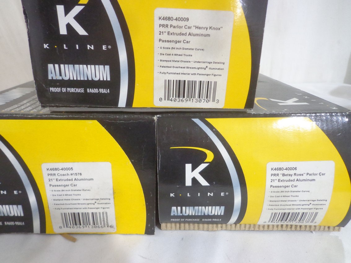 These are the #4680-40005/4680-40006/4680-40007/4680-40008/4680-40009/4680-40010 Pennsylvania Passenger Cars that K-Line made a few years ago. Our Opinion is that they are generally in LIke New Condition. Original Boxes. All Original in our Opinion. Please add $50.00 for US-48 Shipping and Insurance (more west of the Mississippi).
