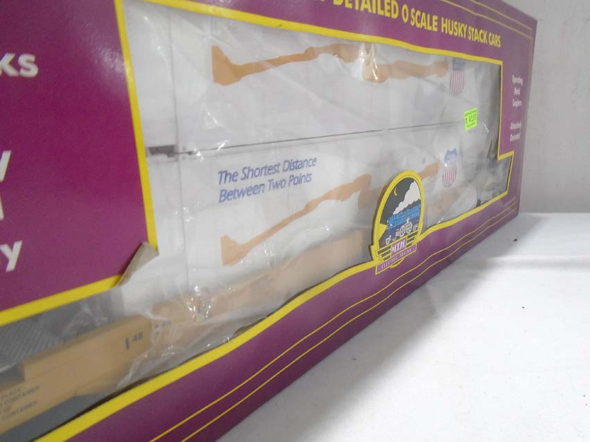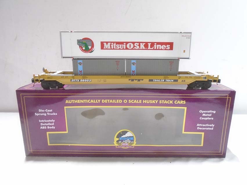 MTH #20-95004 Hanjin Husky Stack Car, #20-95007 UP Husky Stack Car, #20-95052 TTX Husky Stack Car and #20-95074 BNSF Husky Stack Car/OBs