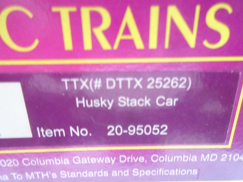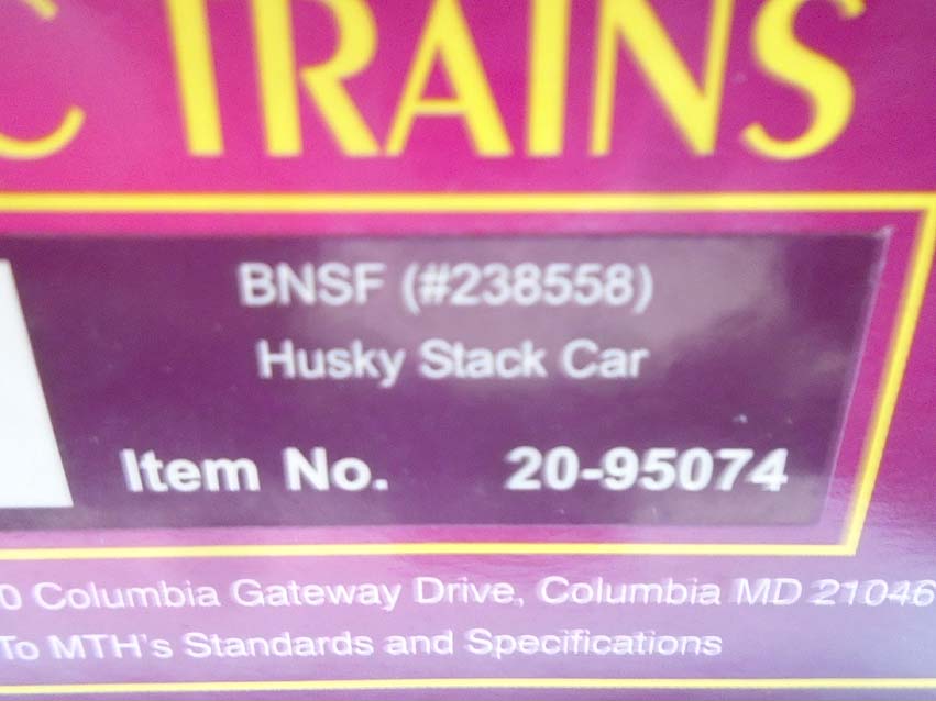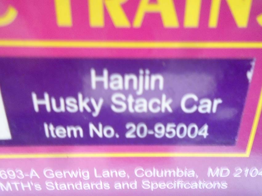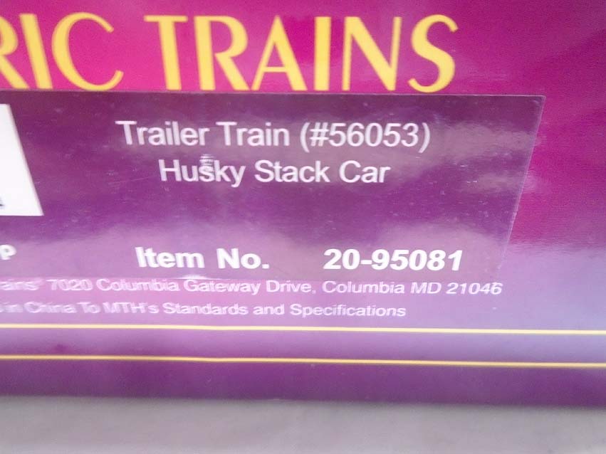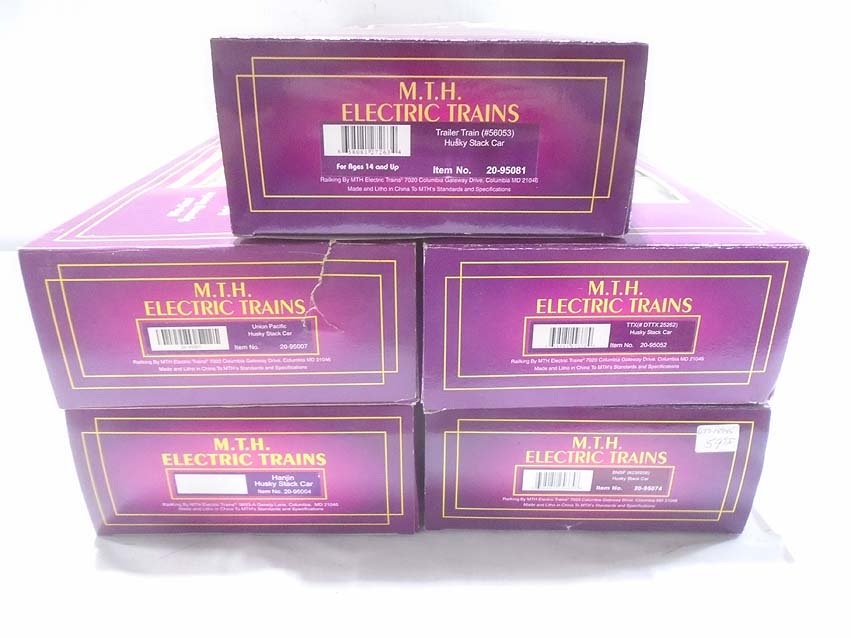 These are the #20-95004 Hanjin Husky Stack Car, #20-95007 UP Husky Stack Car, #20-95052 TTX Husky Stack Car and #20-95074 BNSF Husky Stack Car that MTH made a few years ago. Our Opinion is that they are generally in Like New Condition. Original Boxes (wear). All Original in our Opinion. Please add $45.00 for US-48 Shipping and Insurance (more west of the Mississippi).