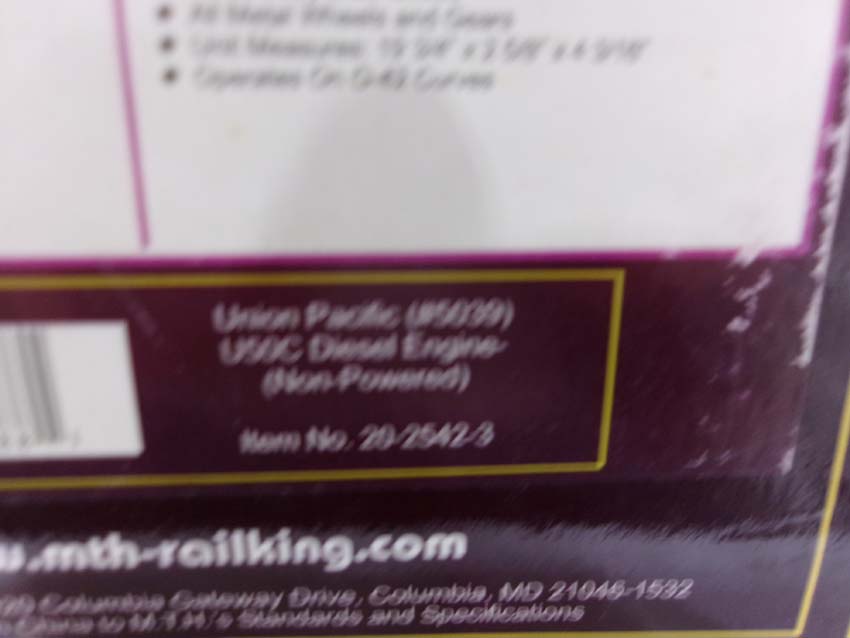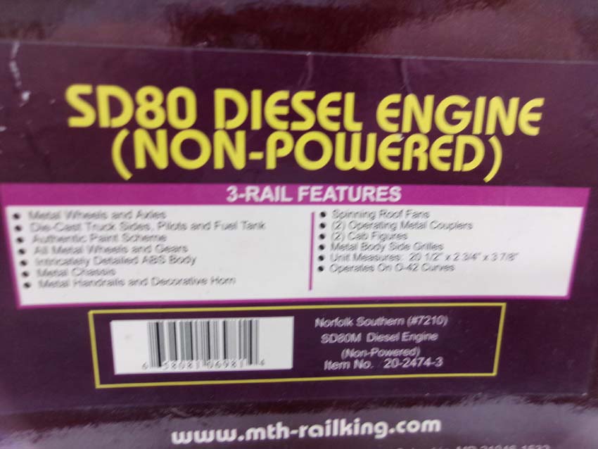 These are the #20-2542-3 UP U50C Diesel Engine (non powered) and the #20-2473 NS SD80 Diesel Engine (non powered) that MTH made a few years ago. Our Opinion is that they are generally in Like New Condition. Original Boxes. All Original in our Opinion. Please add $50.00 for US-48 Shipping and Insurance (more west of the Mississippi). |