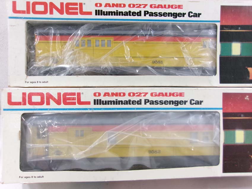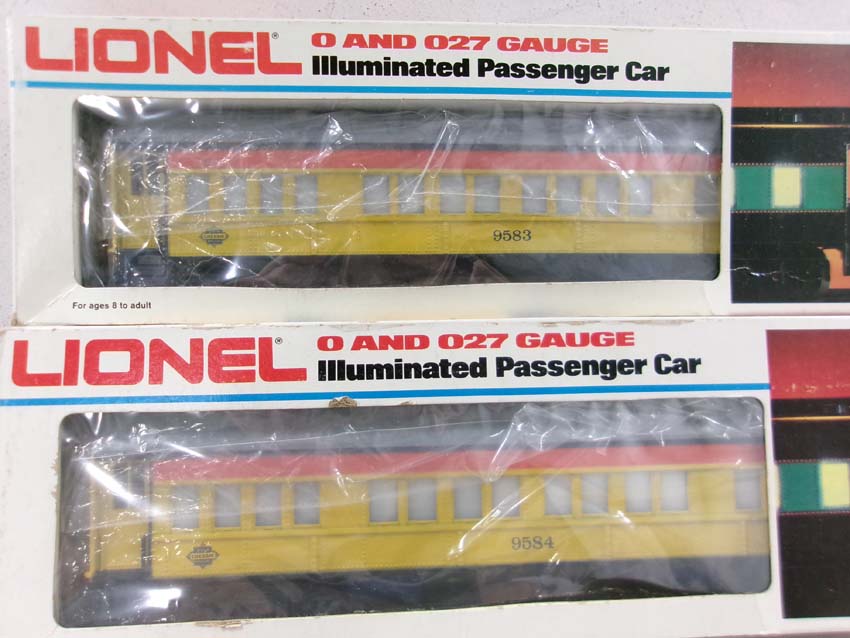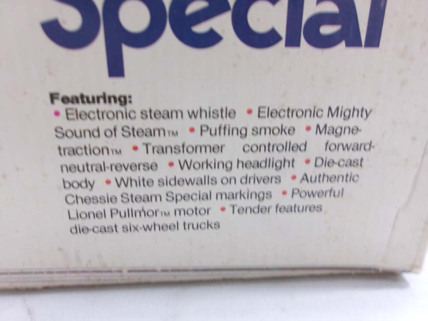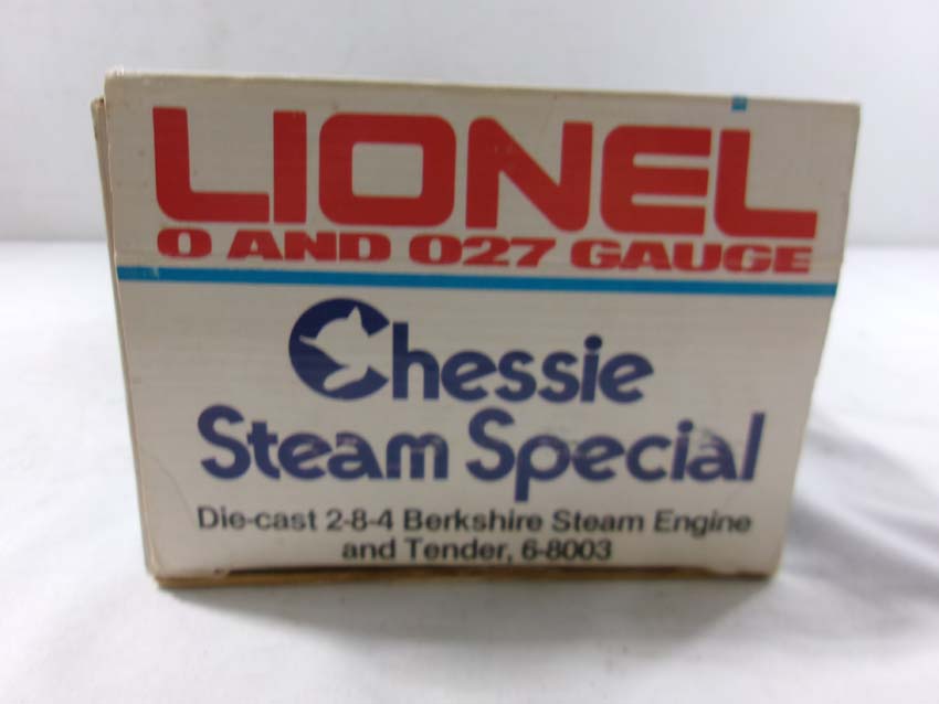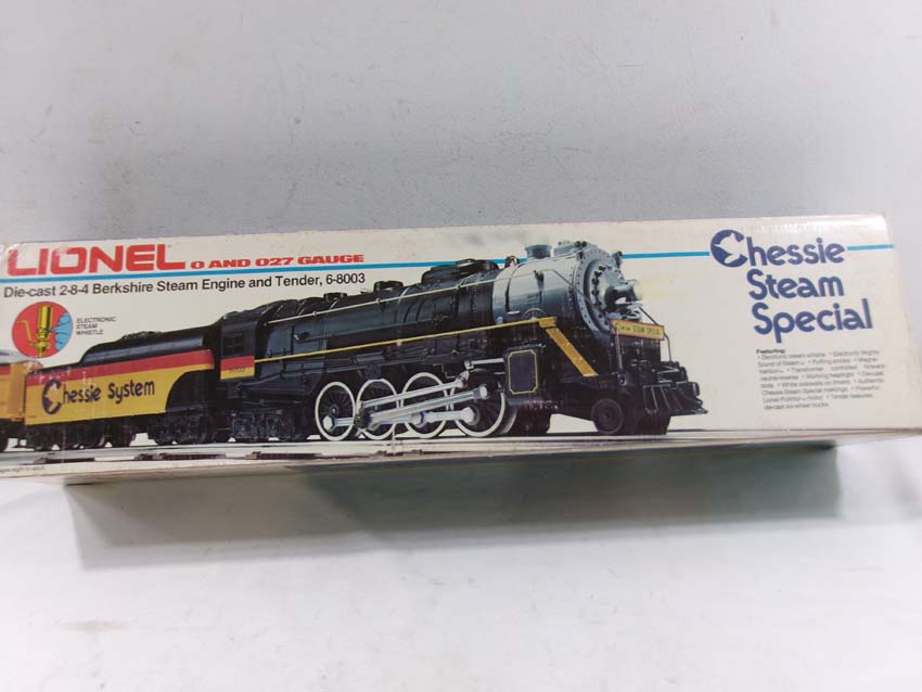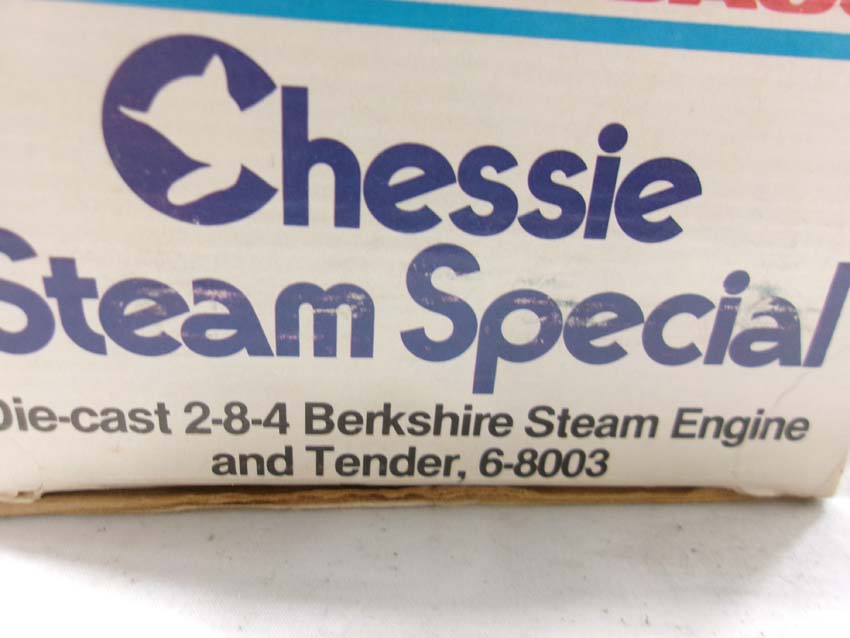 These are the Lionel #8003 Chessie 2-8-4 Berkshire Steam Engine & Tender and the #9581/9582/9583/9584/9585/9586 Chessie Madison Passenger Cars from the early 1980s. Our Opinion is that they are generally in Like New Condition. Original Boxes. All Original in our Opinion. Please add $50.00 for US-48 Shipping and Insurance (more west of the Mississippi). |