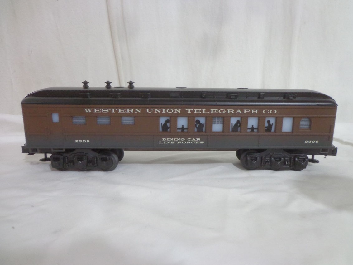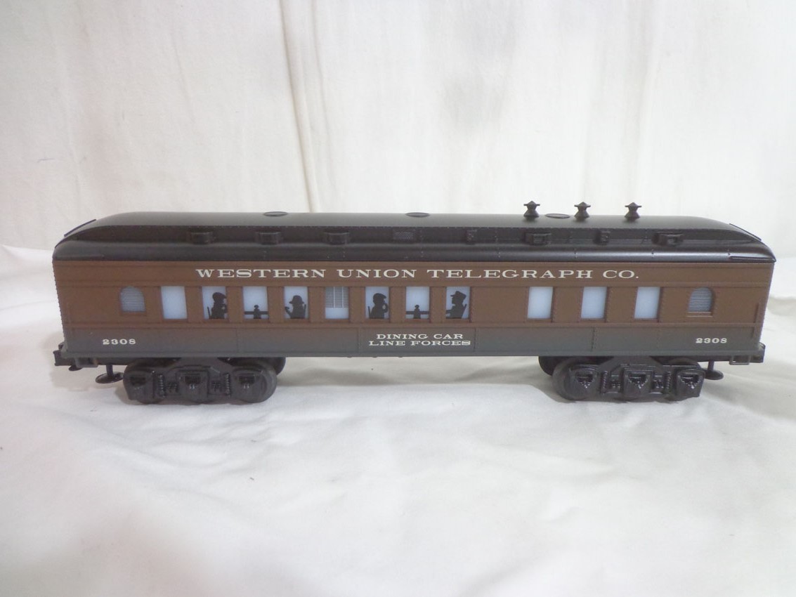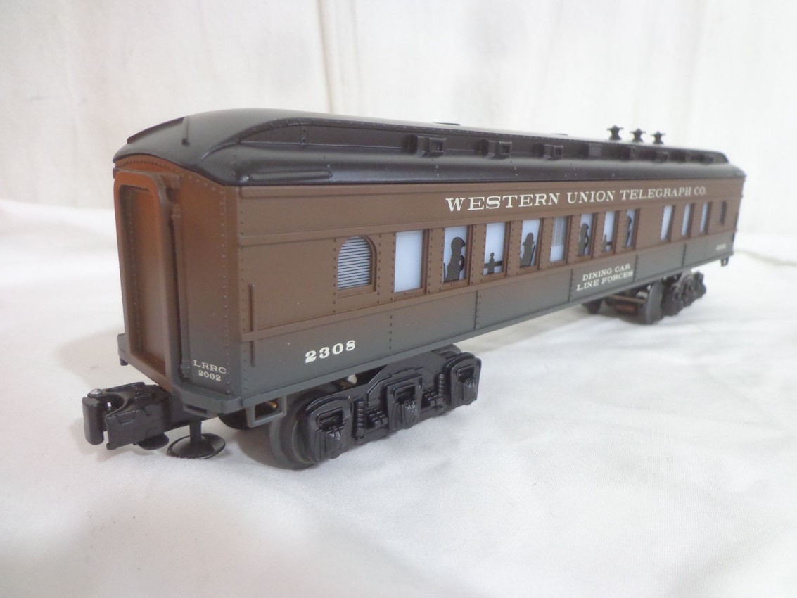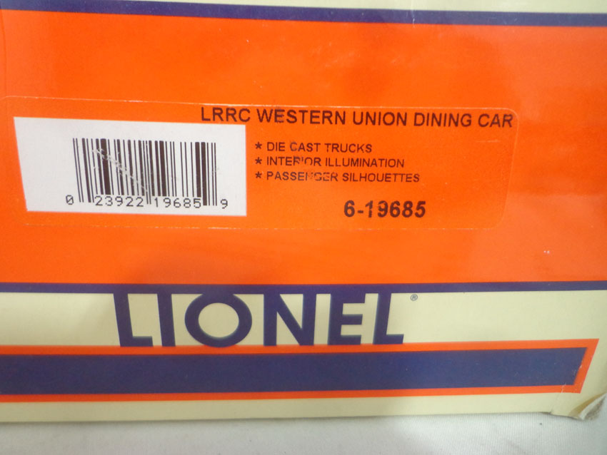 LThese are the Lionel #19685 LRRC Western Union Dining Car and 7 Assorted Freight Cars from a few years ago. Our Opinion is that they are generally in Like New Condition. Original Boxes. All Original in our Opinion. Please add $50.00 for US-48 Shipping and Insurance (more west of the Mississippi). |