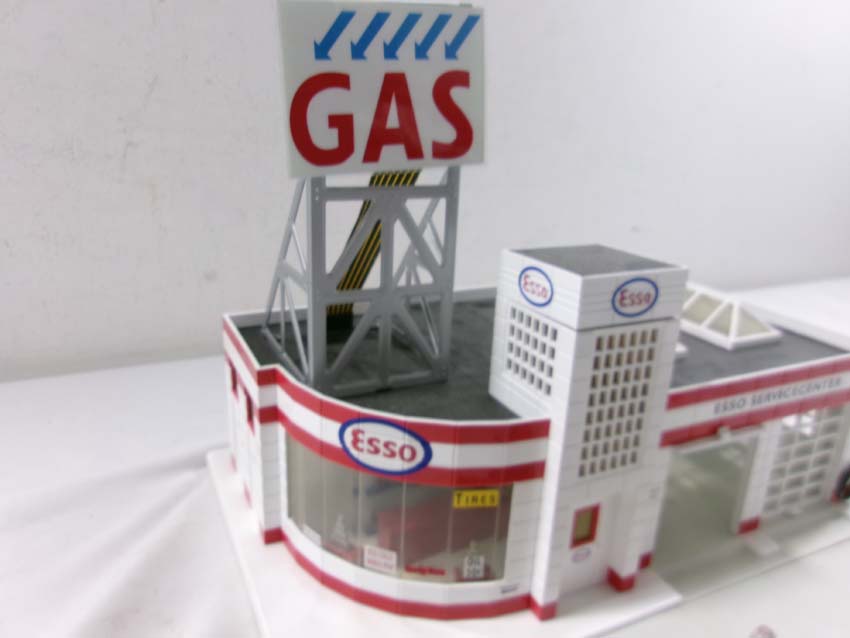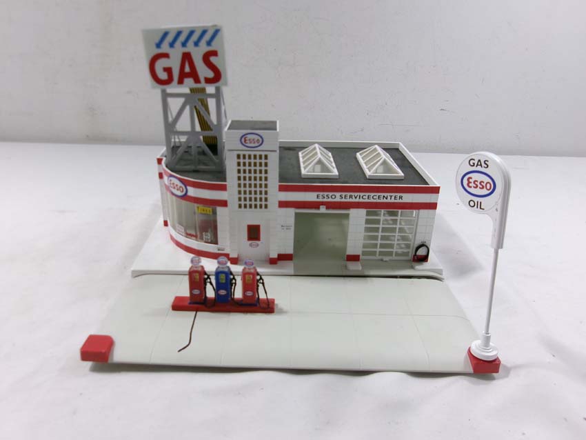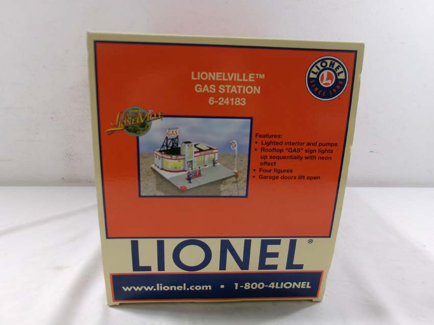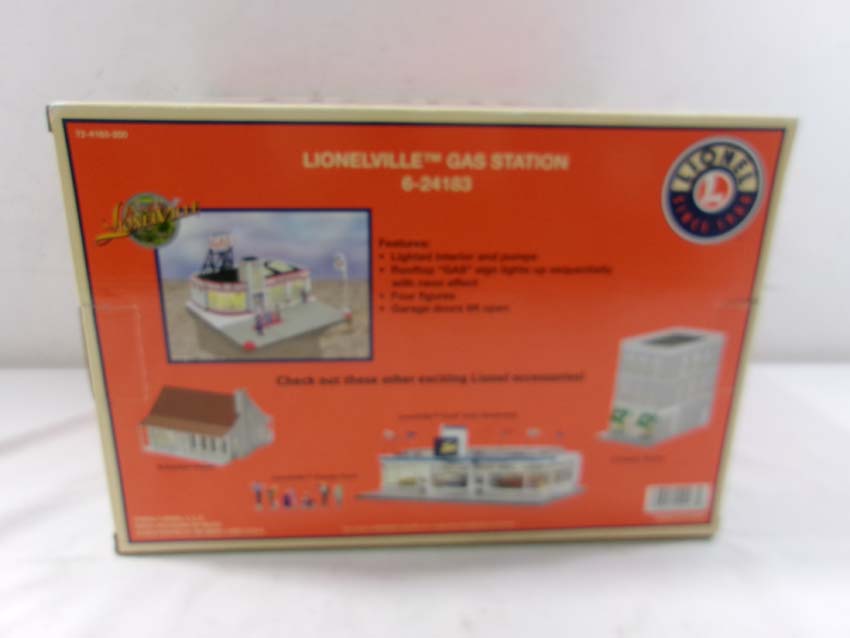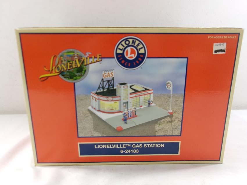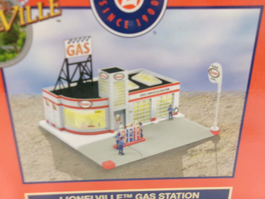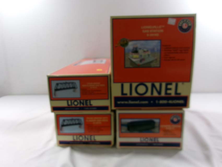 Lionel #24183 Lionelville Gas Station, 2 #12772 Trestle Bridges w/Flashers & Piers, and #24117 Covered Bridge/OBs