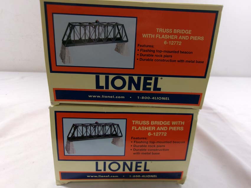 These are the #24183 Lionelville Gas Station, two #12772 Trestle Bridges w/Flashers & Piers, and the #24117 Covered Bridge that Lionel made a few years ago. Our Opinion is that they are generally in Like New Condition. Original Boxes. All Original in our Opinion. Please add $50.00 for US-48 Shipping and Insurance (more west of the Mississippi). |