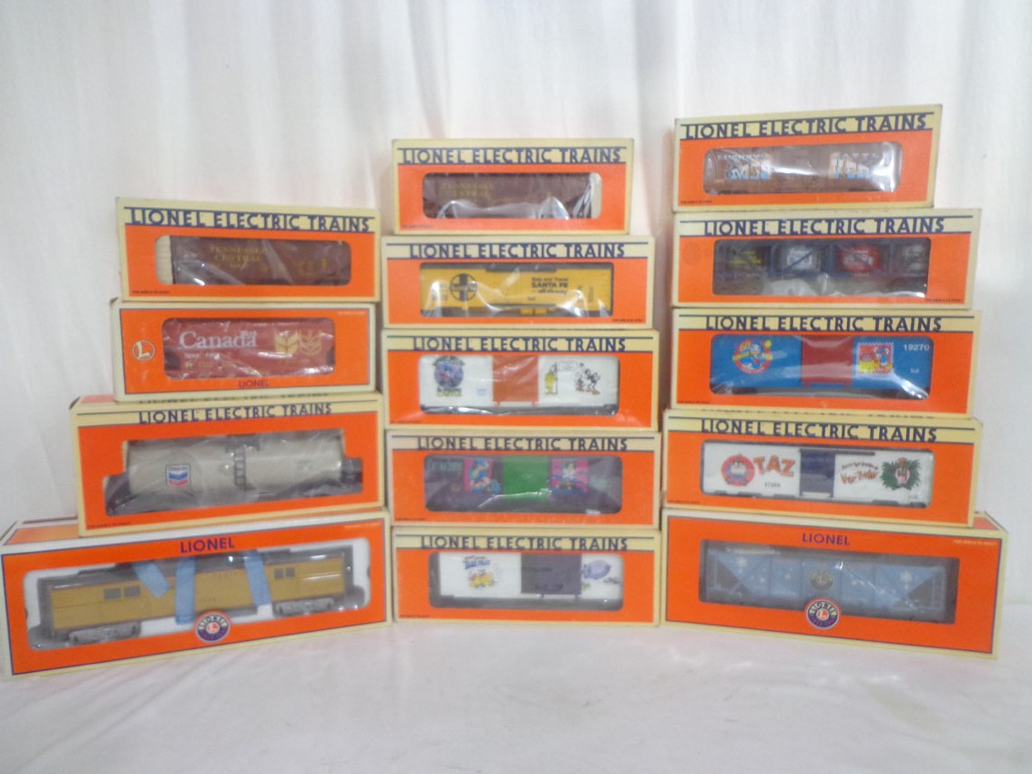 These are the #15186 Union Pacific Baggage Car and thirteen Assorted Freight Cars that Lionel made a few years ago. Our Opinion is that they are generally in Like New or Better Condition. Original Boxes. All Original in our Opinion. Please add $50.00 for US-48 Shipping and Insurance (more west of the Mississippi). |