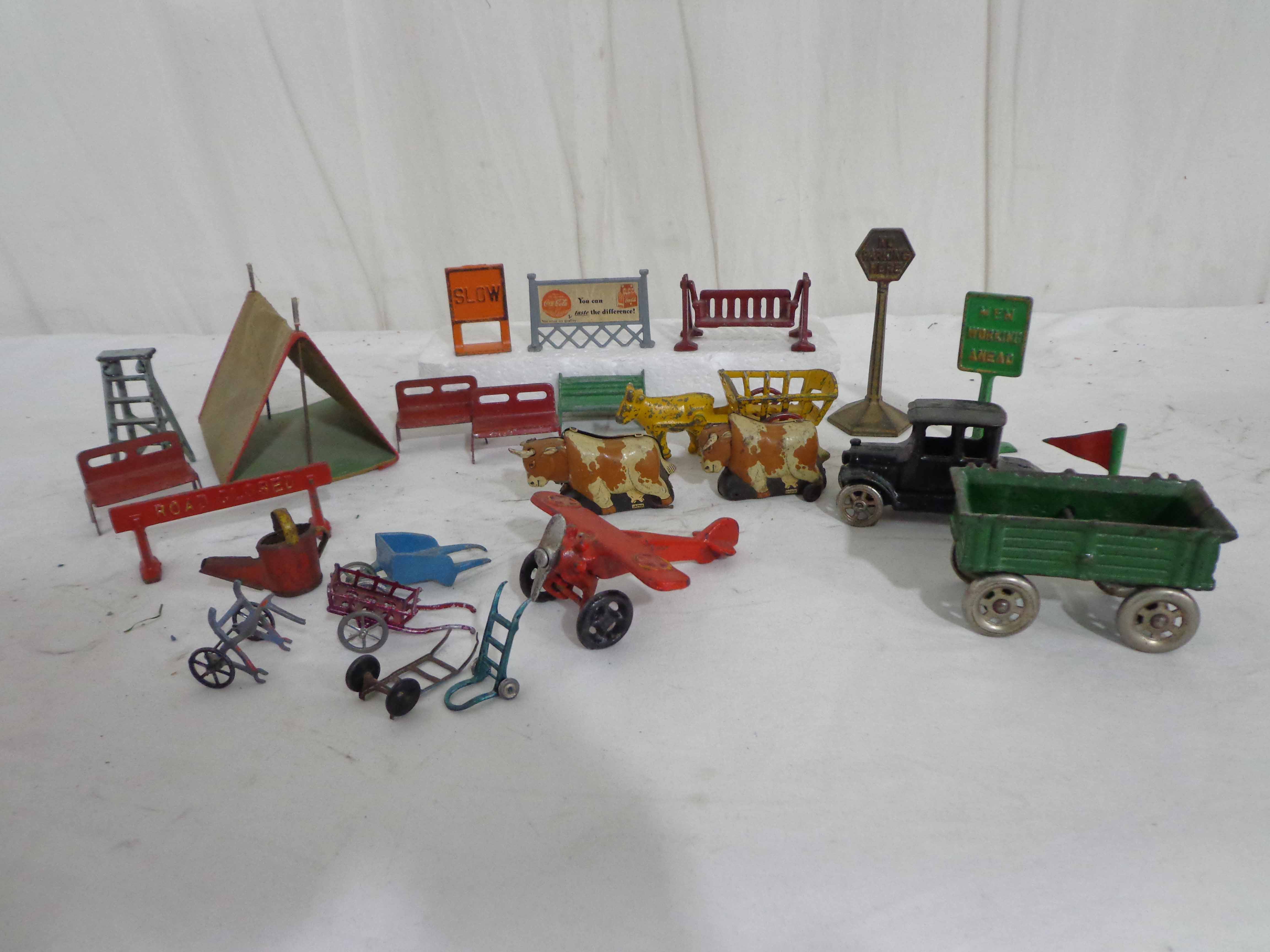 These are twenty-five Assorted Manufactures Metal and Cast Iron Accessories. No Boxes. Examine very closely; what is pictured is what you will receive. Please add $45.00 for US-48 Shipping and Insurance (more west of the Mississippi).