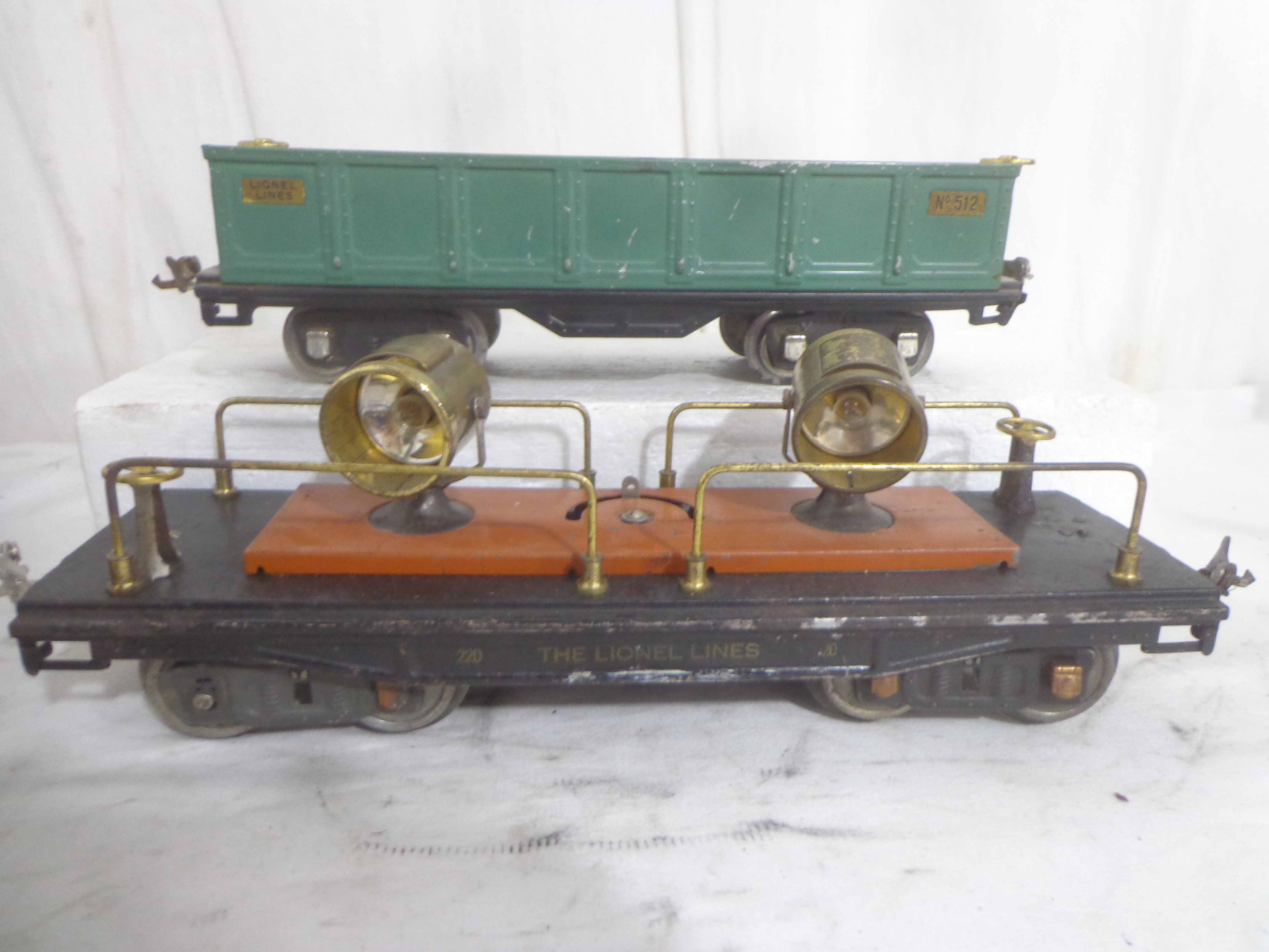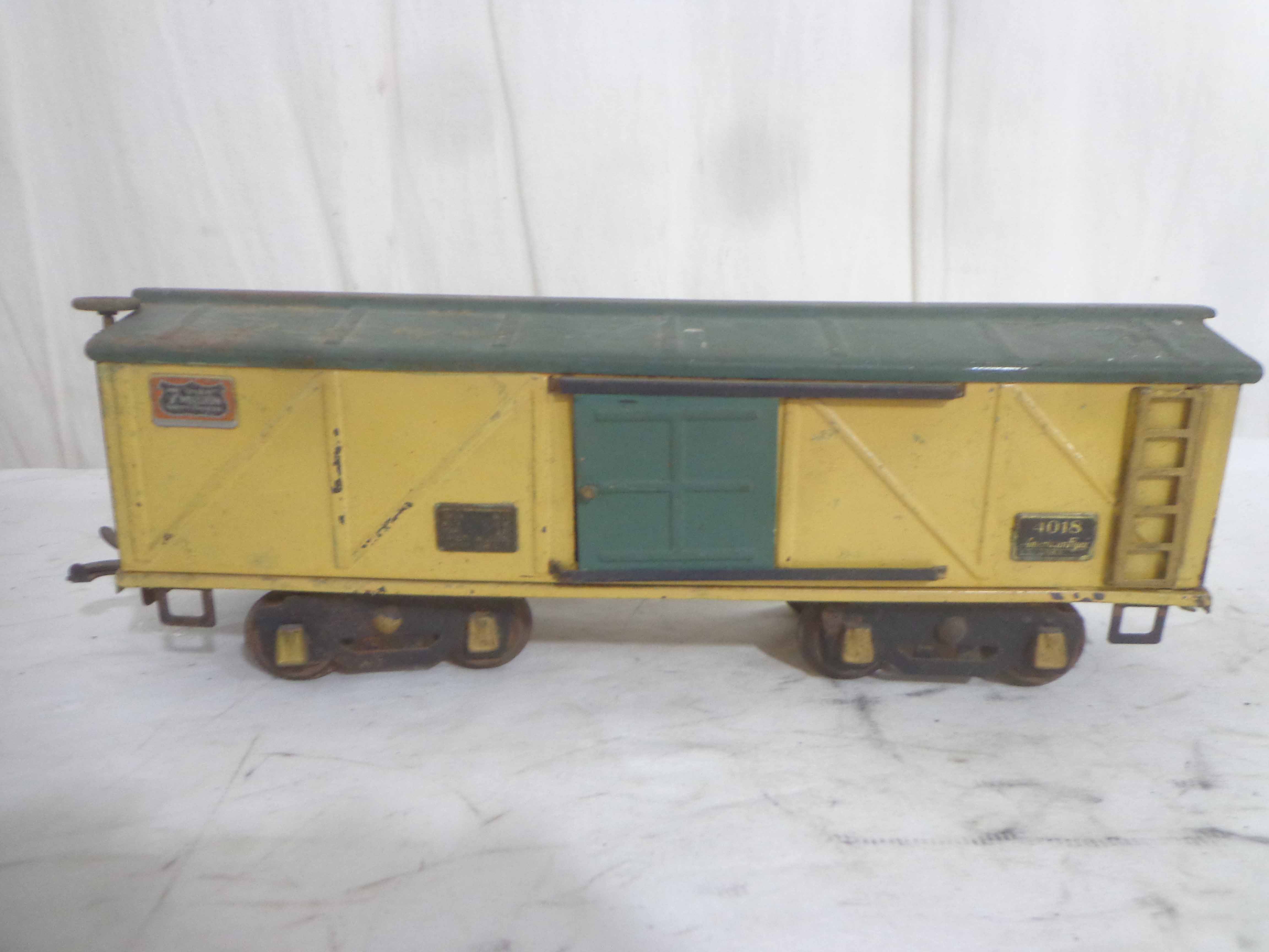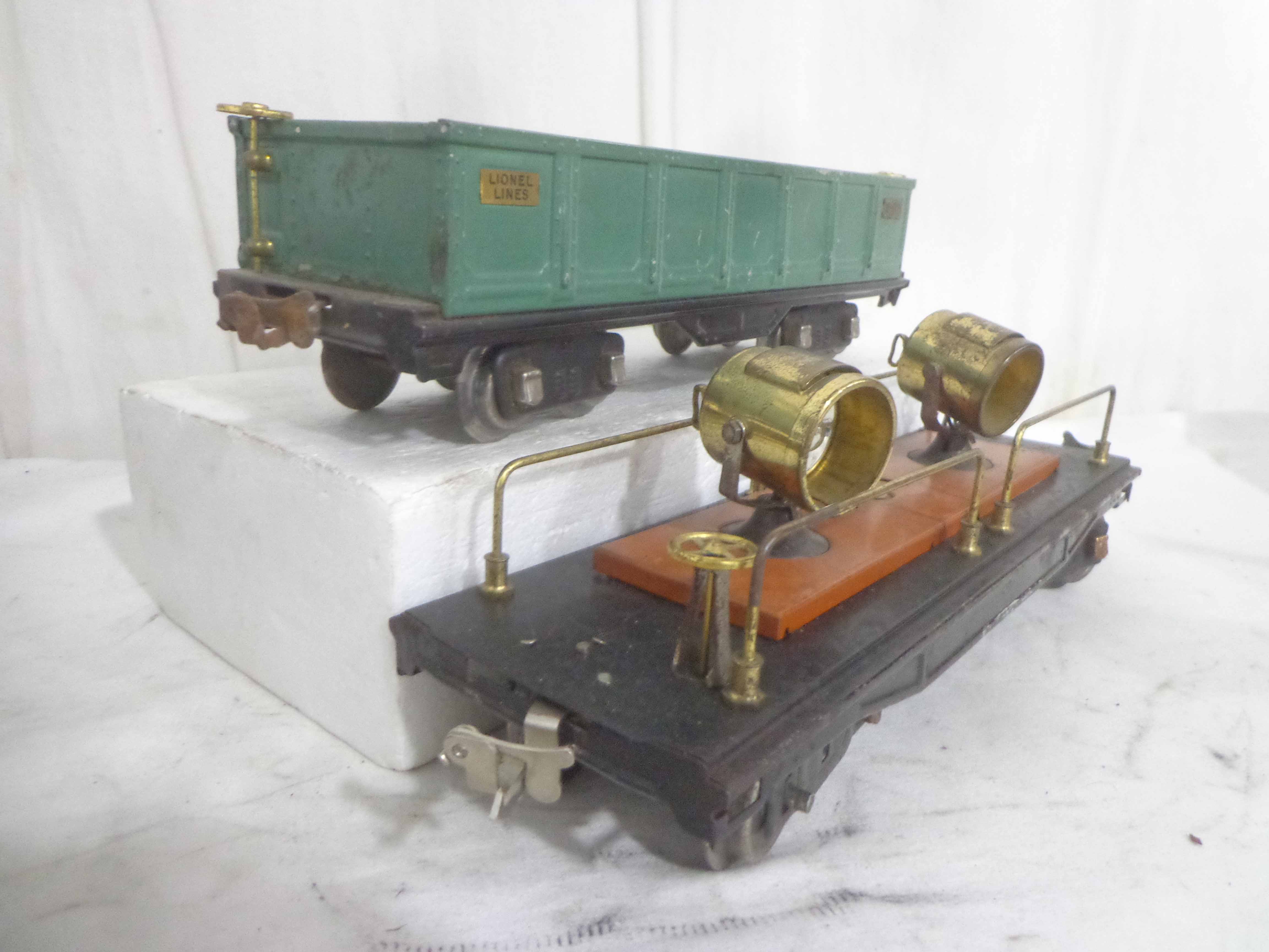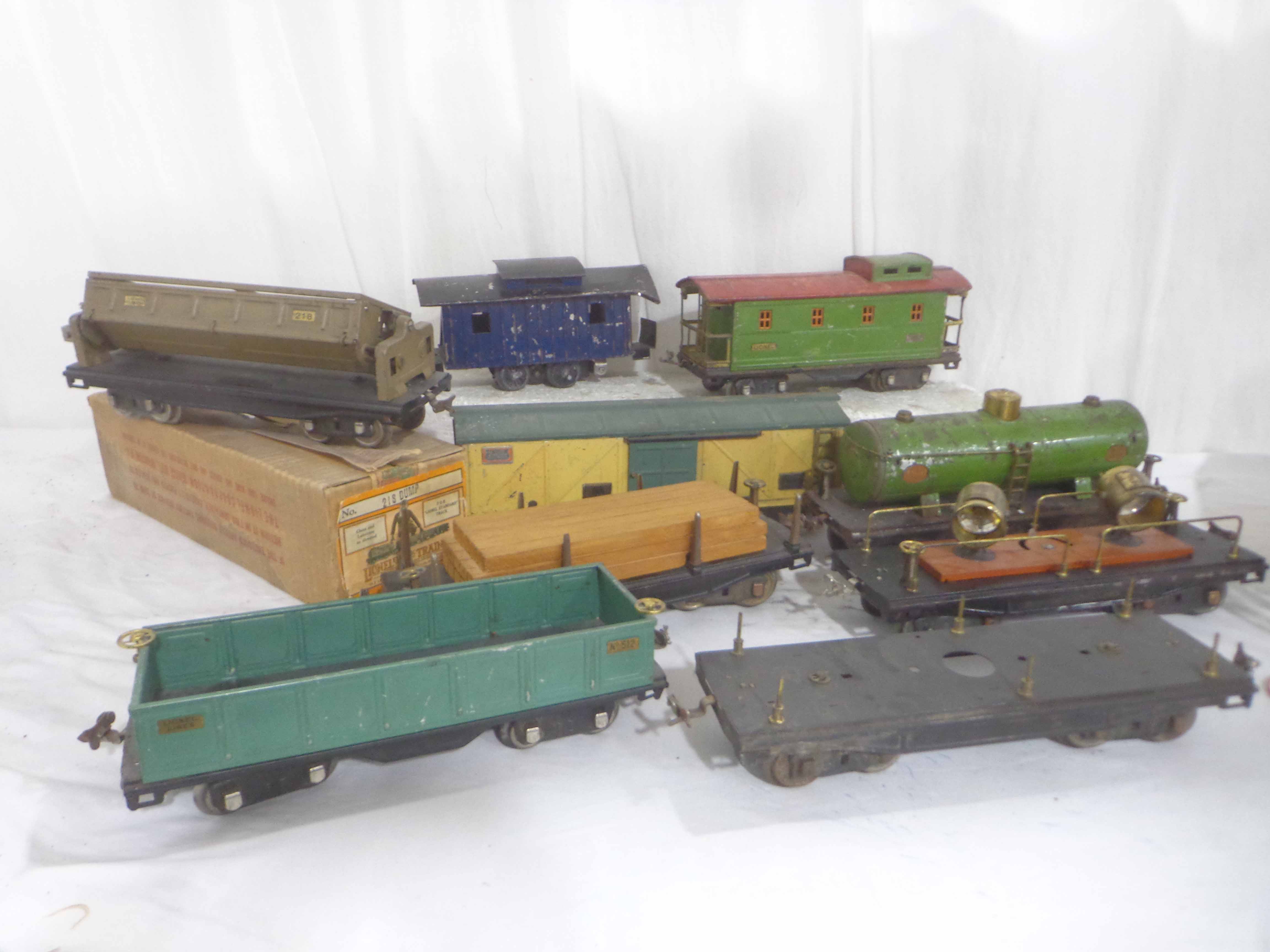 These are nine Assorted Cars that Lionel/AF made Pre War (one is a caboose shell with an O Gauge motor). One Original Box. Examine closely; what is pictured is what you will receive. Please add $60.00 for US-48 Shipping and Insurance (more west of the Mississippi).