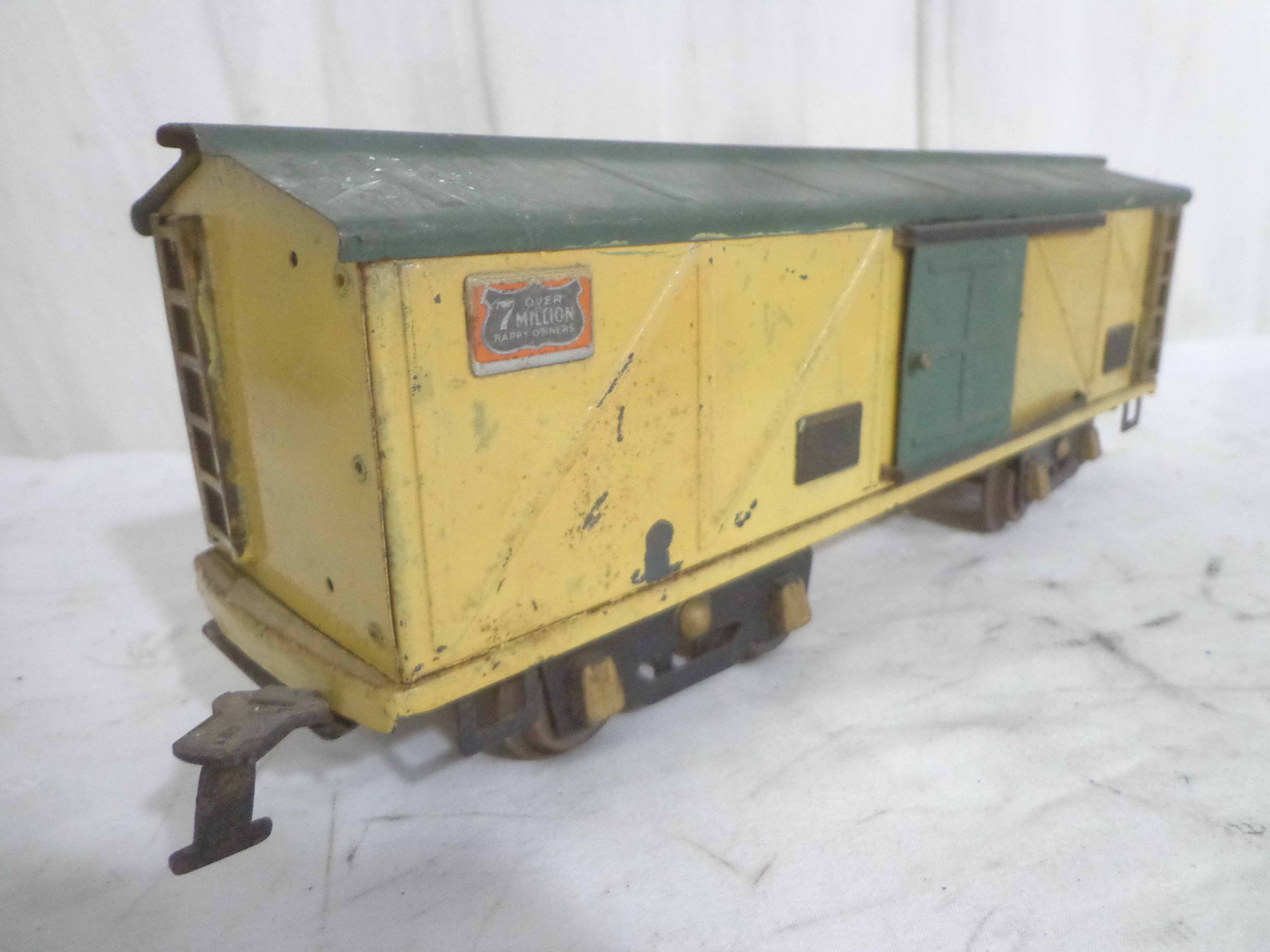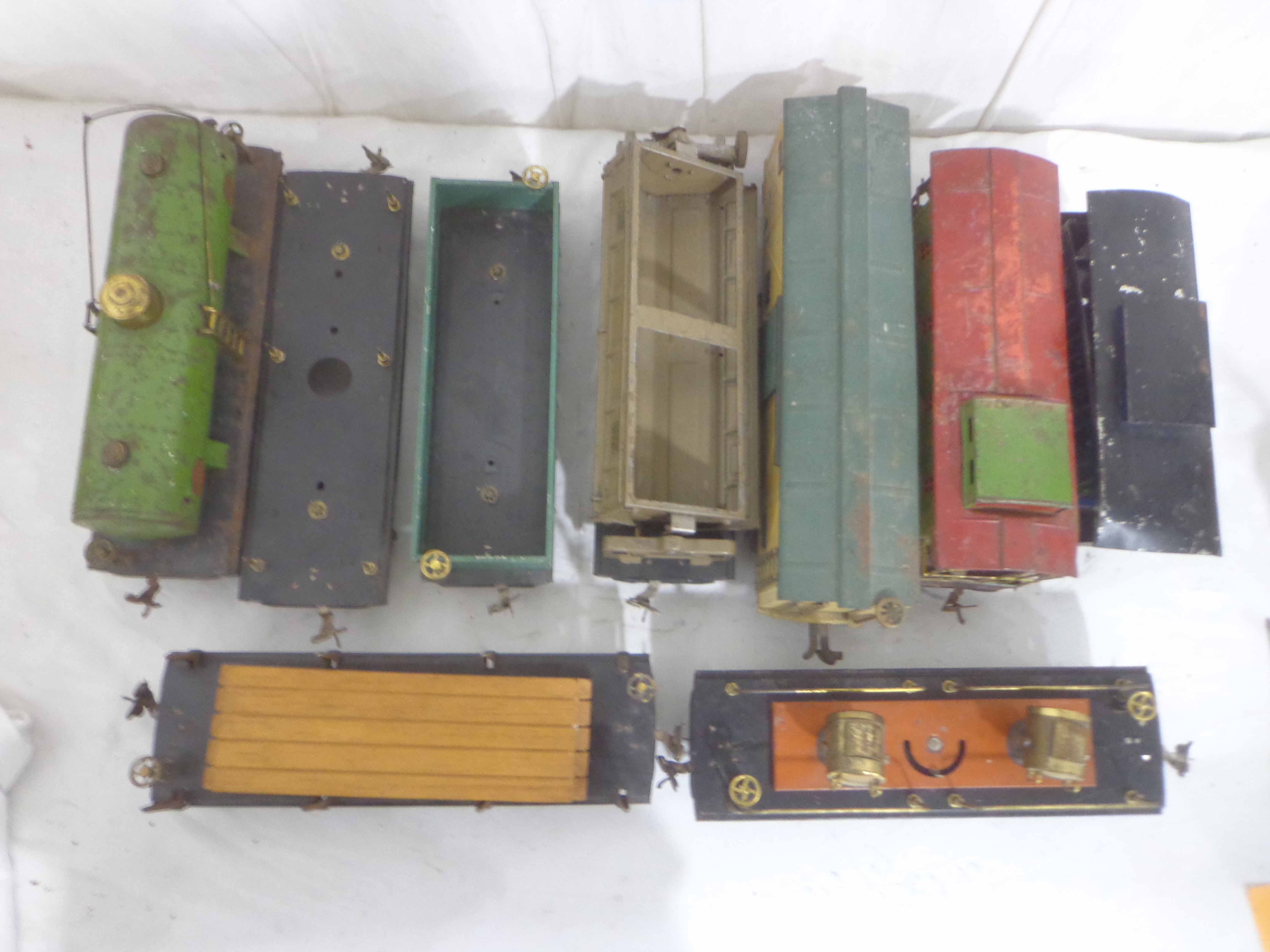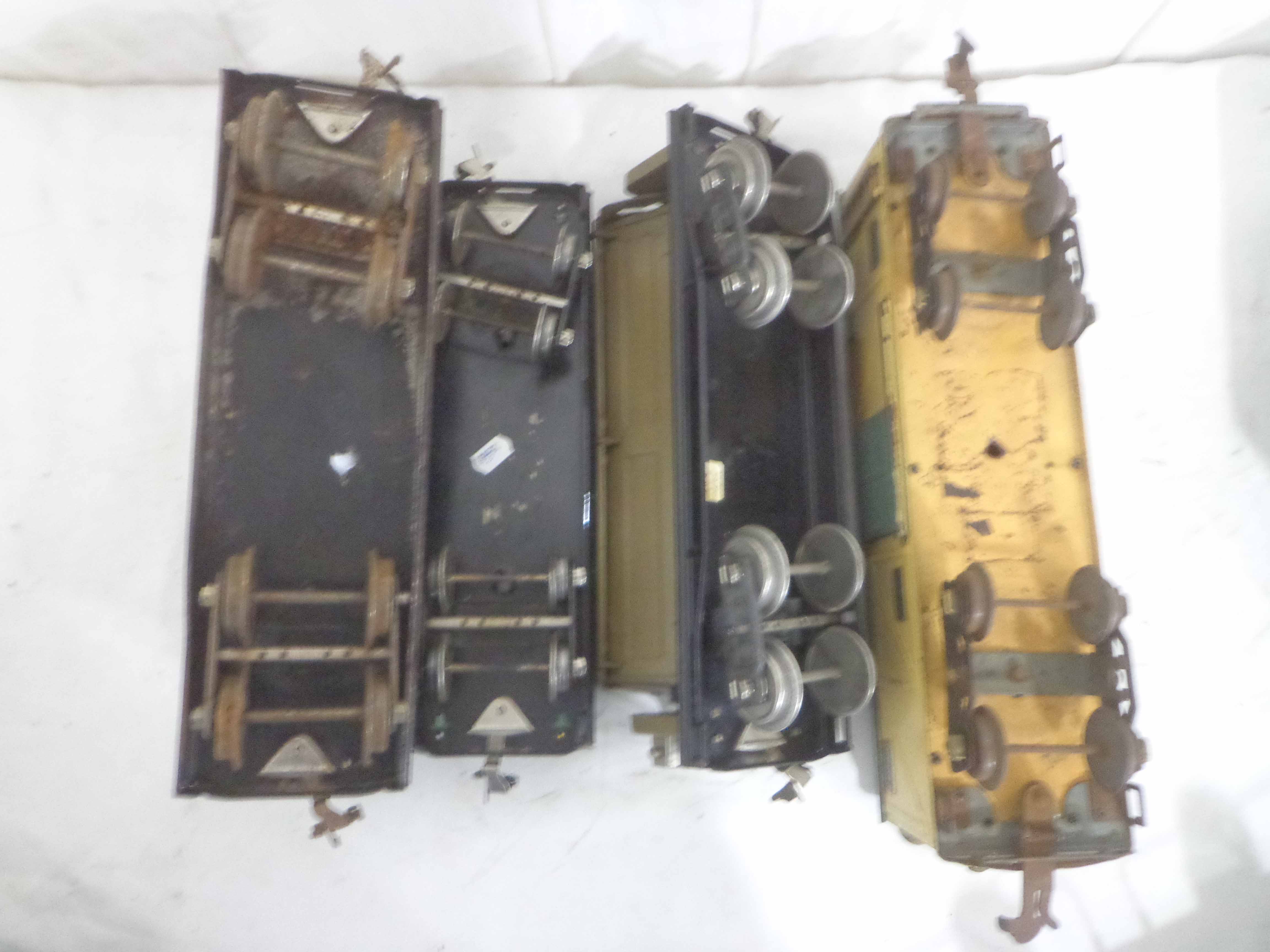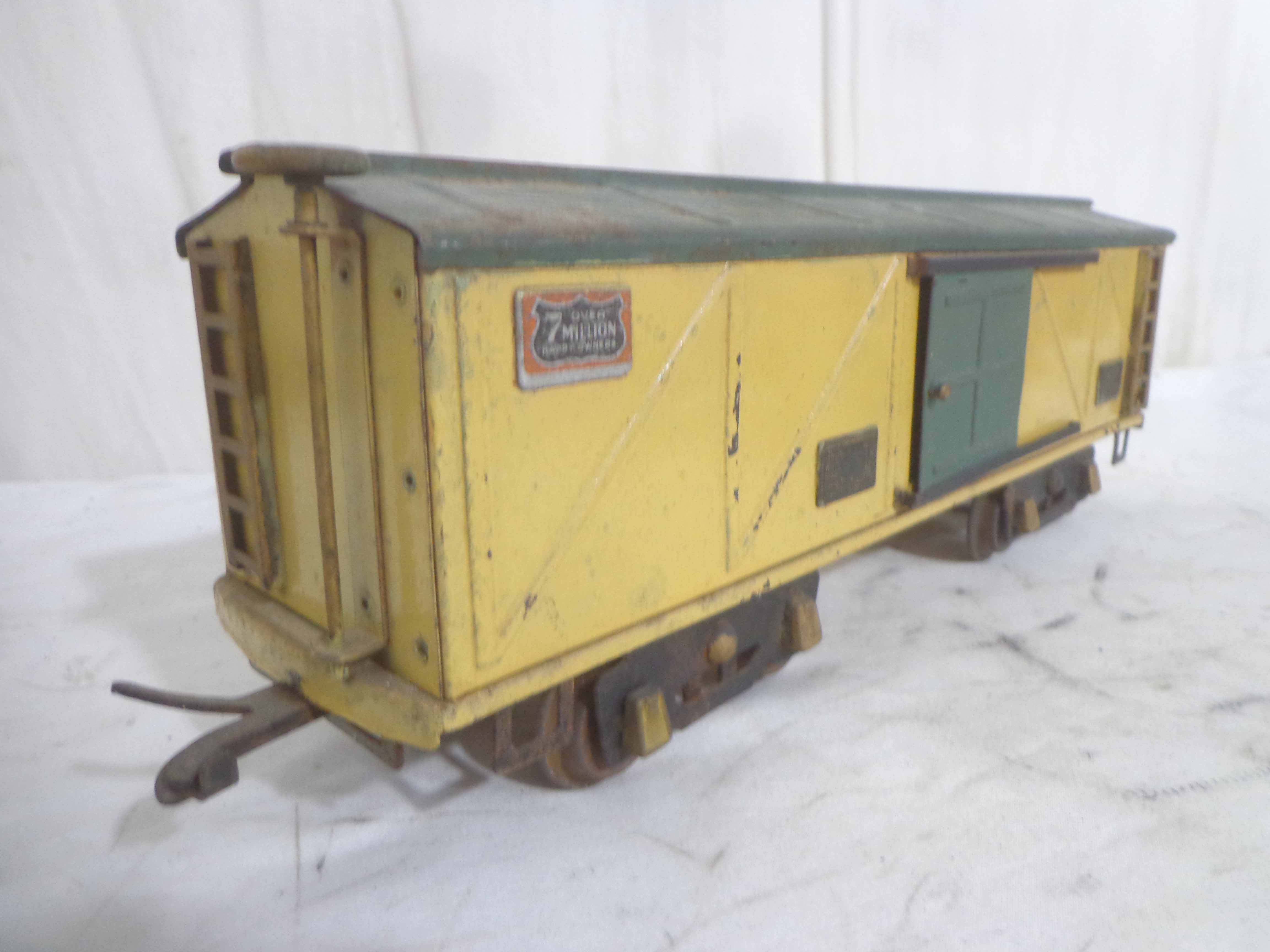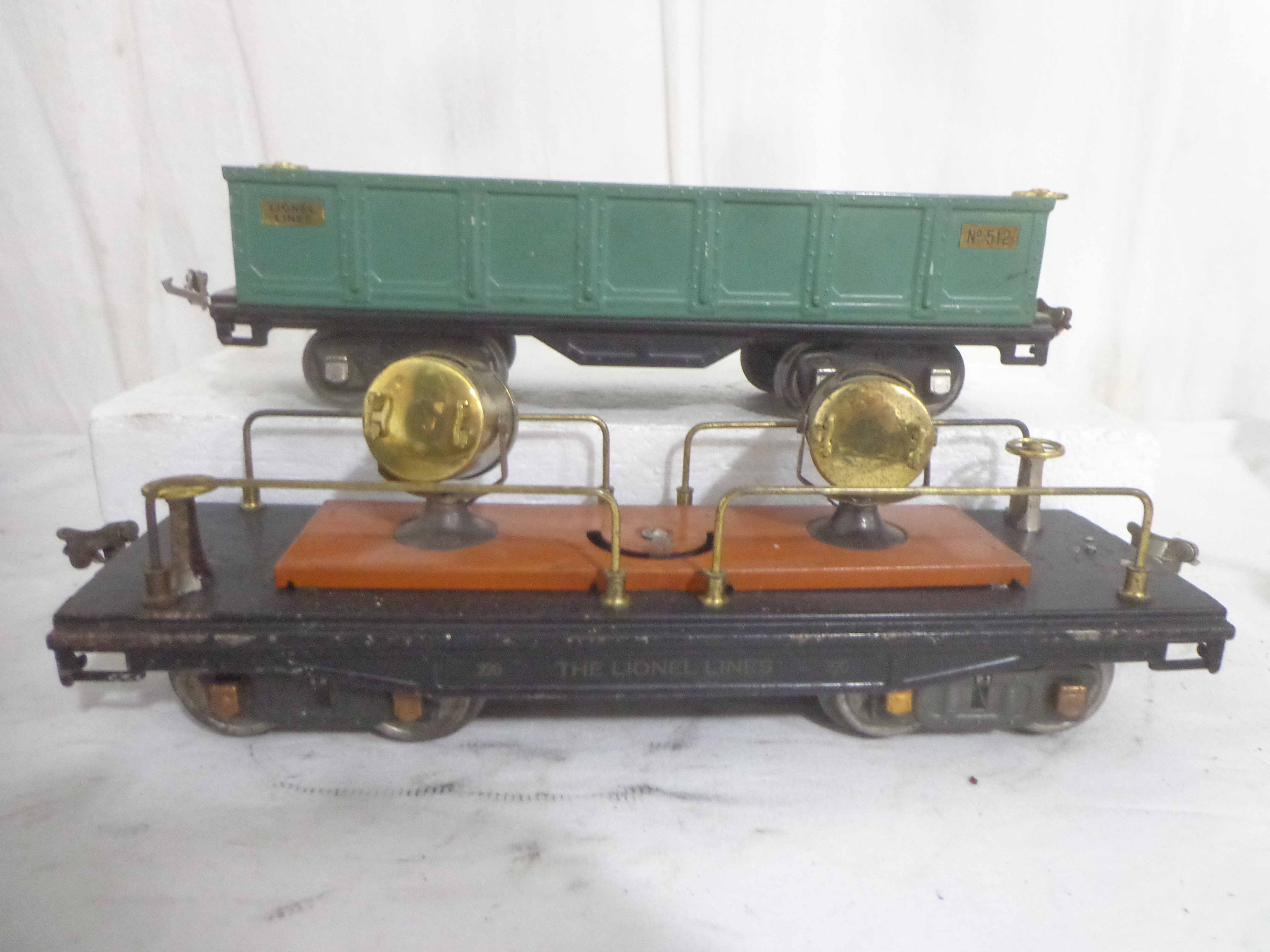 These are nine Assorted Cars that Lionel/AF made Pre War (one is a caboose shell with an O Gauge motor). One Original Box. Examine closely; what is pictured is what you will receive. Please add $60.00 for US-48 Shipping and Insurance (more west of the Mississippi).