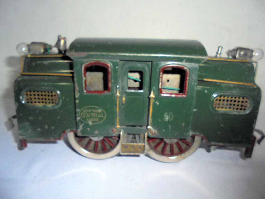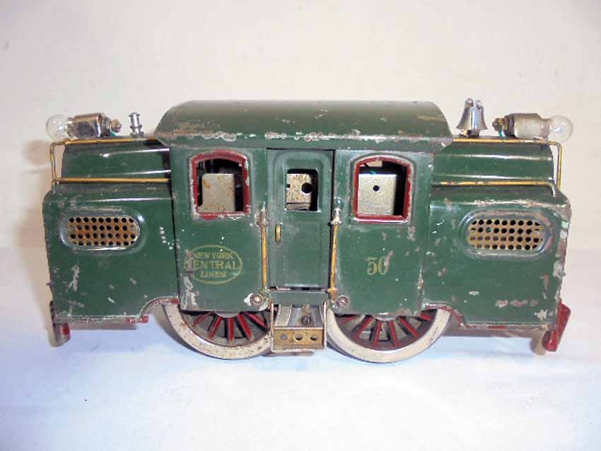 This is the Lionel Standard Gauge #50 Green Electric Engine made in the 1920s. No Box. Examine closely; what is pictured is what you will receive. Please add $35.00 for US-48 Shipping and Insurance (more west of the Mississippi). |