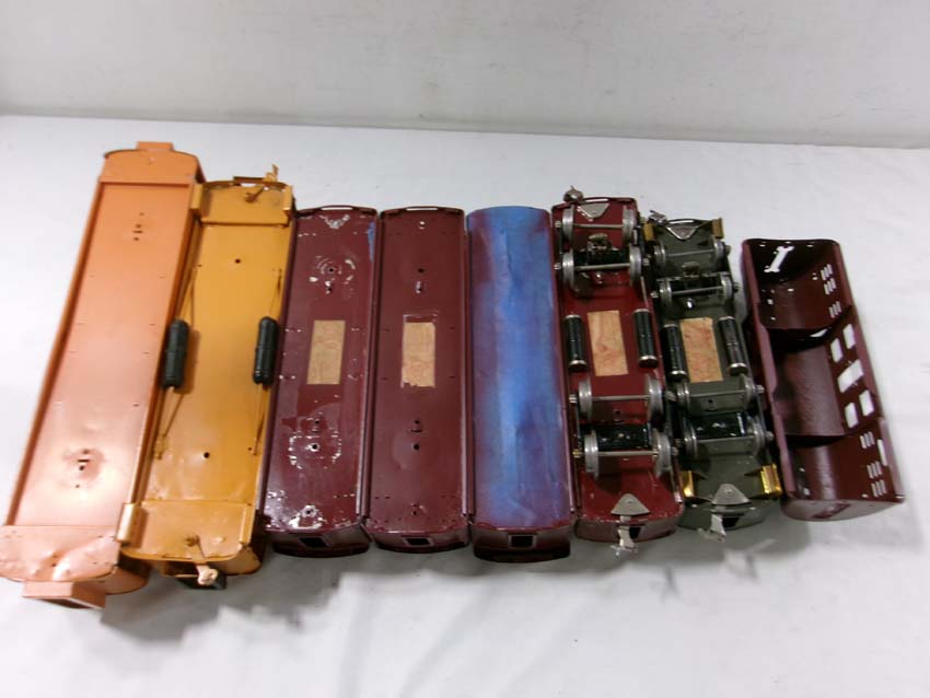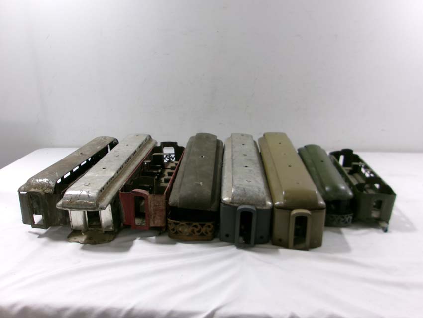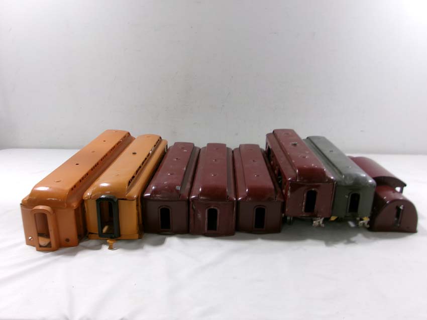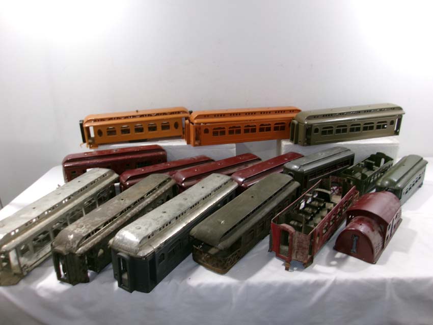 These are sixteen Assorted Lionel Standard Gauge Passenger Car and Engine Shells (most repainted). No Boxes. Examine closely; what is pictured is what you will receive. Please add $60.00 for US-48 Shipping and Insurance (more west of the Mississippi).
