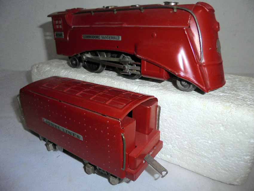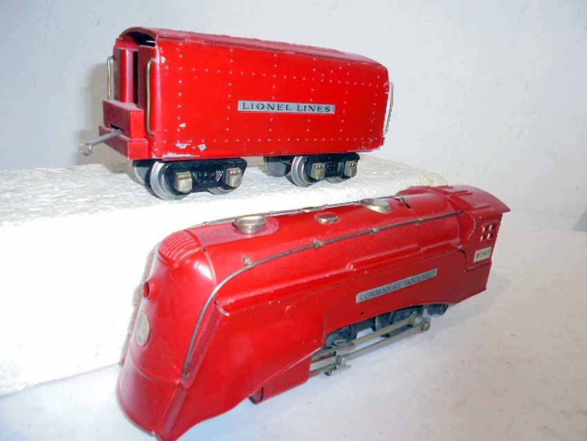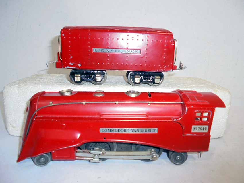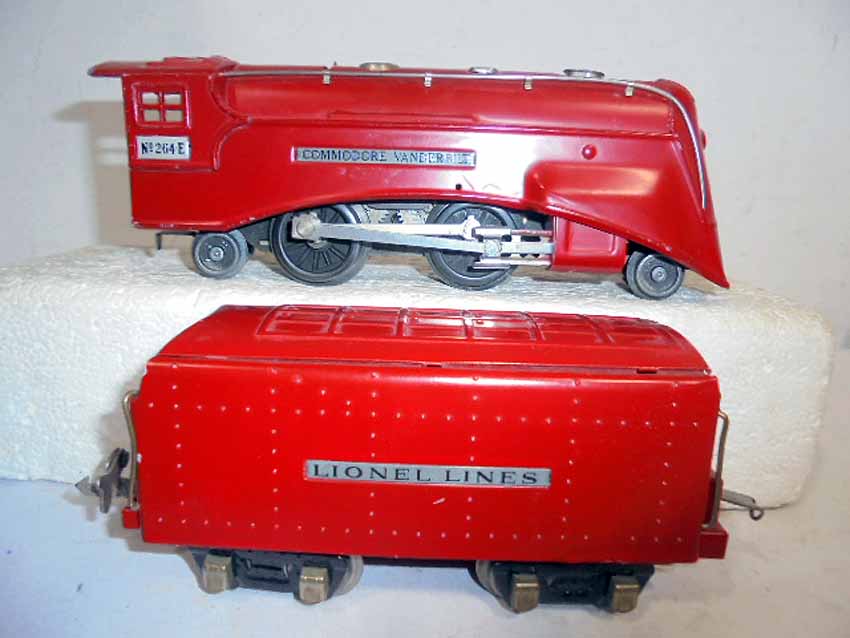 These are the #264E Red Commodore Vanderbilt Engine & Tender (TCA Restored) that Lionel made in O Gauge in the 1930s. Examine closely; what is pictured is what you will receive. No boxes. Please add $35.00 for US-48 Shipping and Insurance (more west of the Mississippi).