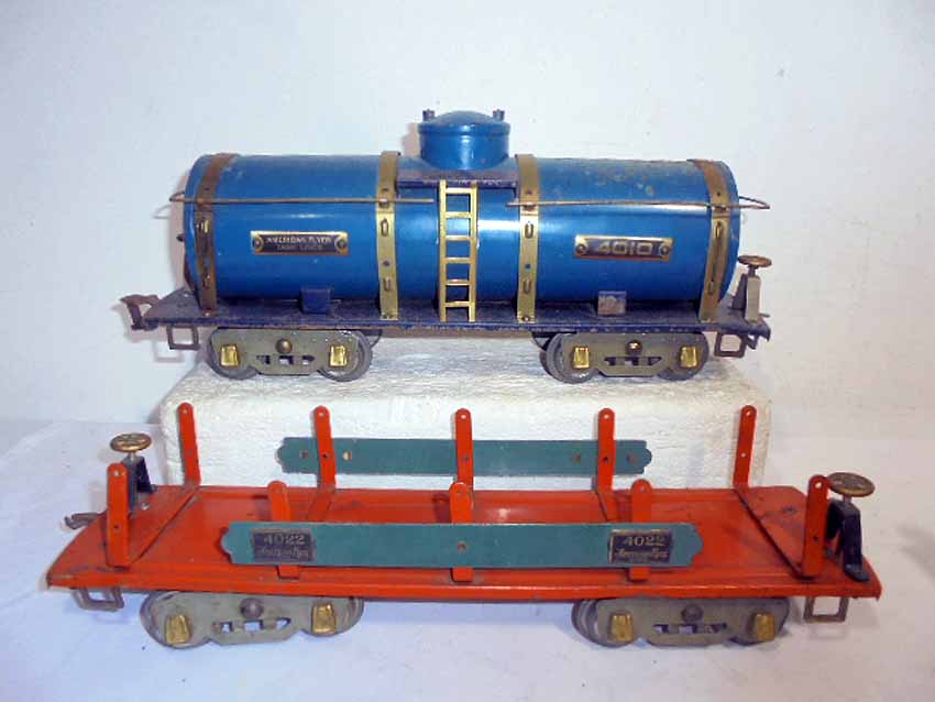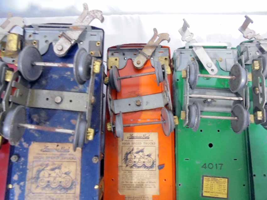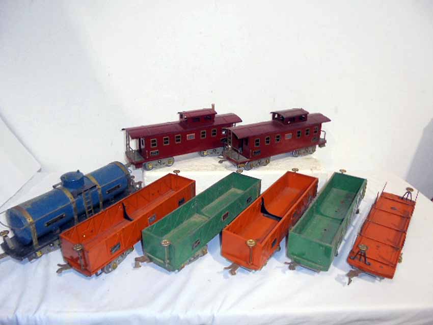 These are eight Assorted American Flyer Wide Gauge Cars that American Flyer made Pre War. No Boxes. Examine very closely; what is pictured is what you will receive. Please add $50.00 for US-48 Shipping and Insurance (more west of the Mississippi).