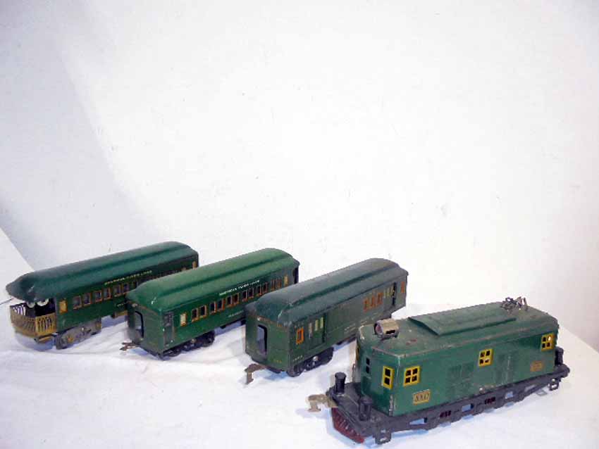 AF Wide Gauge 1928 #7038 Uncatalogued Set, Includes #4000 Electric Engine , #4040 Baggage, #4041 Pullman and #4042 Observation Car(Restored), BA |