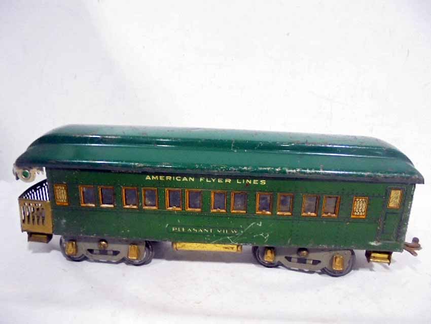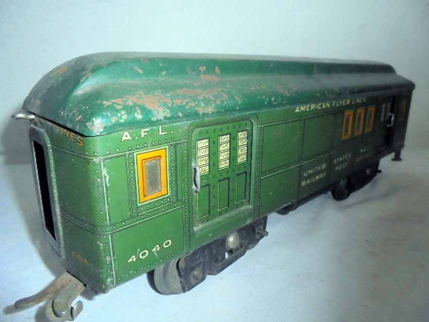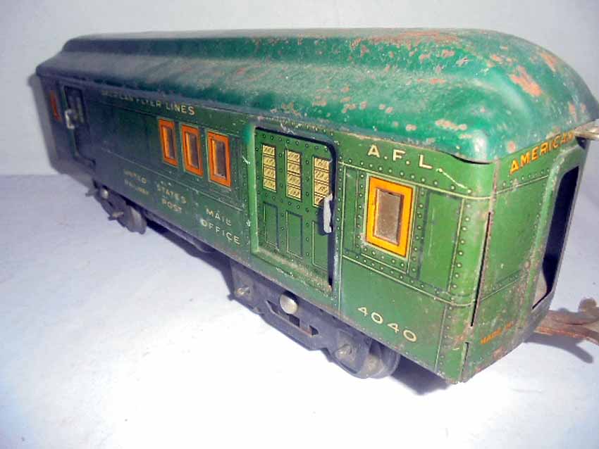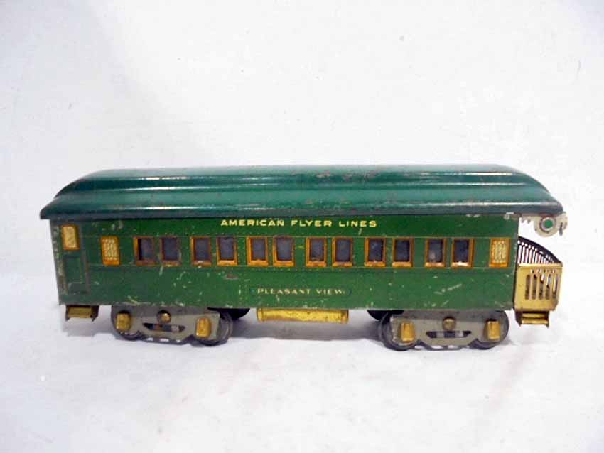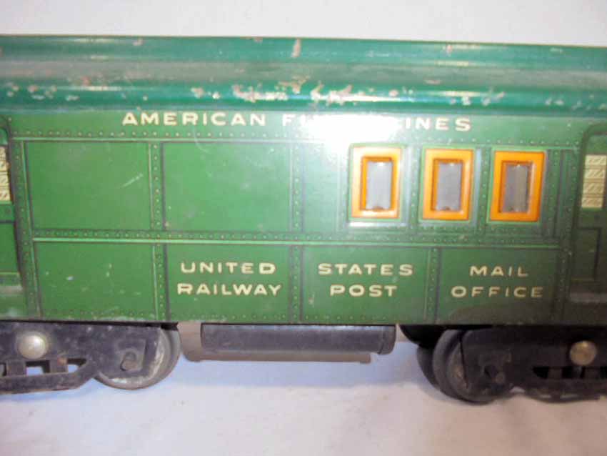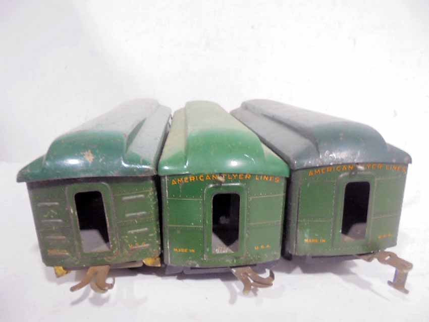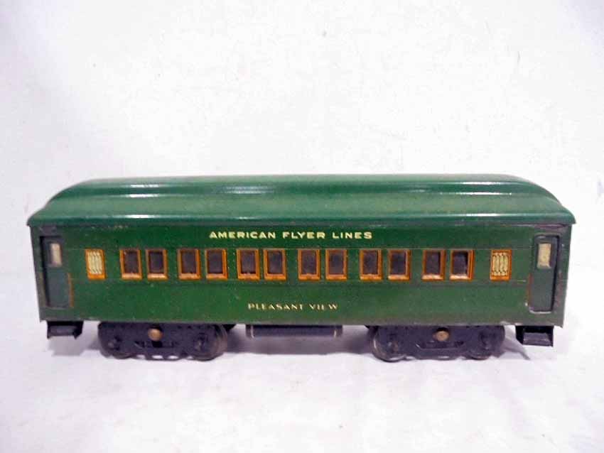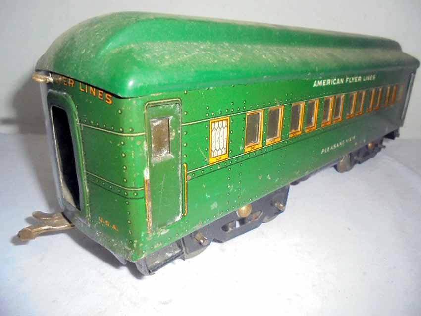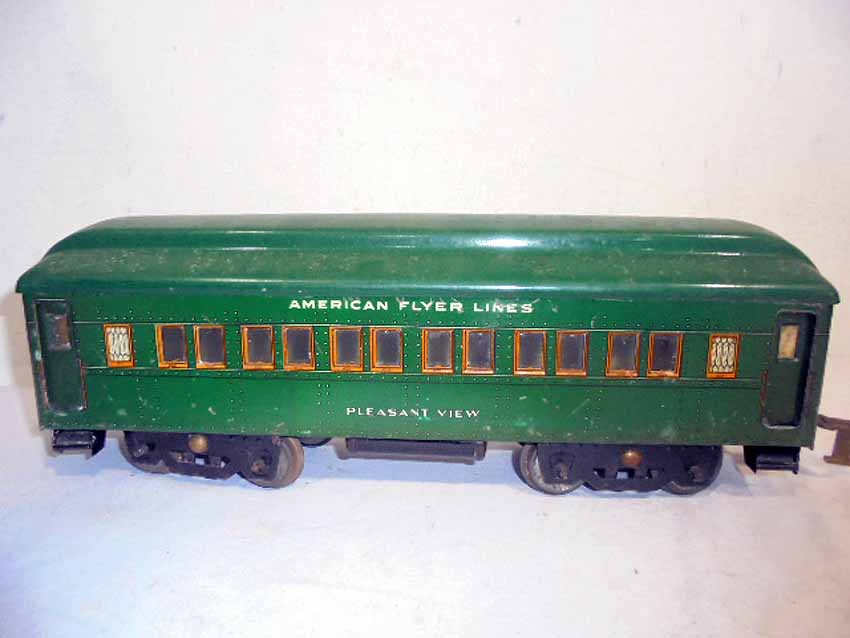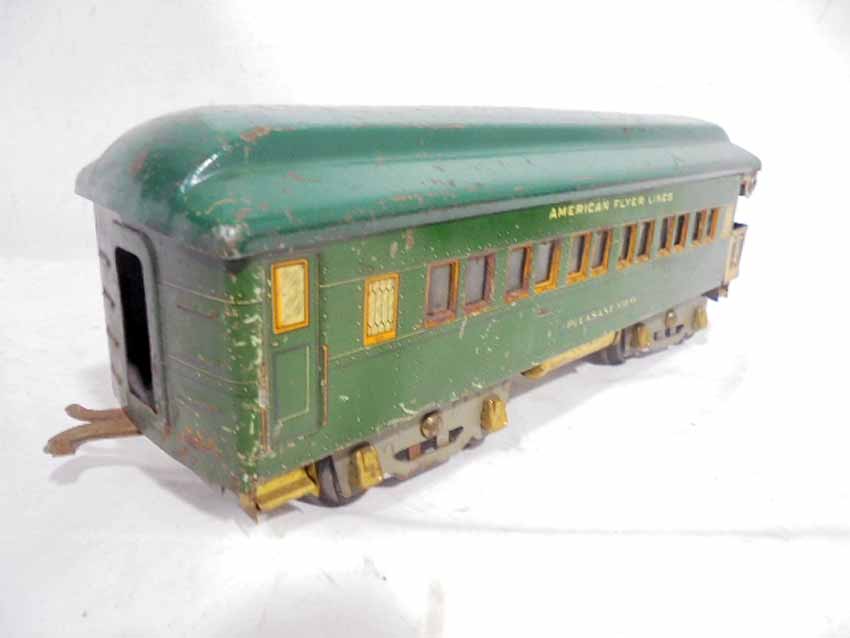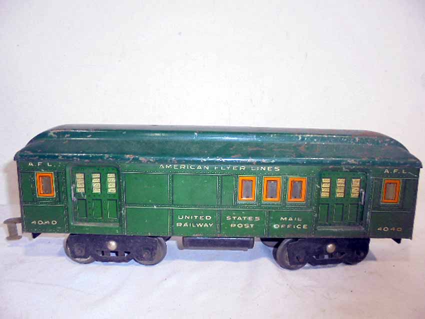 This is the American Flyer Wide Gauge #7038 Uncatalogued Set made 1928. Includes #4000 Electric Engine, #4040 Baggage, #4041 Pullman and #4042 Observation Car(Restored). No Box. Examine closely; what is pictured is what you will receiver. Please add $50.00 for US-48 Shipping and Insurance (more west of the Mississippi).