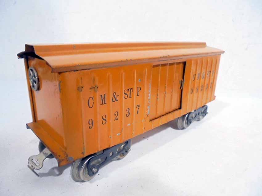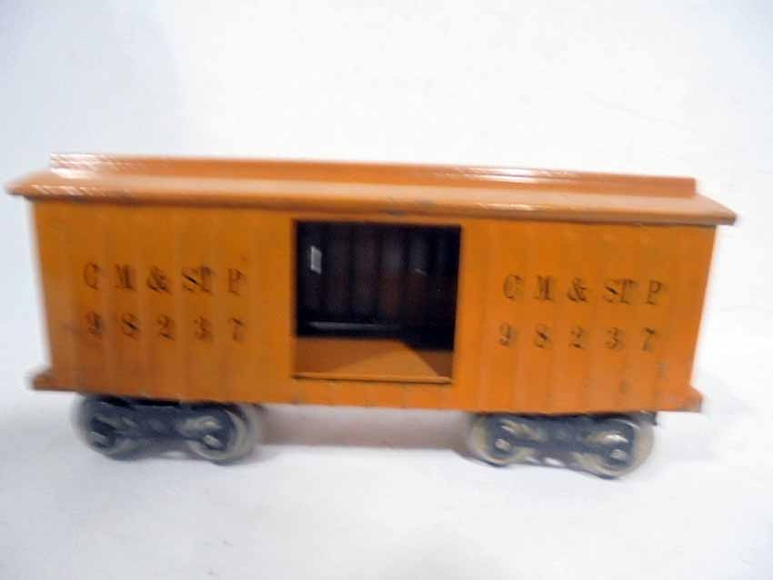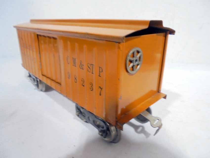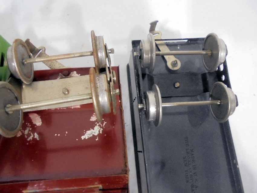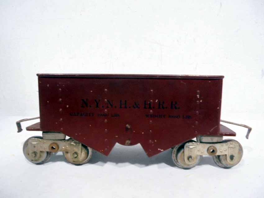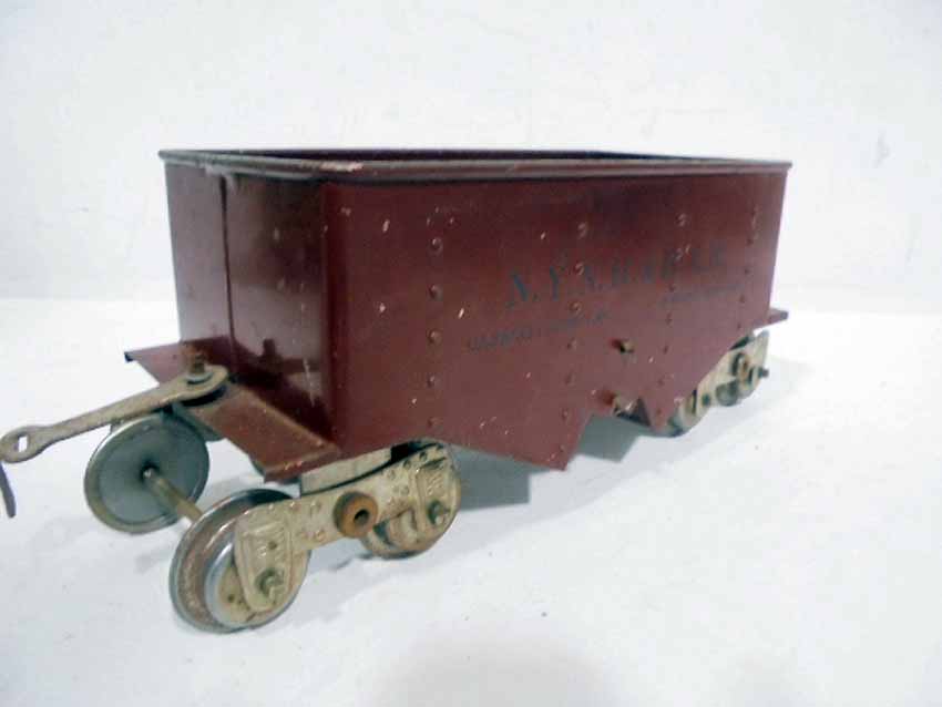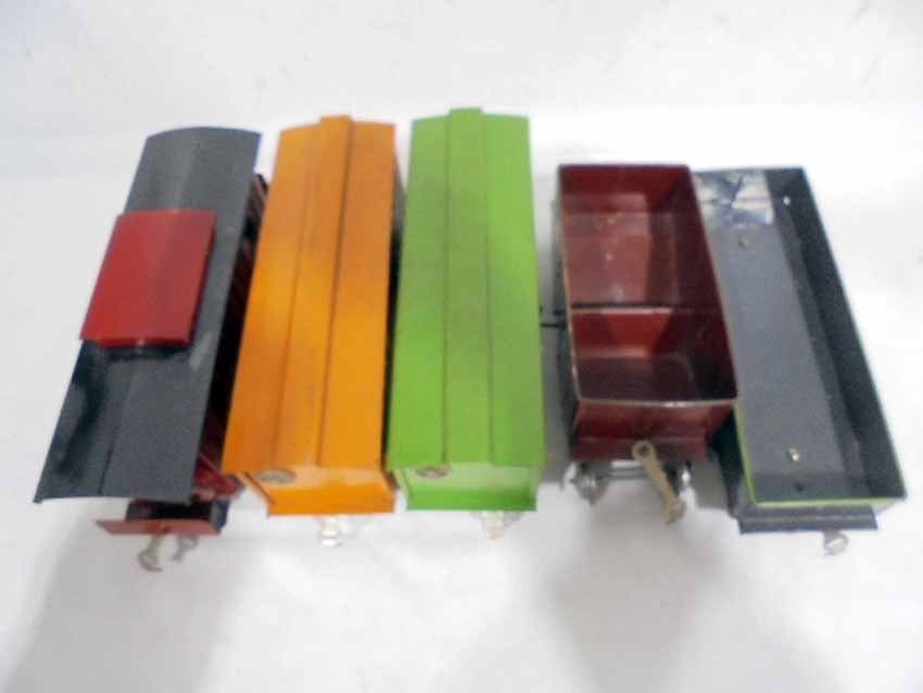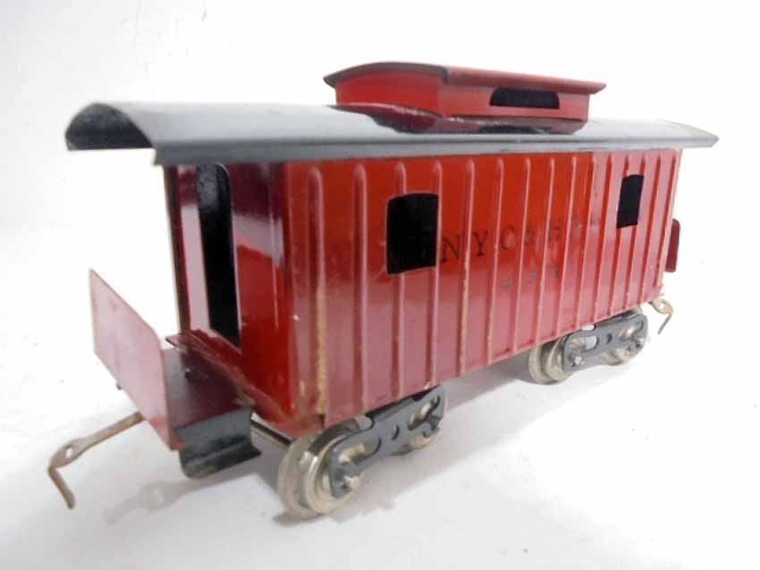 These are the #112 Lake Shore Gondola, #113 Green Stock Car, #114 CM&St P Box Car, #117 NYC & HRRR Caboose, and #116 NYNH & HRR Ballast Hopper that Lionel made in Standard Gauge in the 1920s. No Boxes. Examine very closely; what is pictured is what you will receive. Please add $50.00 for US-48 Shipping and Insurance (more west of the Mississippi).