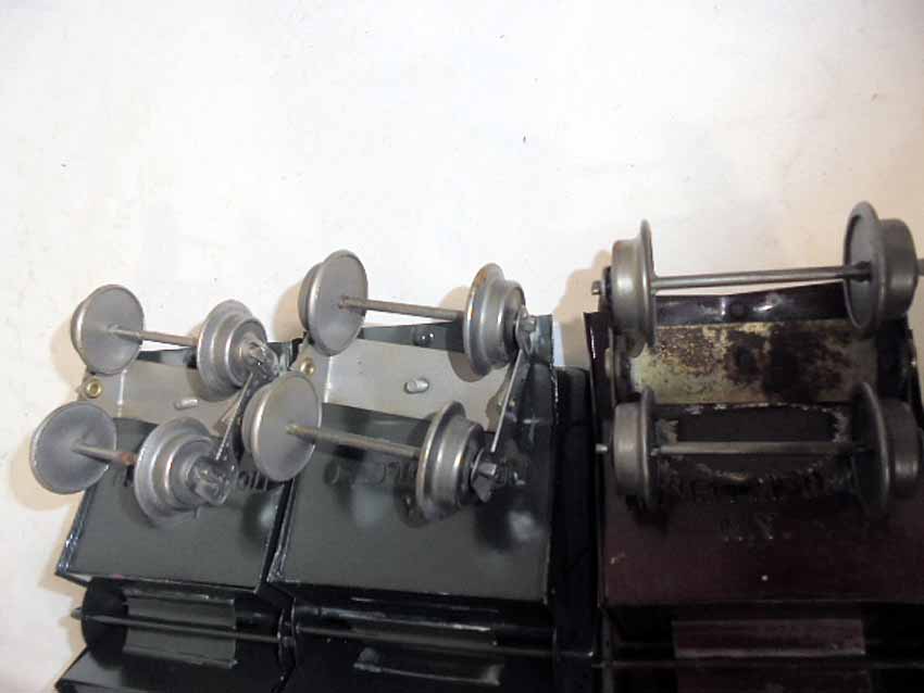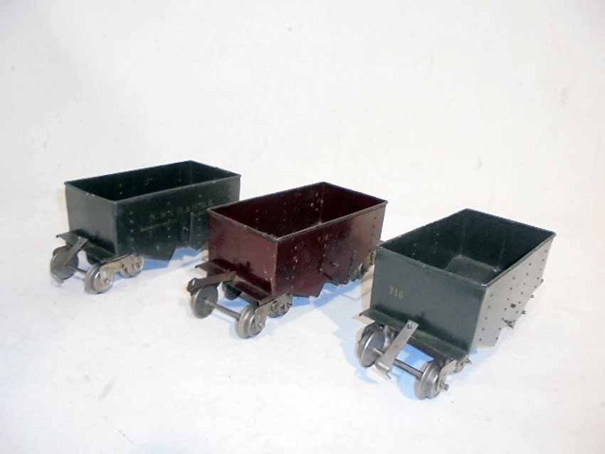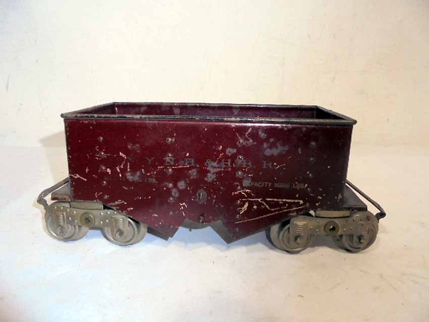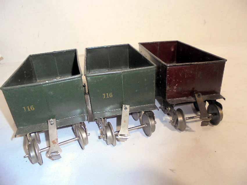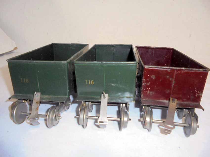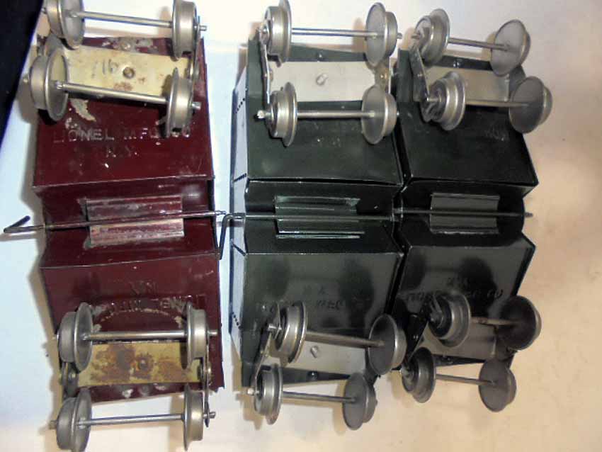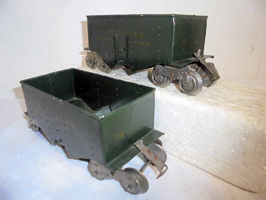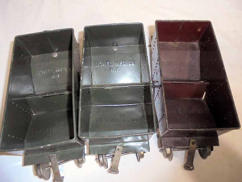 These are three Lionel Standard Gauge #116 NY NH & HRR Ballast Car (two Dk Green/one Maroon w/Lionel Mfg Co) made Pre War. No Boxes. Examine closely; what is pictured is what you will receive. Please add $35.00 for US-48 Shipping and Insurance (more west of the Mississippi).