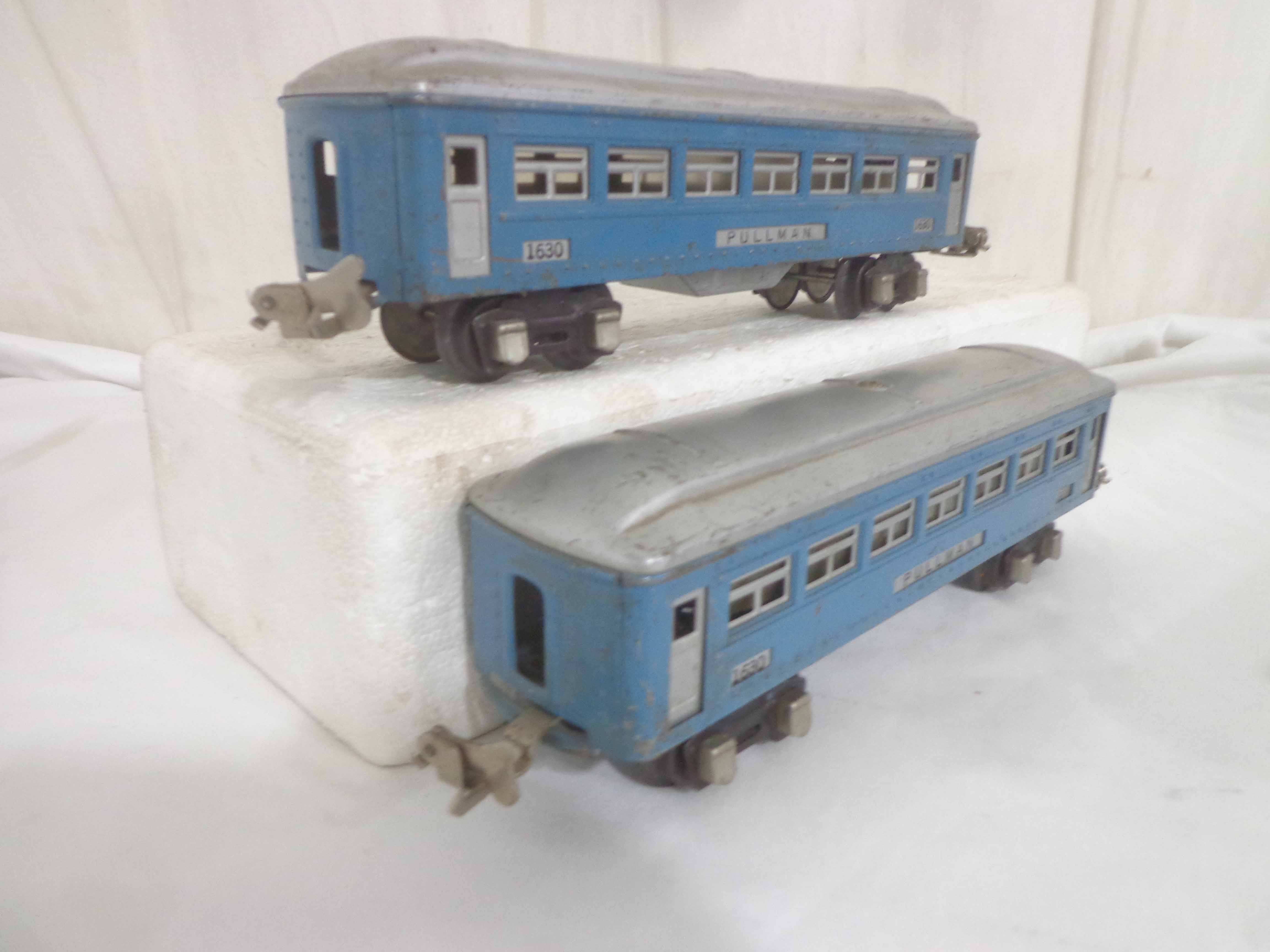 These are the #1630/1630/1631 Passenger Cars that Lionel made in the late 1930s/early 1940s. No Boxes Examine very closely; what is pictured is what you will receive. Please add $35.00 for US-48 Shipping and Insurance (more west of the Mississippi).