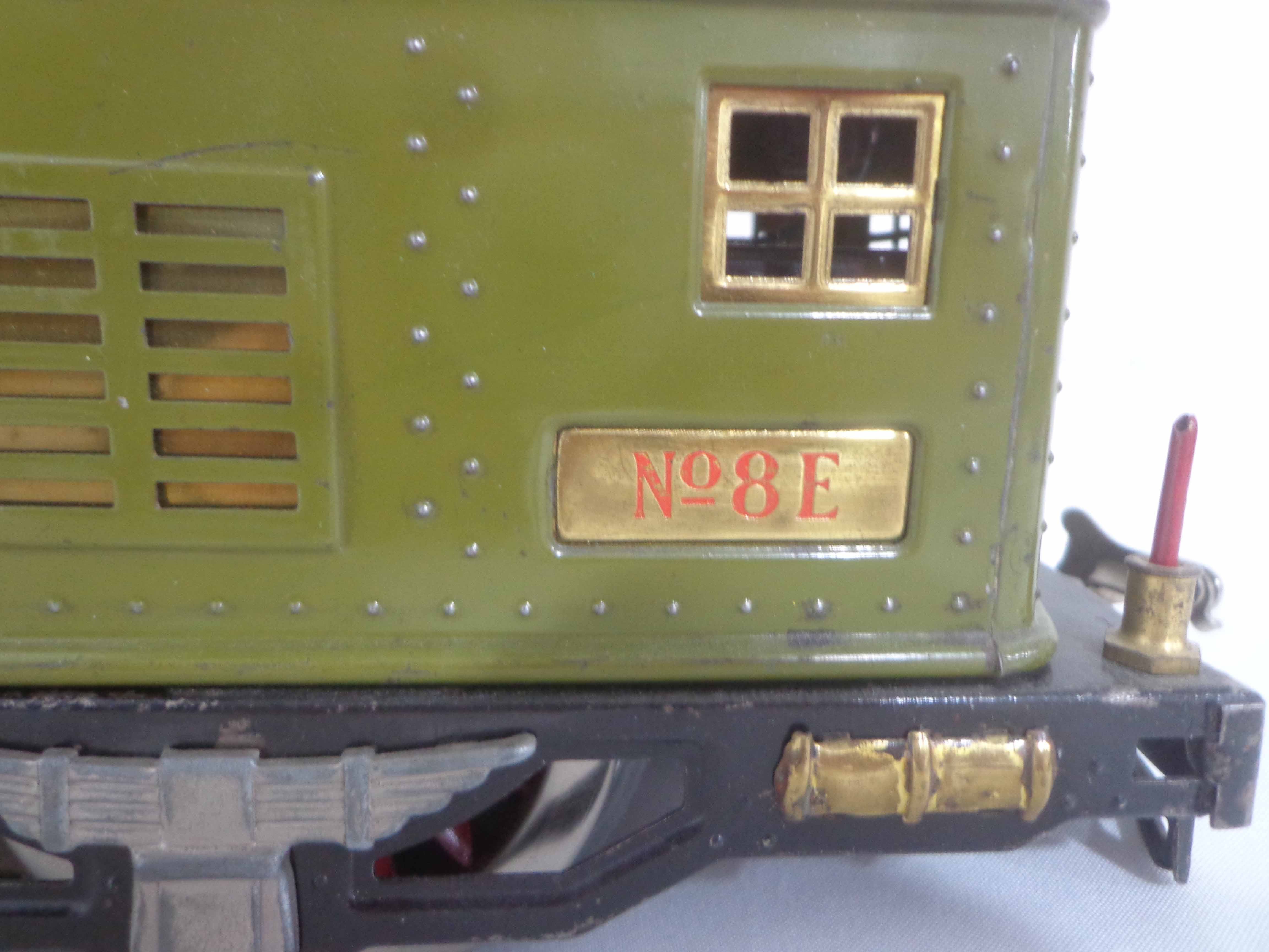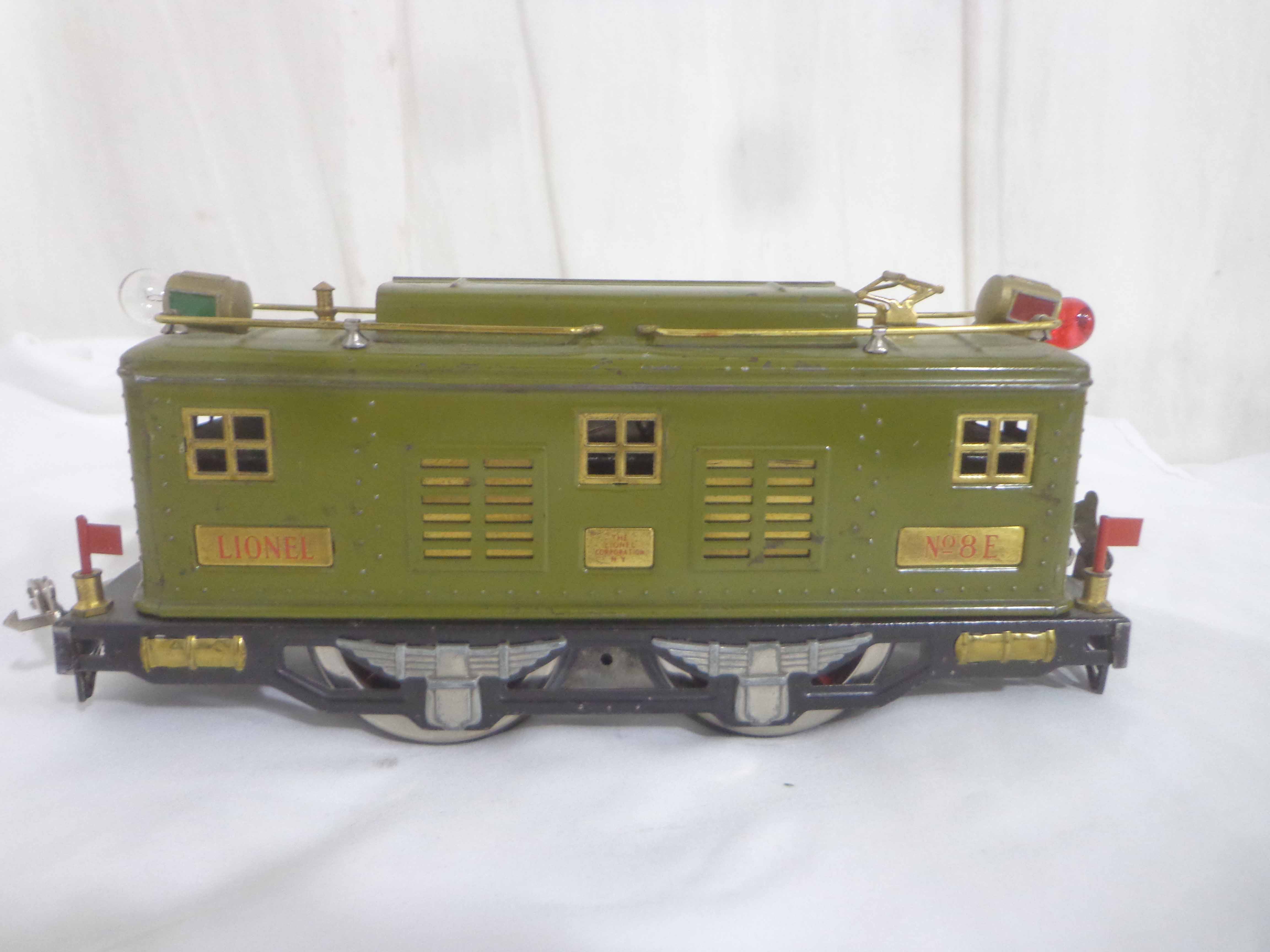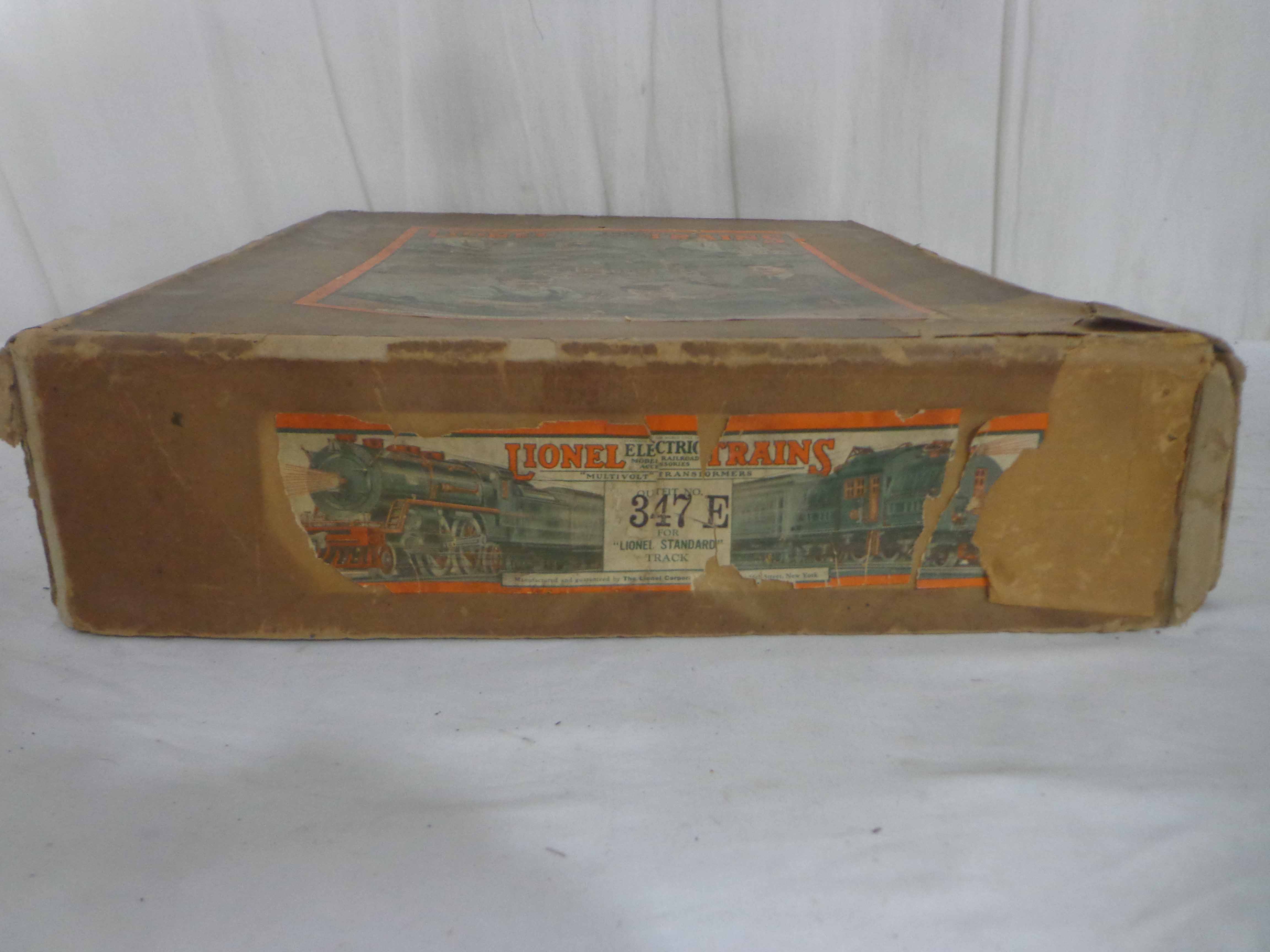 This is the #347E Light Olive Green Passenger Set that Lionel made in Standard Gauge in the 1920s. Includes the #8E Electric Engine and #337/338 Passenger Cars. Original Individual and Set Boxes. Examine very closely; what is pictured is what you will receive. Please add $650.00 for US-48 Shipping and Insurance (more west of the Mississippi).