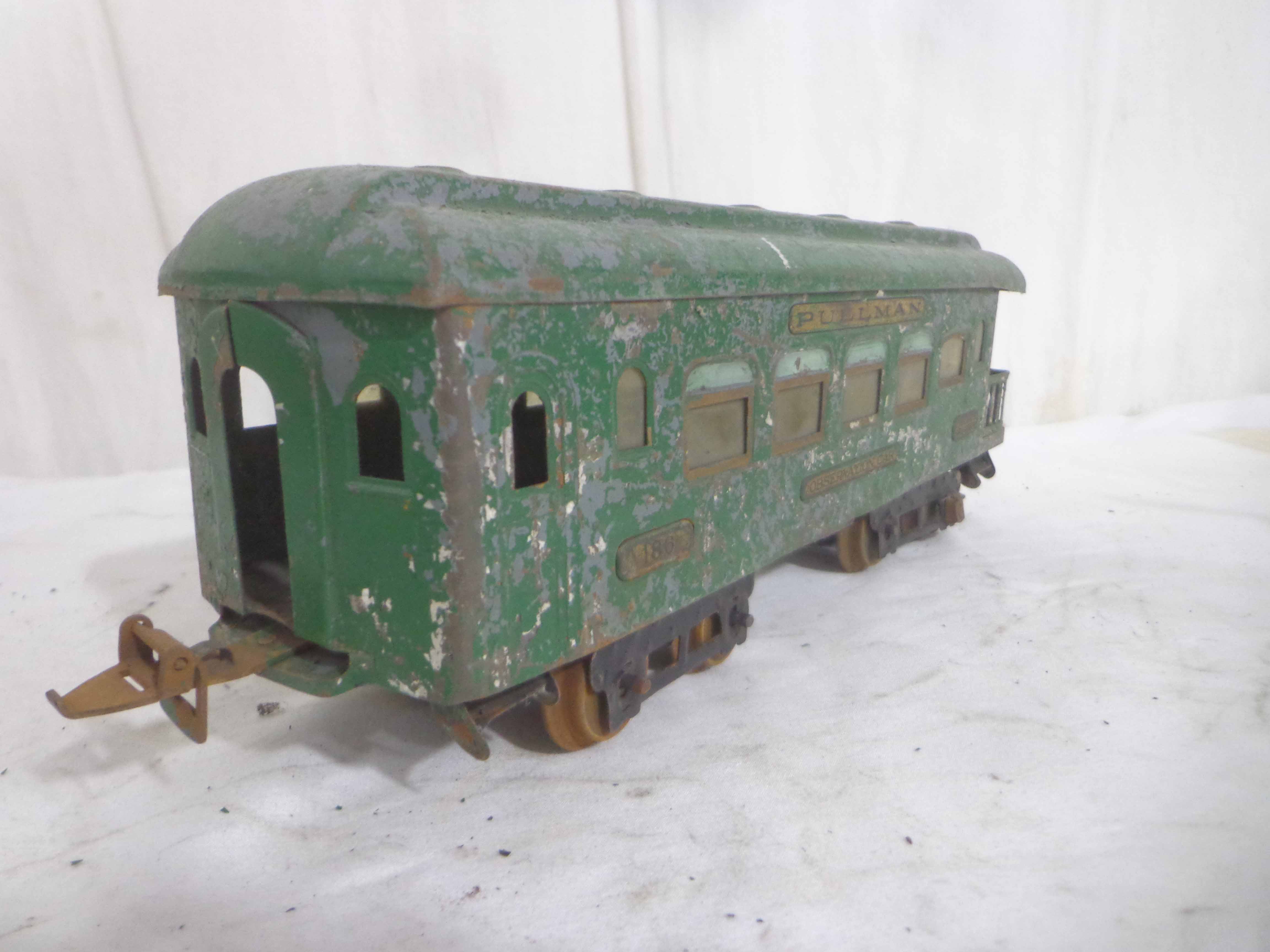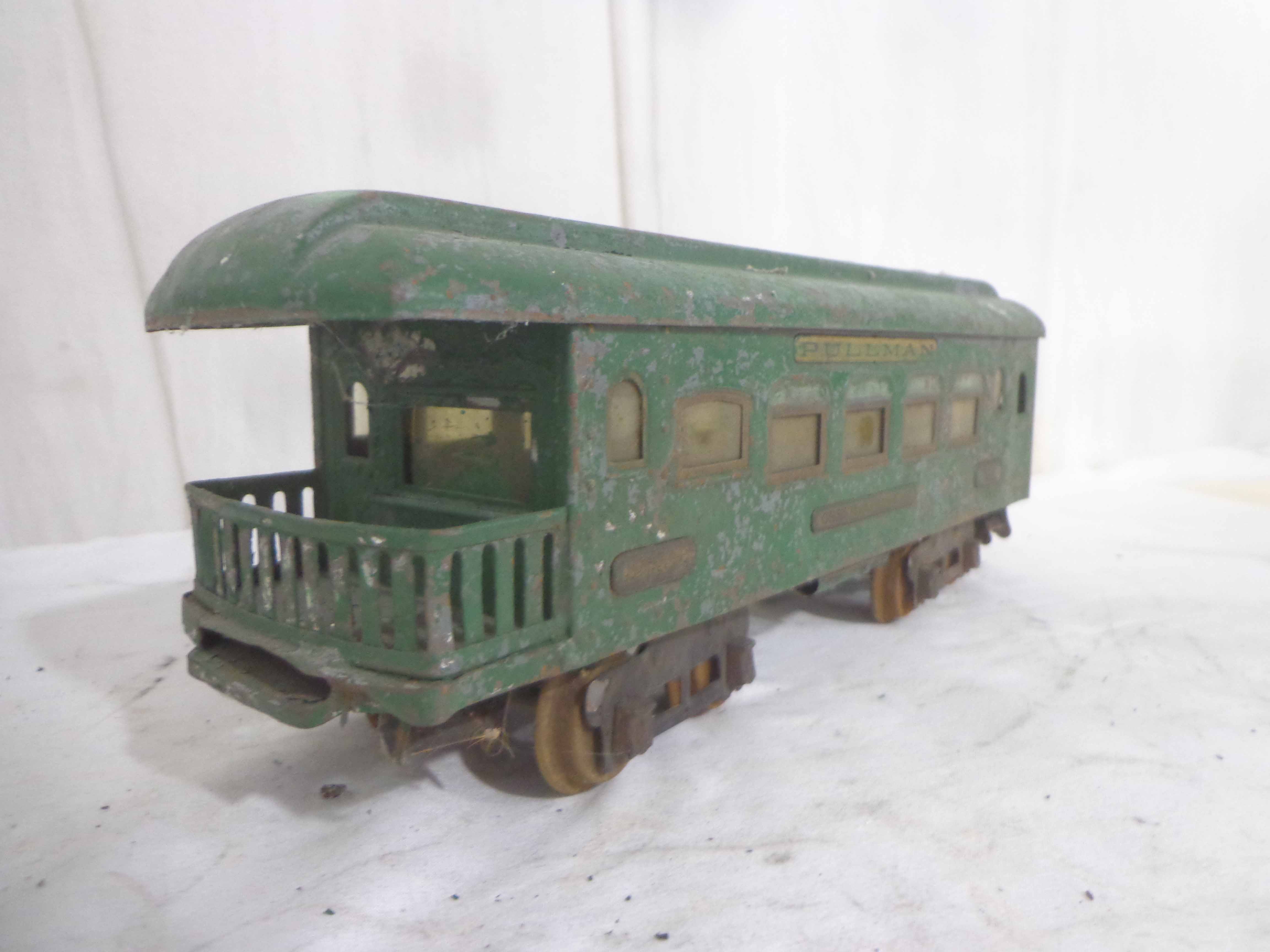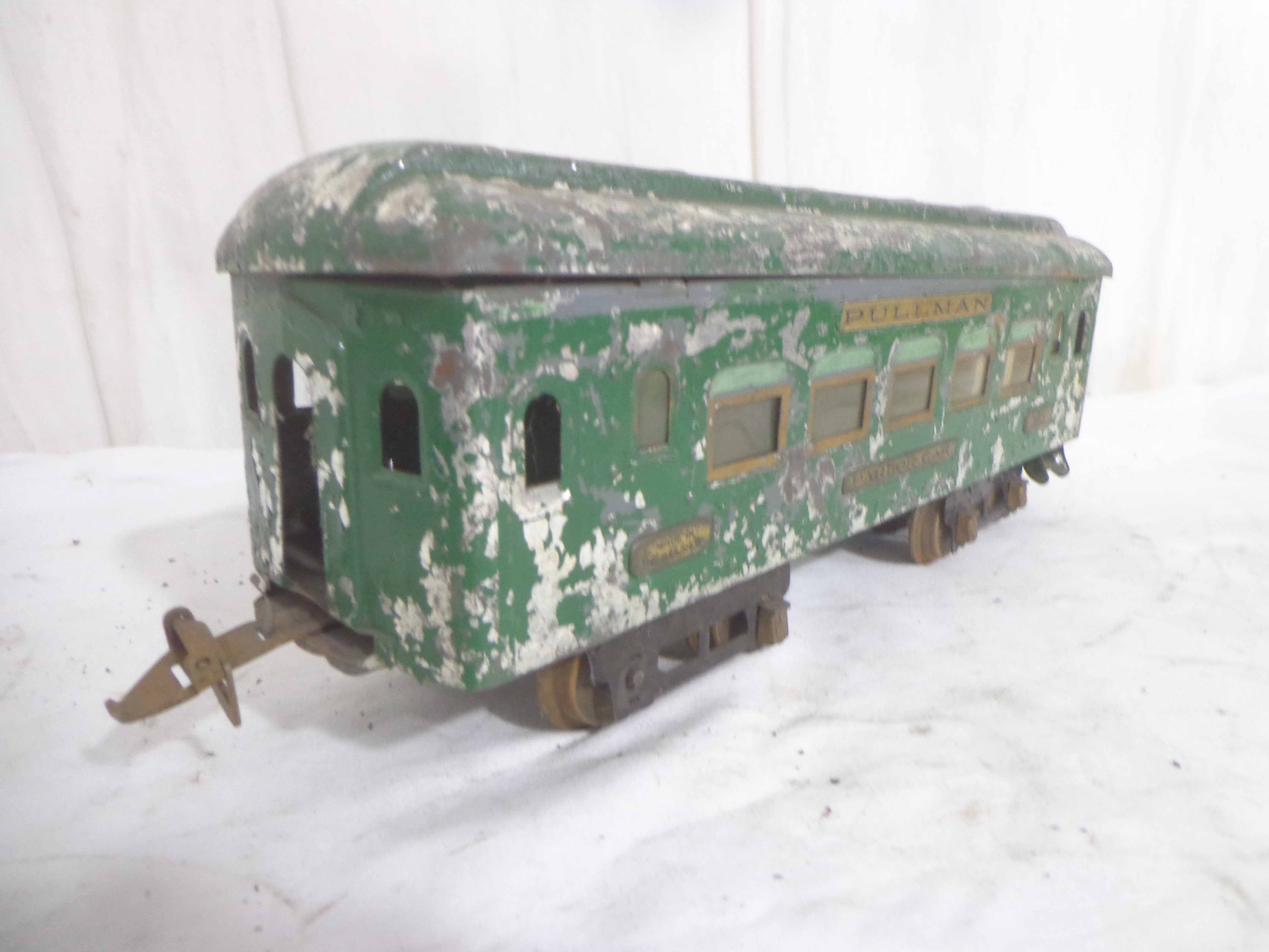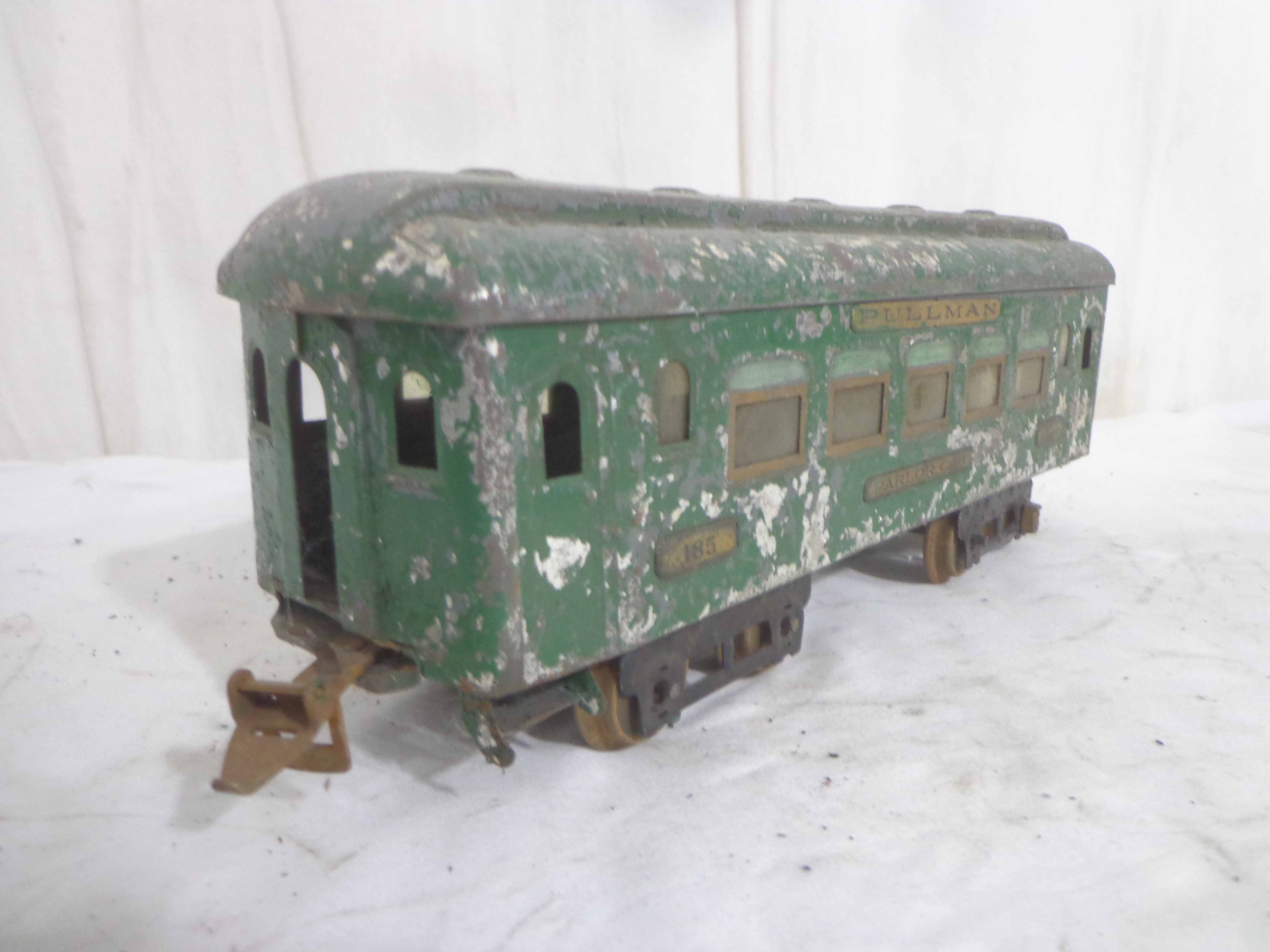These are Ives Wide Gauge #184/185/186 Passenger Cars from the 1920s. No Boxes. Examine very closely; what is pictured is what you will receive. Please add $40.00 for US-48 Shipping and Insurance (more west of the Mississippi). |
