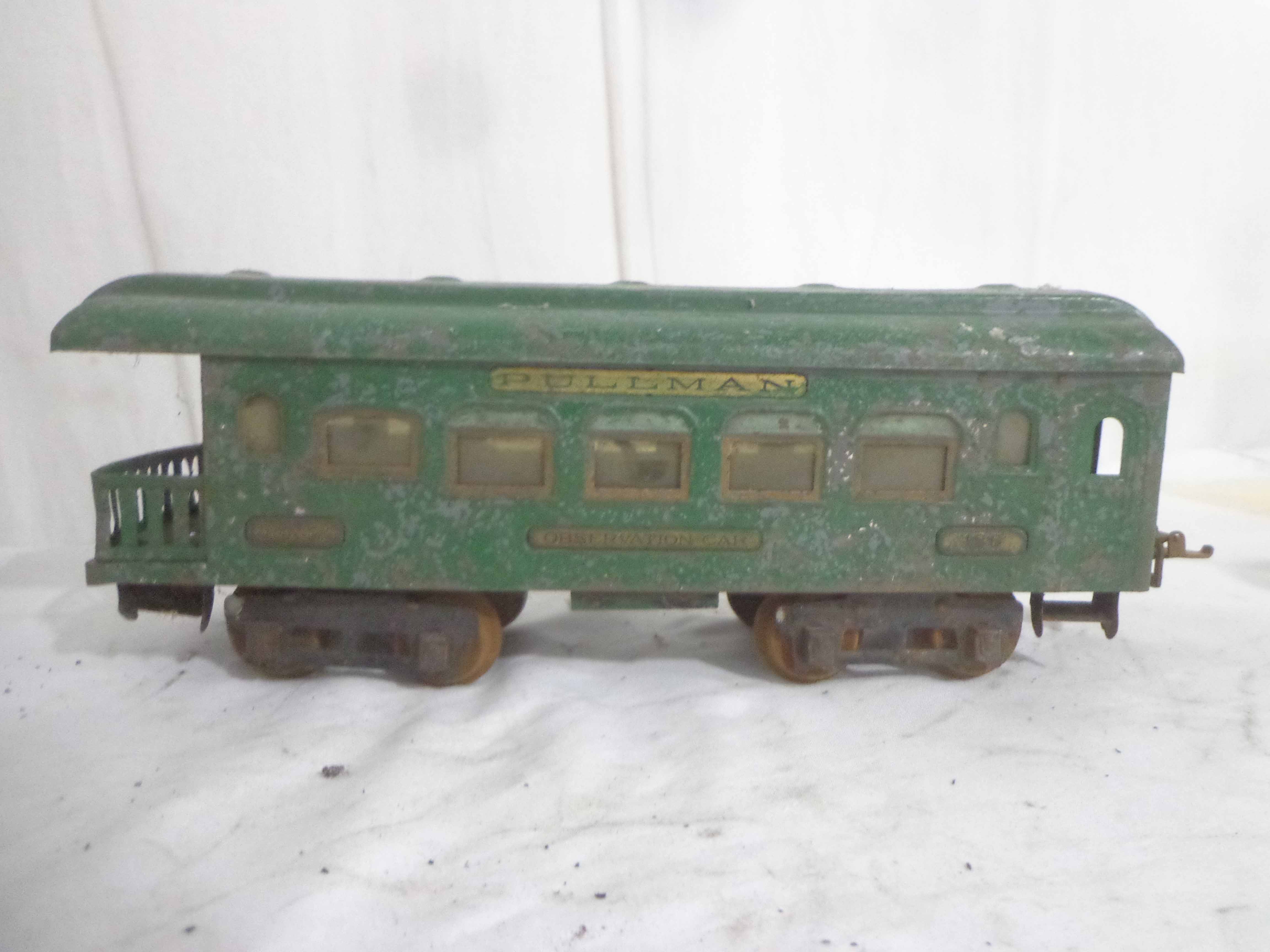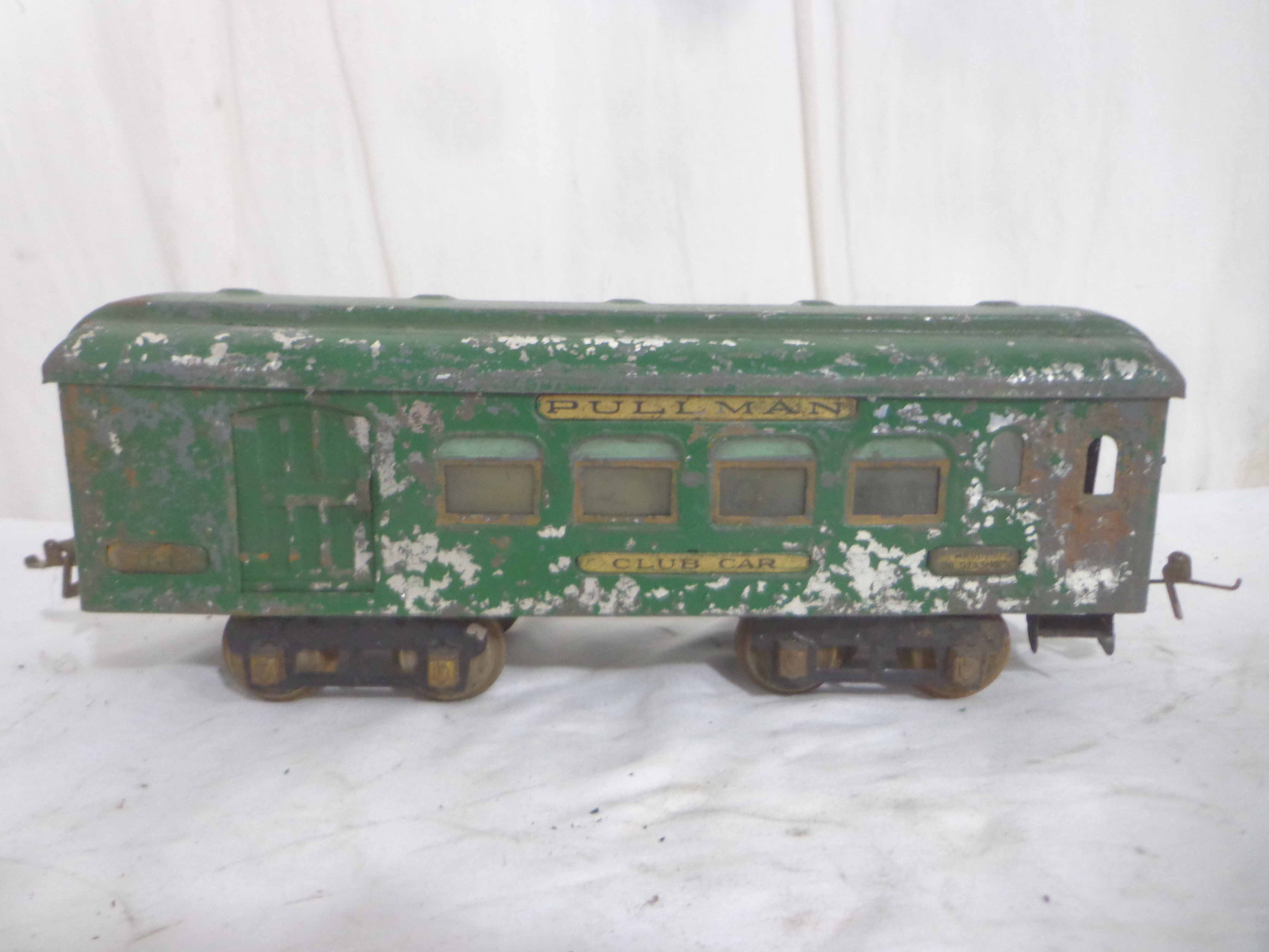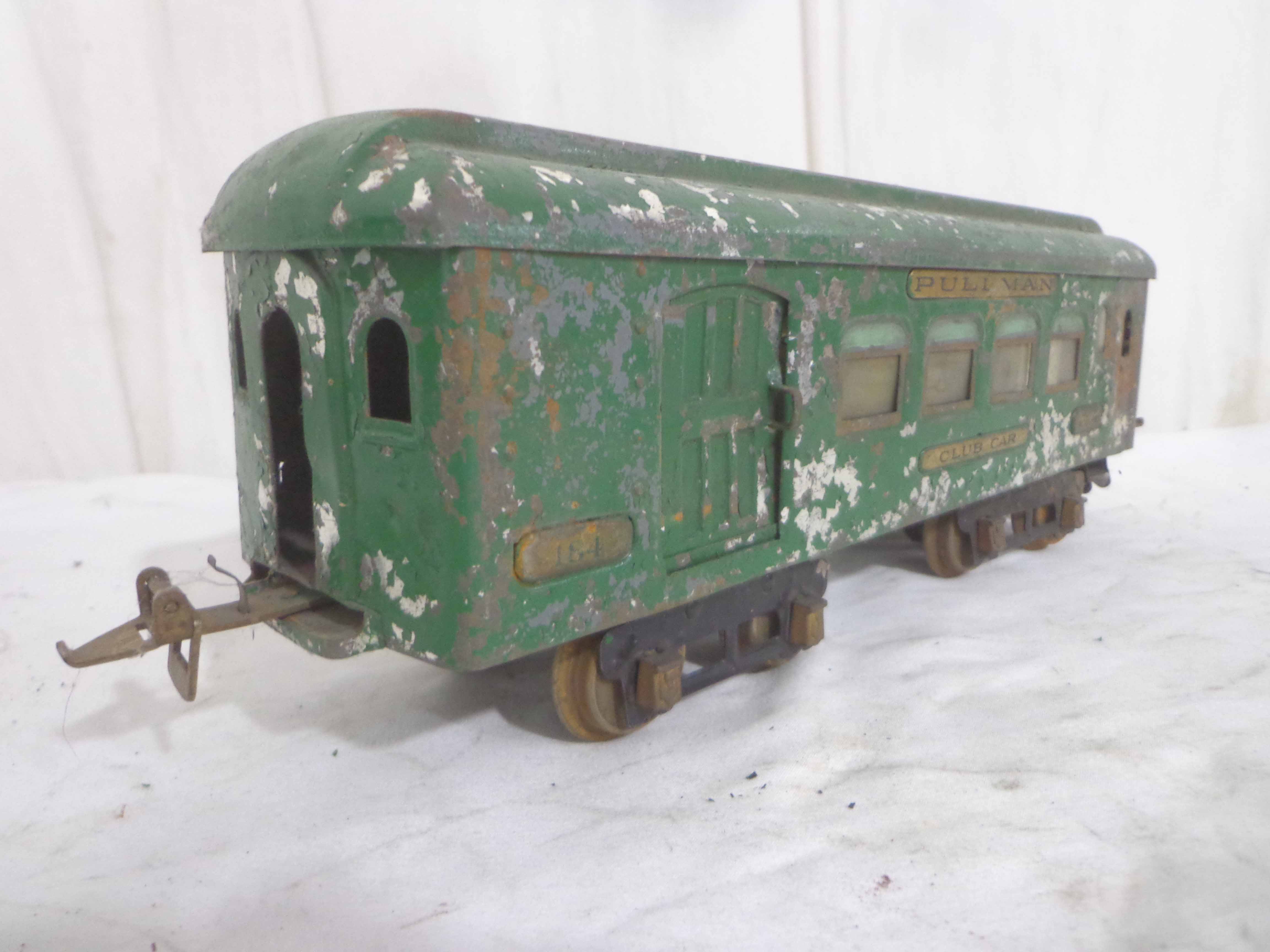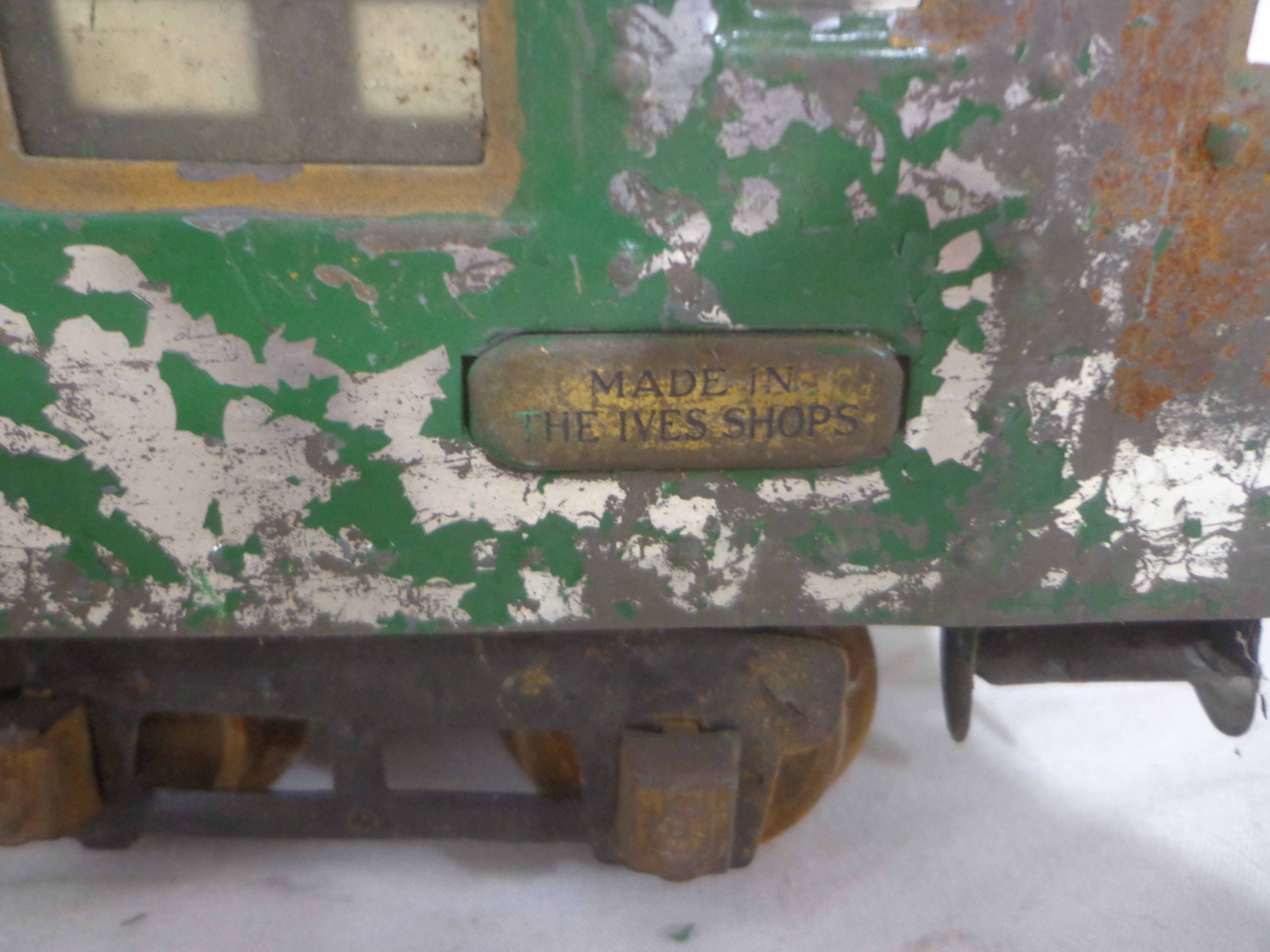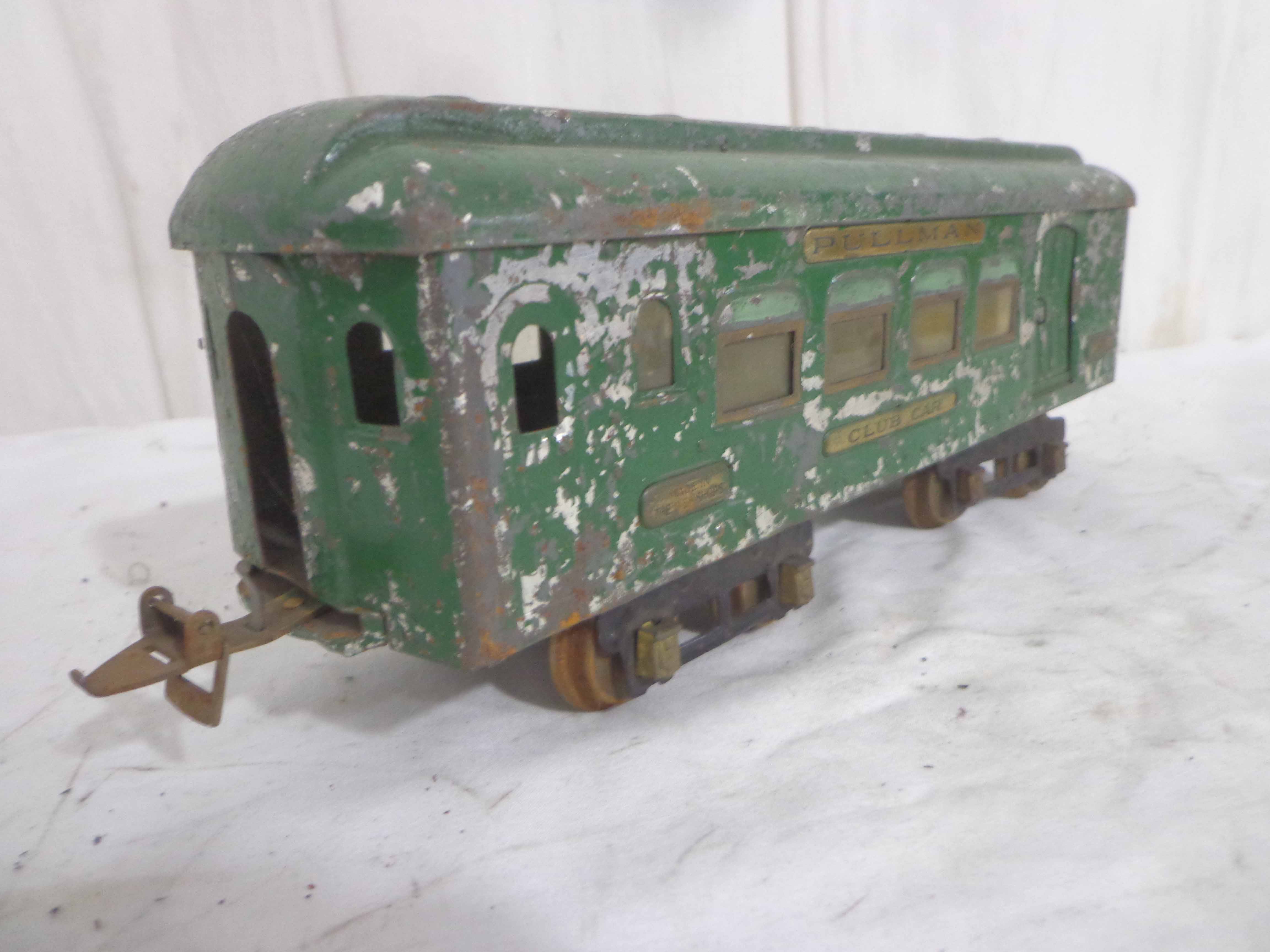These are Ives Wide Gauge #184/185/186 Passenger Cars from the 1920s. No Boxes. Examine very closely; what is pictured is what you will receive. Please add $40.00 for US-48 Shipping and Insurance (more west of the Mississippi). |