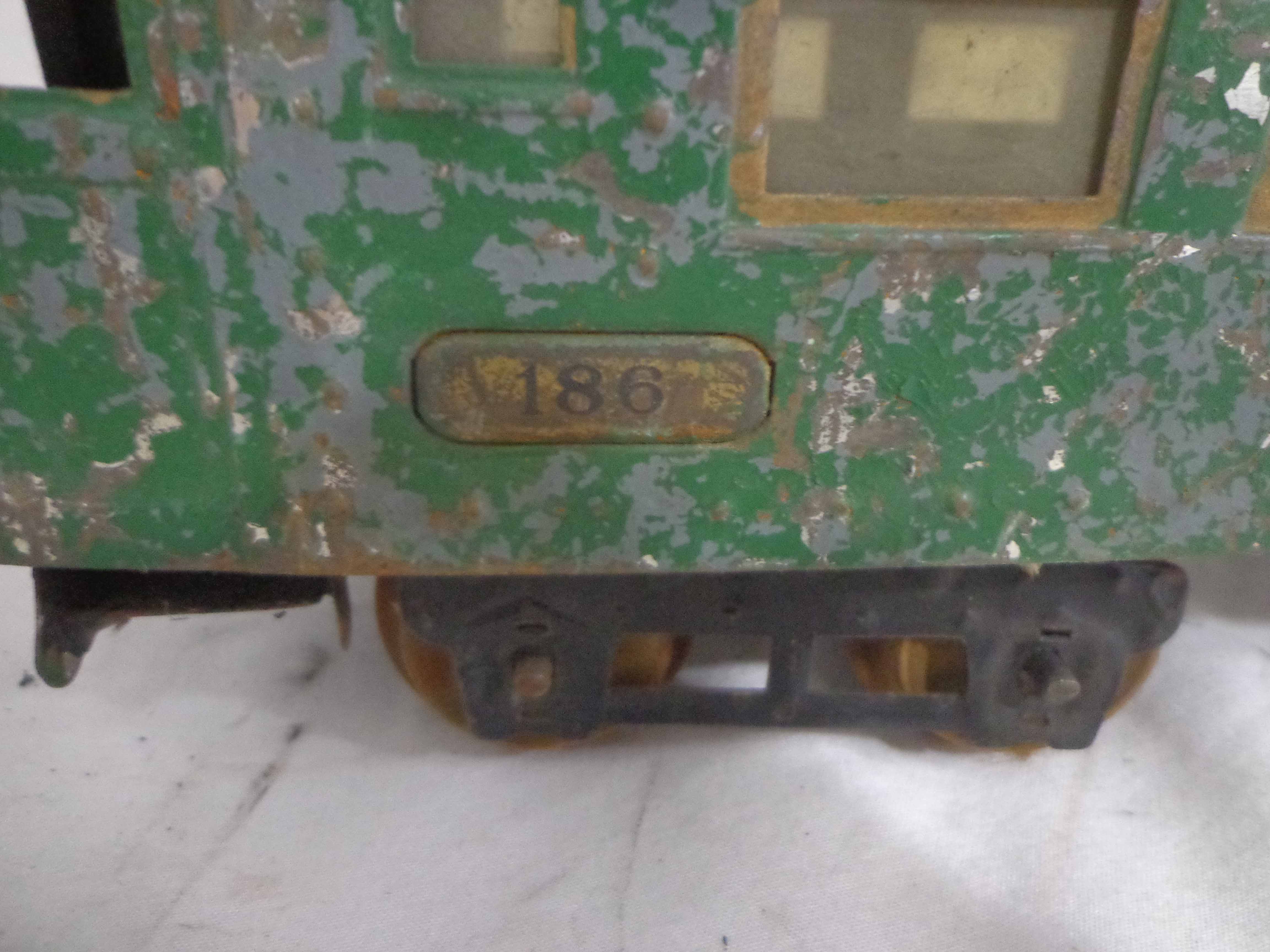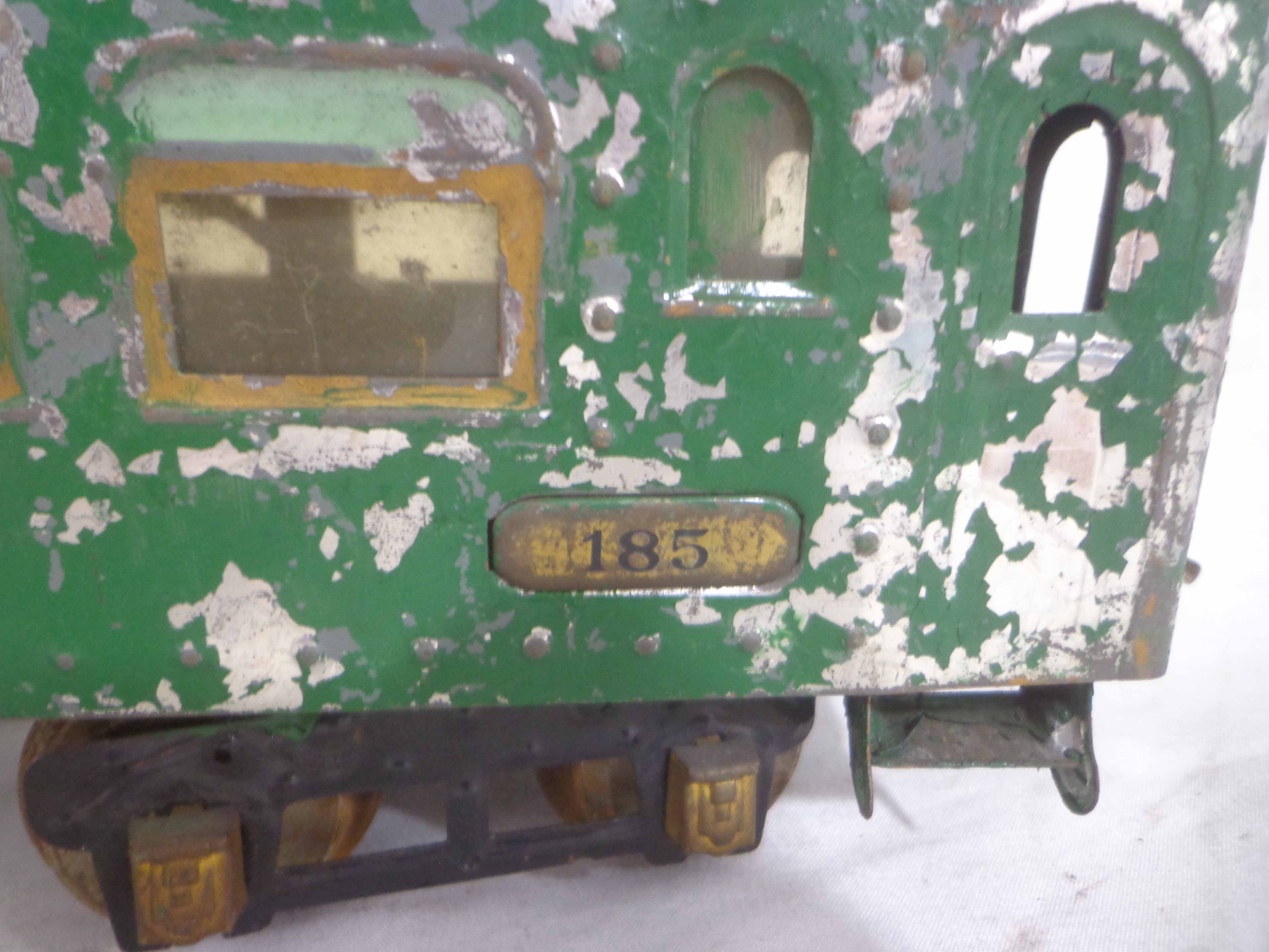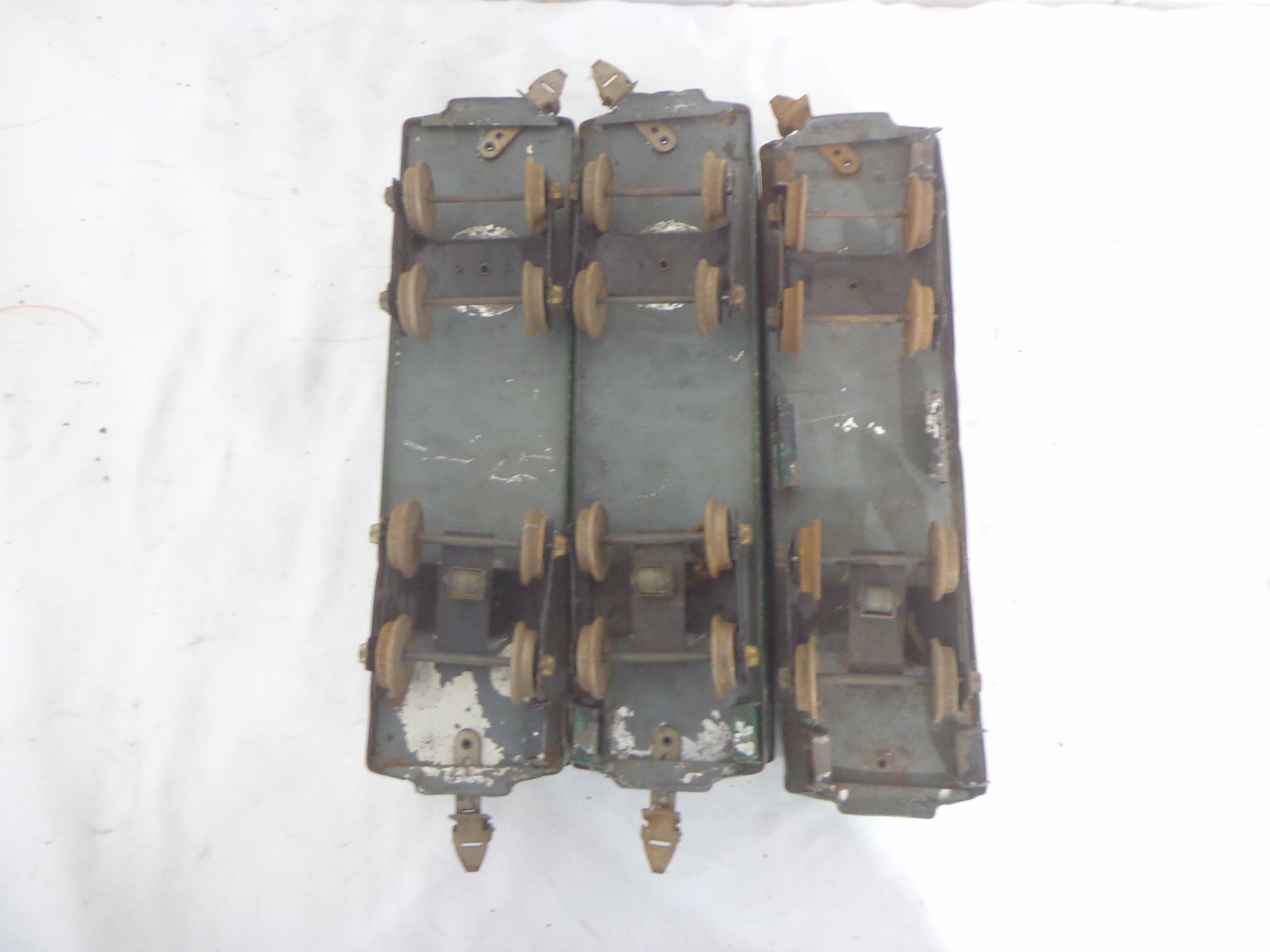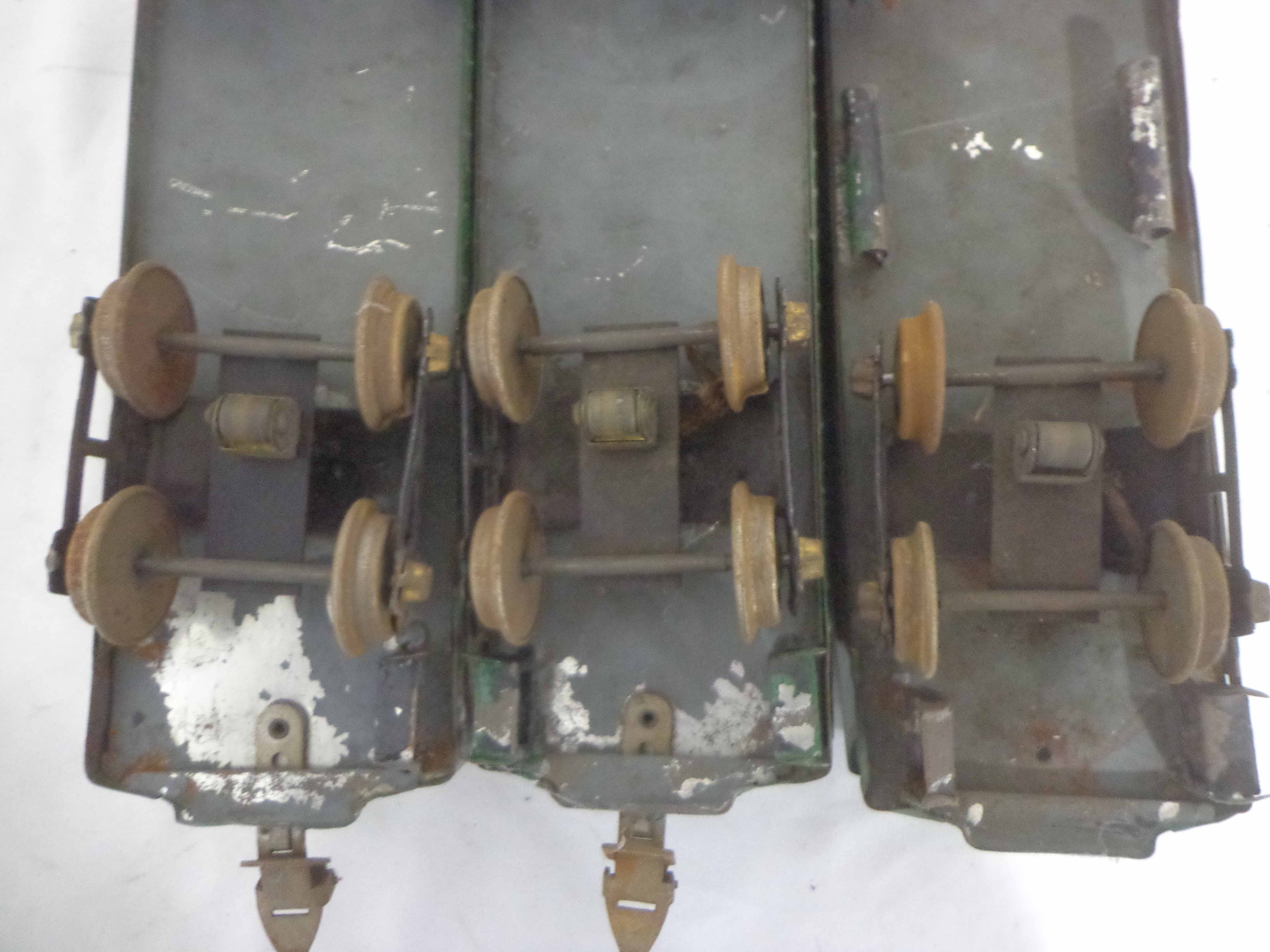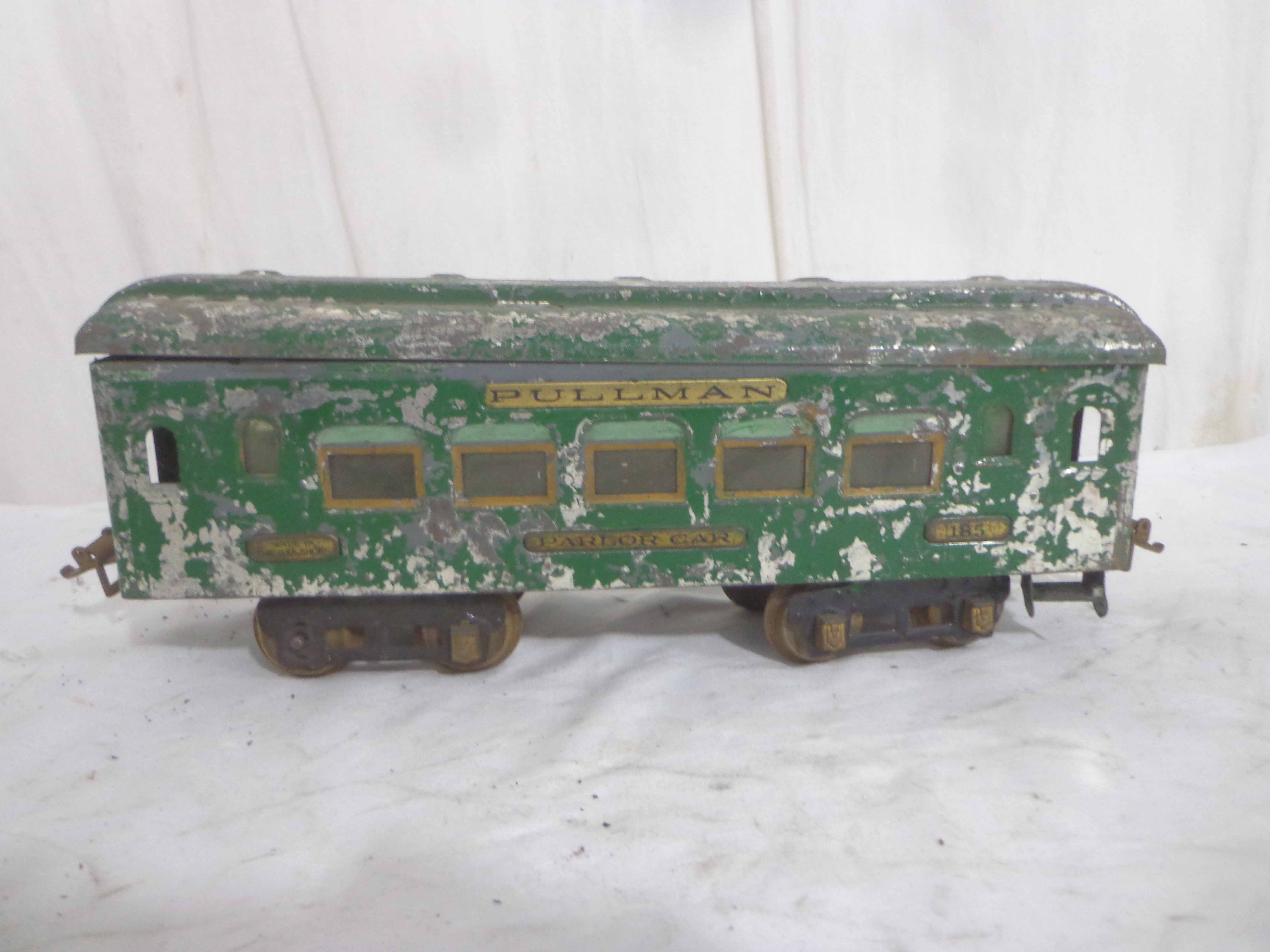 These are Ives Wide Gauge #184/185/186 Passenger Cars from the 1920s. No Boxes. Examine very closely; what is pictured is what you will receive. Please add $40.00 for US-48 Shipping and Insurance (more west of the Mississippi). |