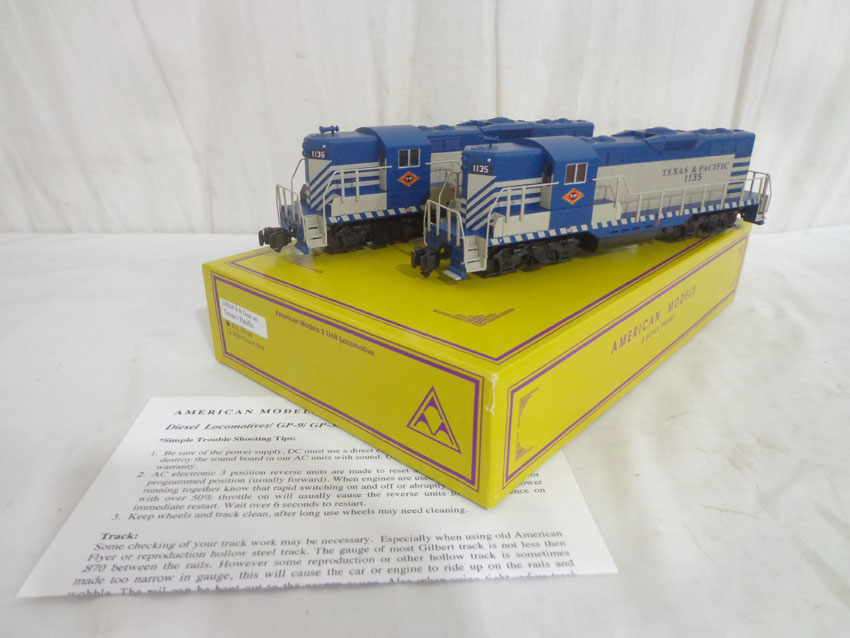 | Lot 9 | American Models S Gauge: #1135/1136 Texas and Pacific DXGP-9 AA Set/OB |