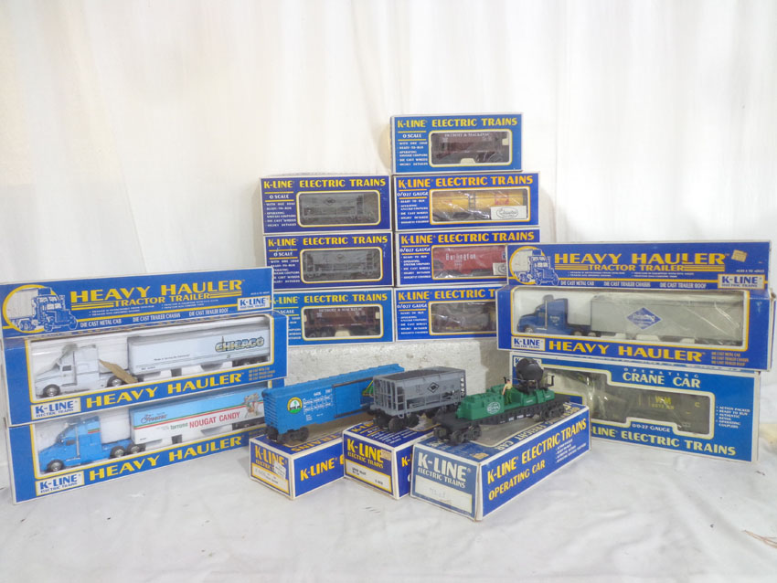 | Lot 97 | 14 Assorted K-Line Freight Cars and Tractor Trailers/OBs |