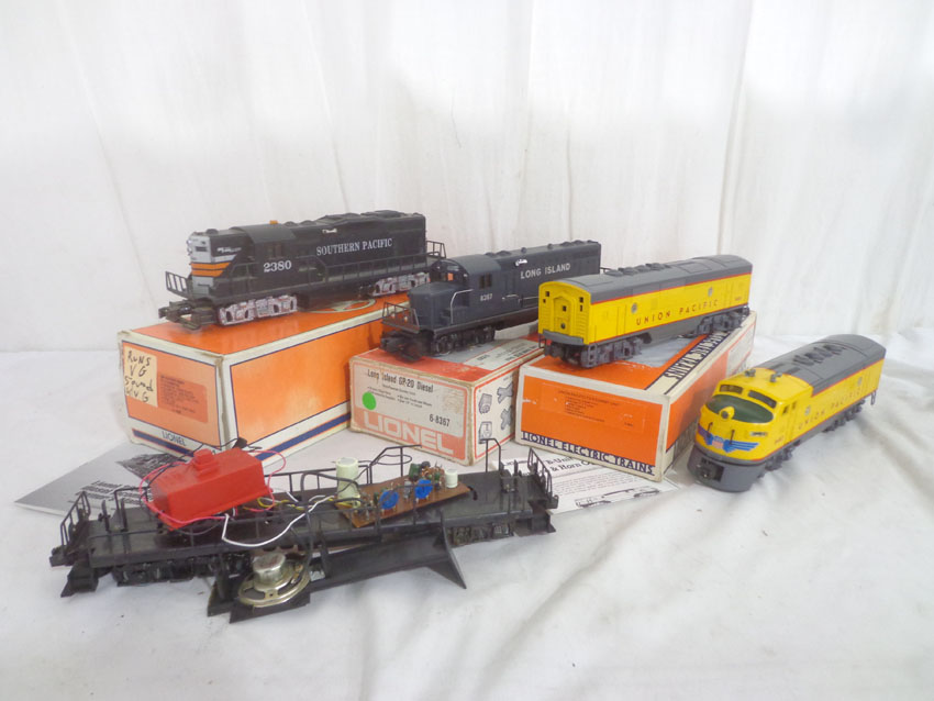 | Lot 128 | Lionel #8481/8482 Union Pacific AB Units, #18562 Southern Pacific GP-9 Engine, #8367 Long Island GP-20 Non-Powered Engine and Engine Frame with Horn and Whistle/OBs |