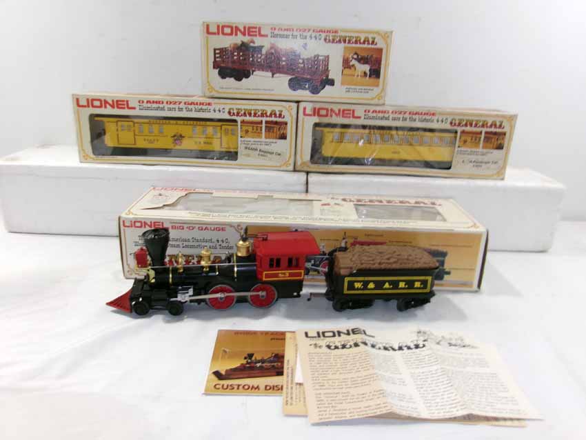 | Lot 141 | Lionel #8701 W&A 4-4-0 General Steam Engine & Tender, #9551 W&A Baggage Car, #9552 W&A Coach and #9553 W&A Horse Car |