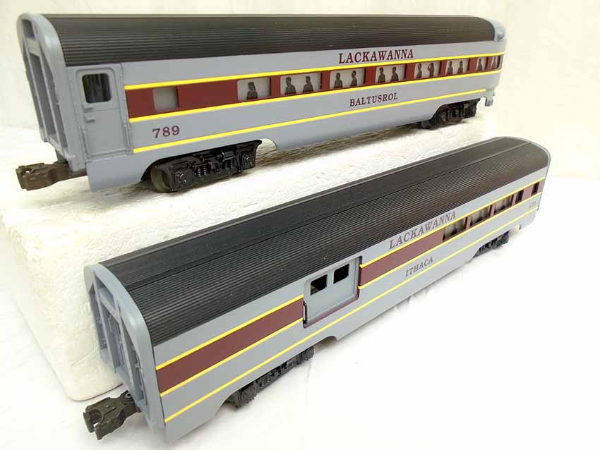 These are six Assorted Lackawanna Streamline Passenger Cars that Lionel made in the 1990s. Included are the #19131 Baggage Car, the #19132 Diner, the #19133 Buffalo Pullman and the #19134 Baltusrol Observation Car, the #19135 Ithaca Combo Car, and the #39104 Station Sounds Coach Utica Passenger Car. Our Opinion is that they are generally in Like New or Better Condition. Original Boxes. All Original in our Opinion. Please add $50.00 for US-48 Shipping and Insurance (more west of the Mississippi). |