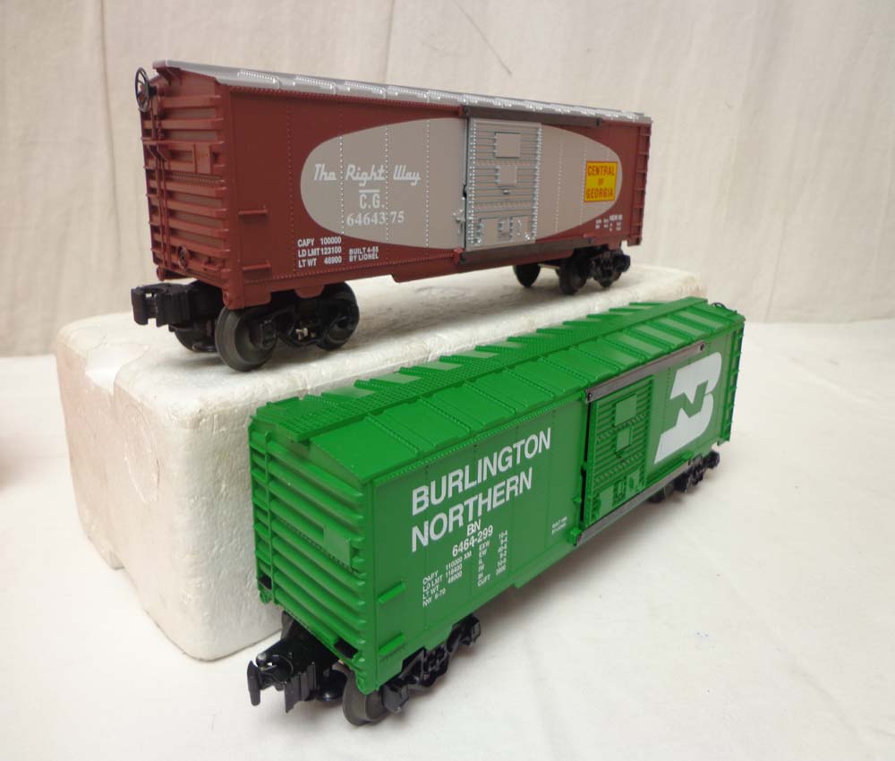 Mint Lionel #29251 BN 6464 Box Car, #29252 CP 6464 Box Car, #19291 GN 6464 Box Car, #29218 Vapor 6464 Box Car and #19276 Box Car Series V Set of 3/OBs