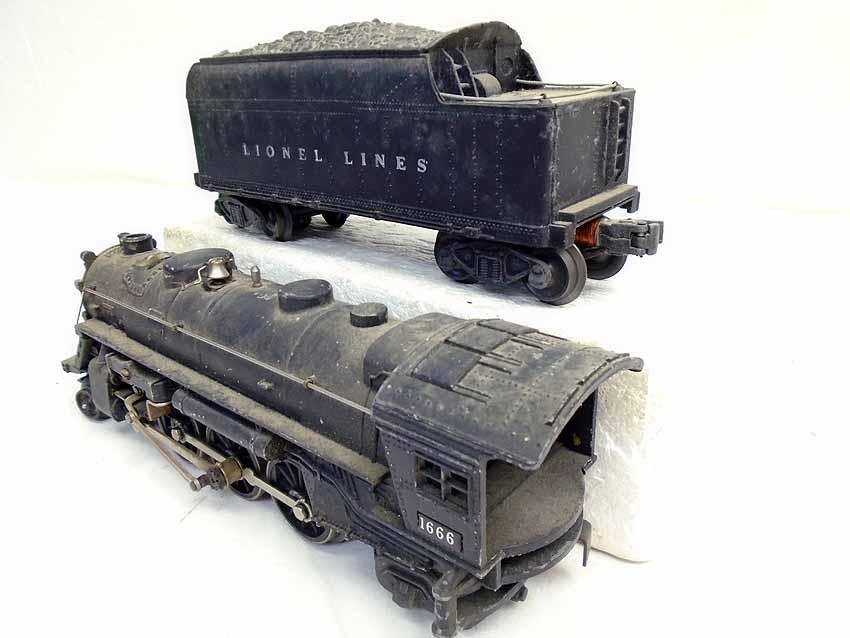These are the #2025 2-6-4 Engine(broken/missing headlights) & Tender, #2037 2-6-4 Engine & Tender and #1666/2466W 2-6-2 Engine & Tender that Lionel made in the 1940s/50s. No Boxes. Examine very closely: what is pictured is what you will receive. Please add $50.00 for US-48 Shipping and Insurance (more west of the Mississippi).