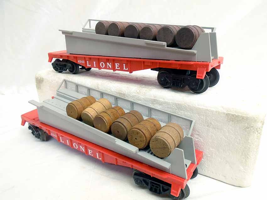 2 Lionel #6343 Barrel Ramp Cars/OBs