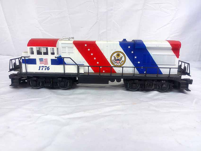 This is the Spirit of 76 Set that Lionel made in the middle 1970s. Included are the #1776 U36B Engine, the #7601 Delaware Box Car, the #7602 Pennsylvania Box Car, the #7603 New Jersey Box Car, the #7604 Georgia Box Car, the #7605 Connecticut Box Car, the #7606 Massachusetts Box Car, the #7607 Maryland Box Car, the #7608 South Carolina Box Car, the 7609 New Hampshire Box Car, the #7610 Virginia Box Car, the #7611 New York Box Car, the #7612 North Carolina Box Car, the #7613 Rhode Island Box Car, and the #7600 Caboose. Our Opinion is that it is generally in Like New Plus Condition. Original Boxes. All Original in our Opinion. Please add $60.00 for US-48 Shipping and Insurance (more west of the Mississippi).