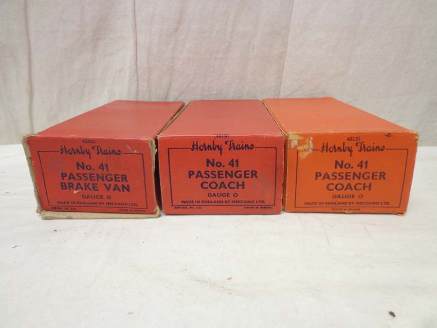 These are the #42210 Passenger Brake Van, #42121/41 Passenger Cars and six Freight Cars that Hornby made Pre War (O Gauge). Eleven Original Boxes. Examine closely; what is pictured is what you will receive. Please add $50.00 for US-48 Shipping and Insurance (more west of the Mississippi).