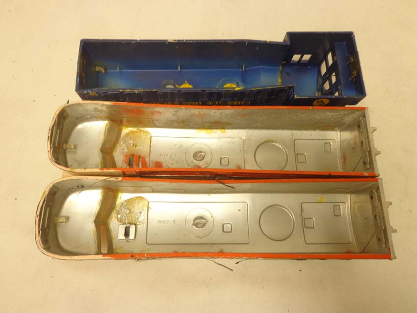 These are twenty-six Assorted Engine Cabs, Passenger Cars and Parts that Lionel made a few years ago (some Modern, some Post-War). Included #16013/16014/16015/16033/16048/21741 Amtrak Passenger Cars, #2023 Union Pacific Engine Cabs, #624 Chesapeake and Ohio Engine Cab, #2400/2401/2402 Passenger Car Cabs and fifteen Assorted Car Parts. Some repaints. No Boxes. Examine very closely; what is pictured is what you will receive. Please add $50.00 for US-48 Shipping and Insurance (more west of the Mississippi).