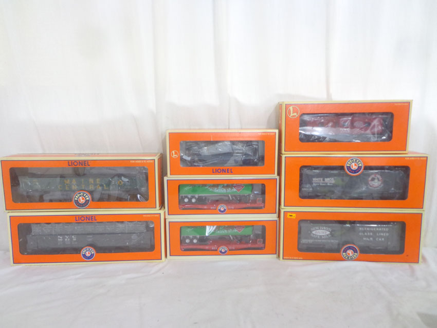 These are eight Assorted Cars that Lionel made a few years ago. Our Opinion is that they are generally in Mint Condition. Original Boxes. All Original in our Opinion. Examine. Please add $45.00 for US-48 Shipping and Insurance(more west of the Mississippi).