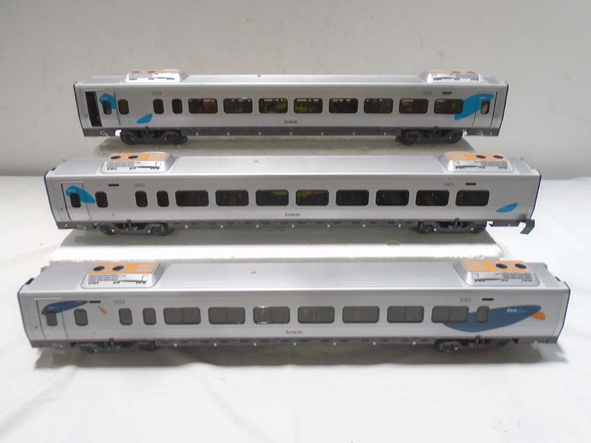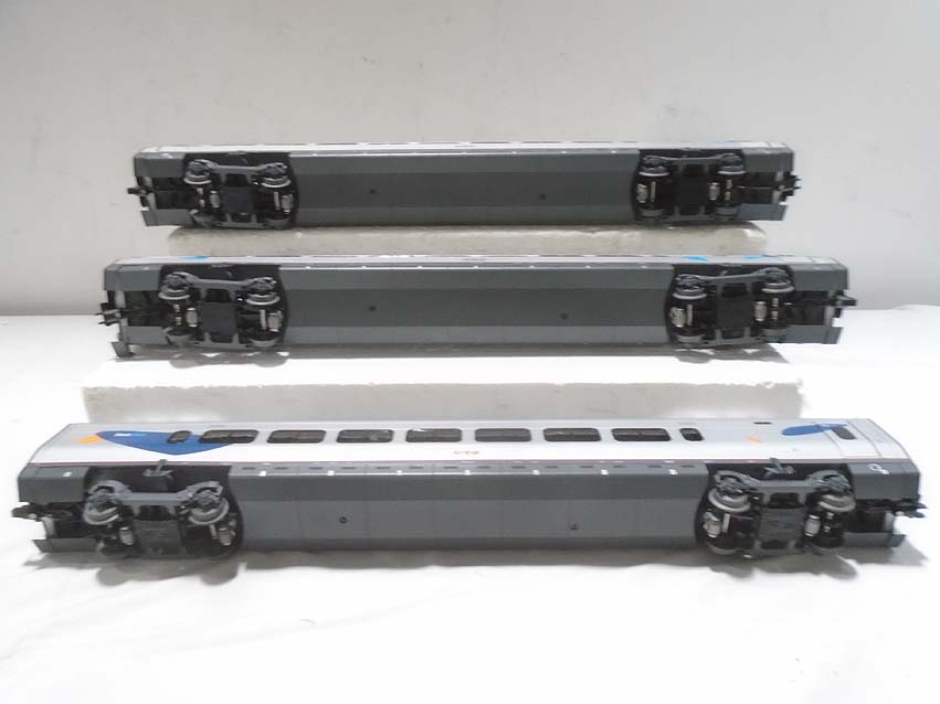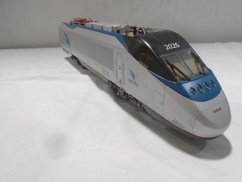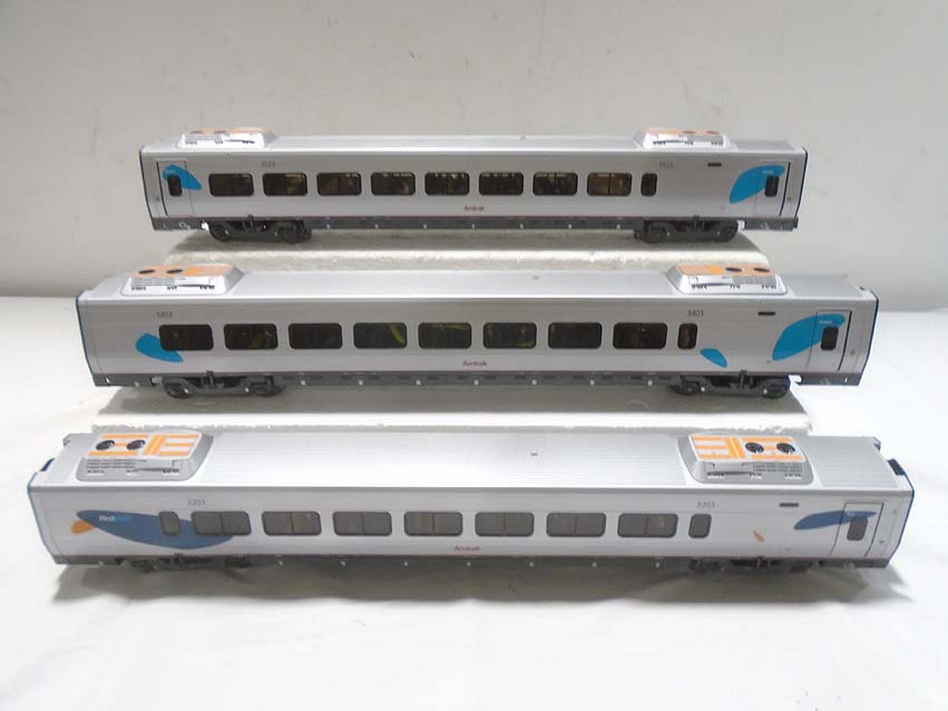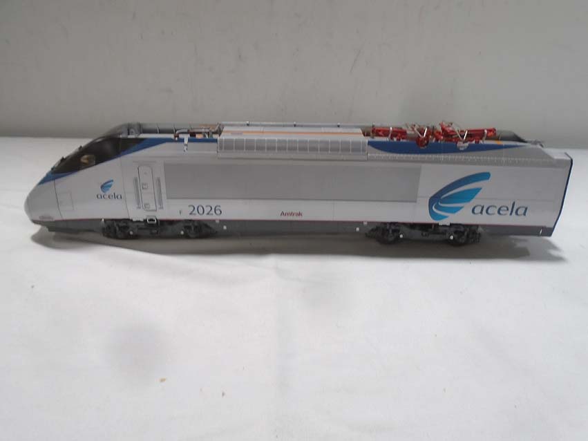 This is the #31714 Amtrak Acela Passenger Set that Lionel made in 2005. Features the Odyssey System, Command Control, Railsounds, spinning rooftop ventilator fans, removable caps at each locomotive's nose to reveal details, recessed overhead lights in the passenger cars, a coffee pot in the galley, true 1:48 scale, directional lighting, automatically rising and lowering pantographs, flush fitting passenger car doors that open automatically and tilting mechanism for curves. Our Opinion is that the Set is generally in Like New Condition. Original Boxes. All Original in our Opinion. Please add $75.00 for US-48 Shipping and Insurance (more west of the Mississippi).