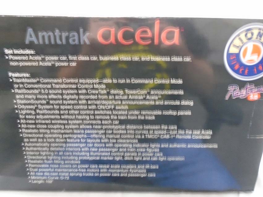 Lionel #31714 Amtrak ACELA Set w/Railsounds 5.0/OB