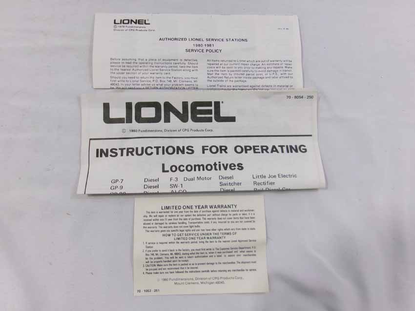 These are the #8659 Virginian Rectifier Electric Engine, the #8068 The Rock LCCA GP-20 Diesel Engine and ten Assorted Freight Cars (1 operating) that Lionel/K-Line made in the 1970s/80s. Our Opinion is that they are generally in Like New Condition. Original Boxes. All Original in our Opinion. Please add $50.00 for US-48 Shipping and Insurance (more west of the Mississippi).