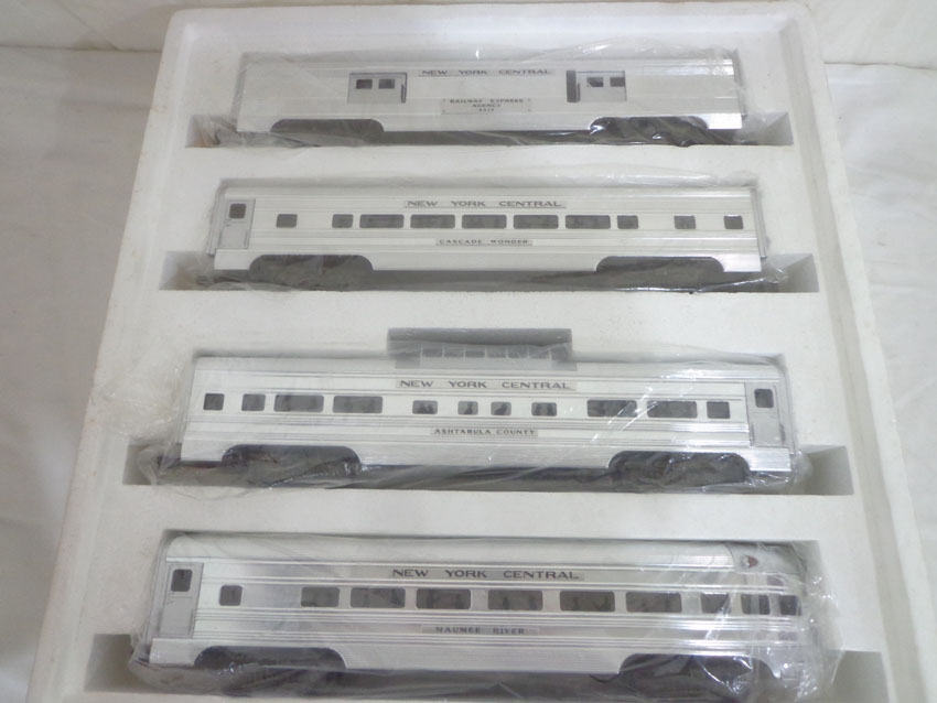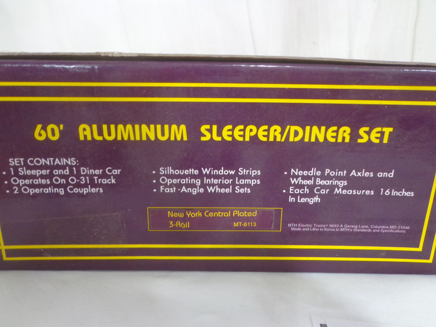 These are the #MT-6113 New York Central Sleeper/Diner Set and the New York Central 4 Car Passenger Set that MTH made a few years ago. Our Opinion is that they are generally in Like New or Better Condition. Original Box. All Original in our Opinion. Please add $50.00 for US-48 Shipping and Insurance (more west of the Mississippi).