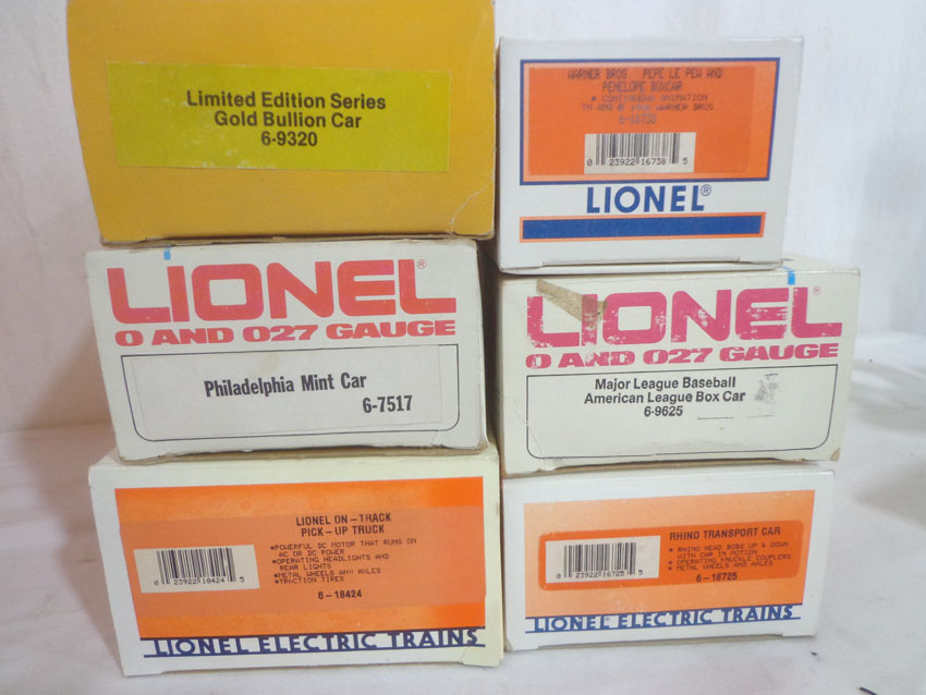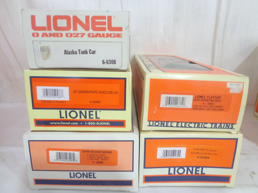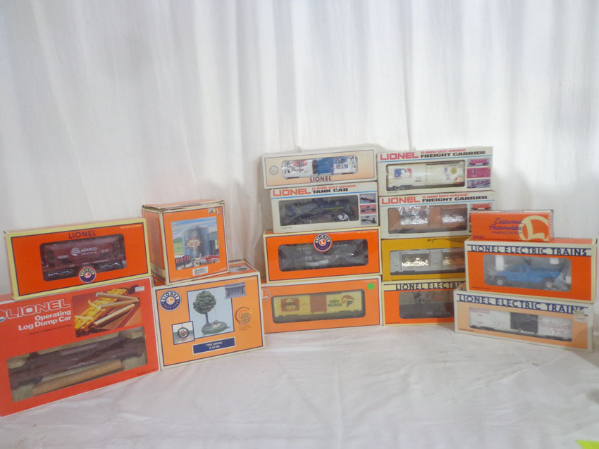 These are sixteen Assorted Freight Cars, Vehicles and Accessories that Lionel made ia few years ago. Our Opinion is that they are generally in Like New or Better Condition. Original Boxes/Blister Pack. All Original in our Opinion. Please add $50.00 for US-48 Shipping and Insurance (more west of the Mississippi).