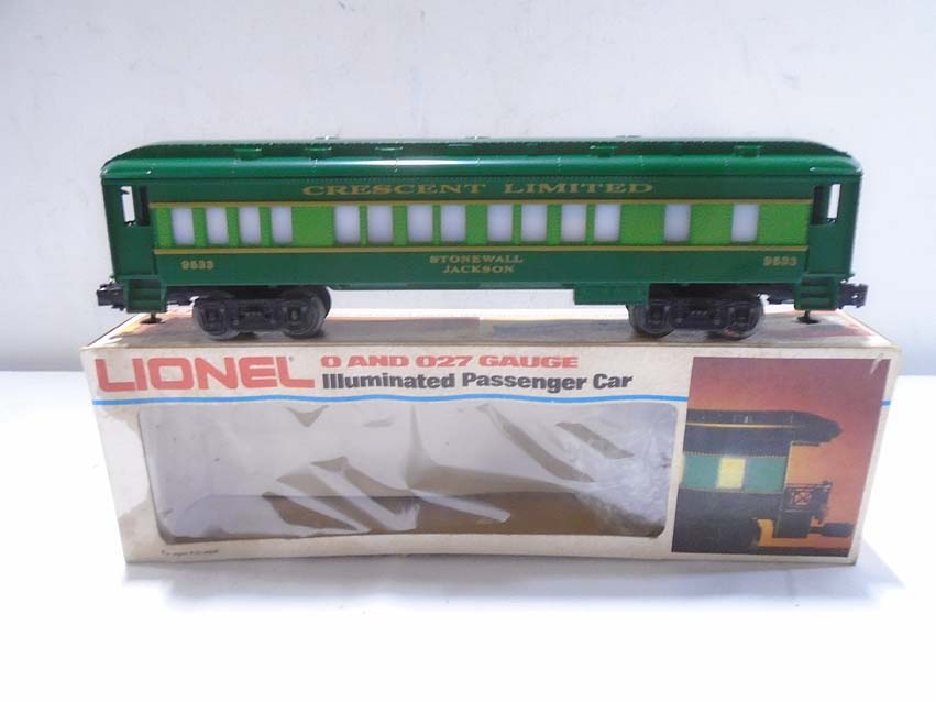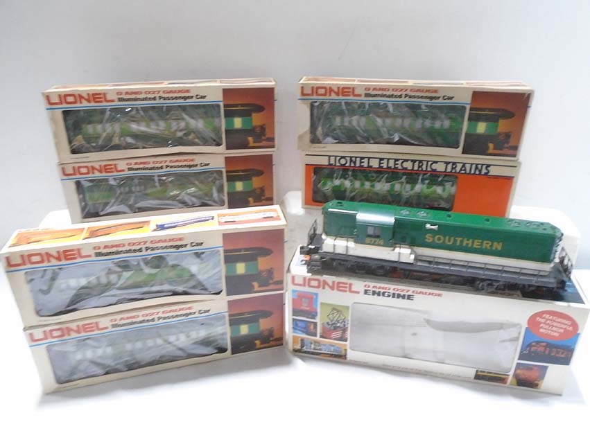 These are the #8774 Southern Crescent GP-7 Diesel Engine and the #9530/9531/9532/9533/9534/19001 Passenger Cars that Lionel made in the 1970s/80s. Our Opinion is that they are generally in Excellent Condition. Original Boxes. All Original in our Opinion. Please add $50.00 for US-48 Shipping and Insurance (more west of the Mississippi).
