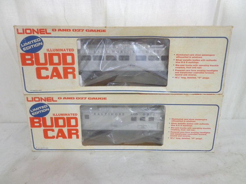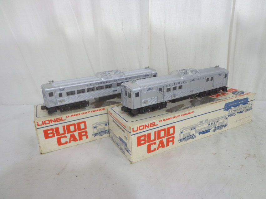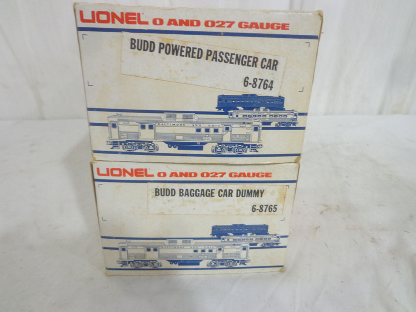 These are the #8764 BUDD Powered Passenger Car and the #8765 BUDD Baggage Car that Lionel made in the late 1970s. Our Opinion is that they are generally in Like New. Original Boxes. Please add $35.00 for US-48 Shipping and Insurance (extra west of the Mississippi).