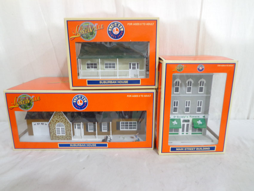 Like New or Better Lionel/MTH #34112 Fieldstone House, #34127 OGrady Tavern, #34110 Estate House, Public Library and Jewelry Store, 3 OBs Gail |