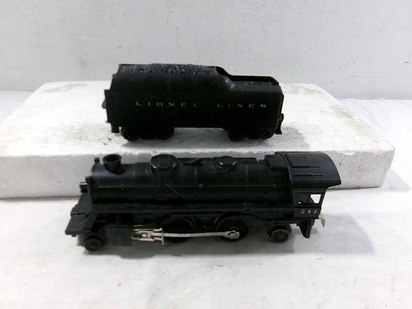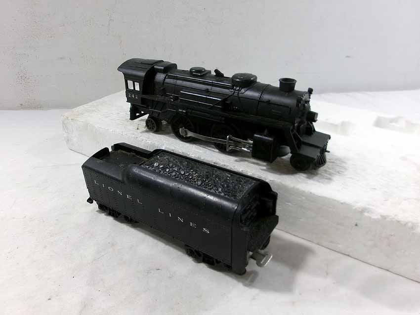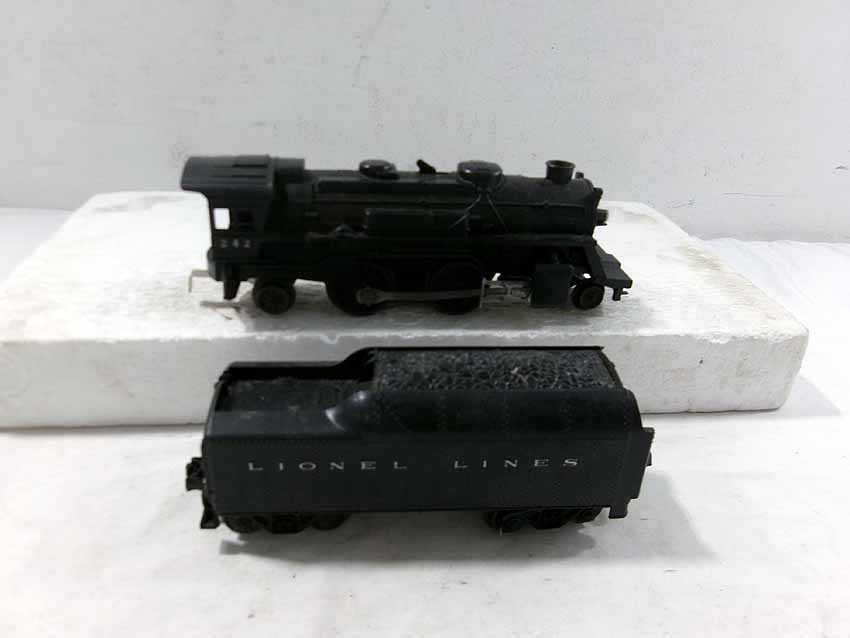 This is the #11520 Steam Engine Freight Set that Lionel made in 1965/66. Included are the #242/1130T Steam Engine & Tender, #3362 Helium Car, #6142 Gondola, #6176 Hopper and #6059 Caboose. No Box. Examine closely; what is pictured is what you will receive. Please add $40.00 for US-48 Shipping and Insurance (more west of the Mississippi).